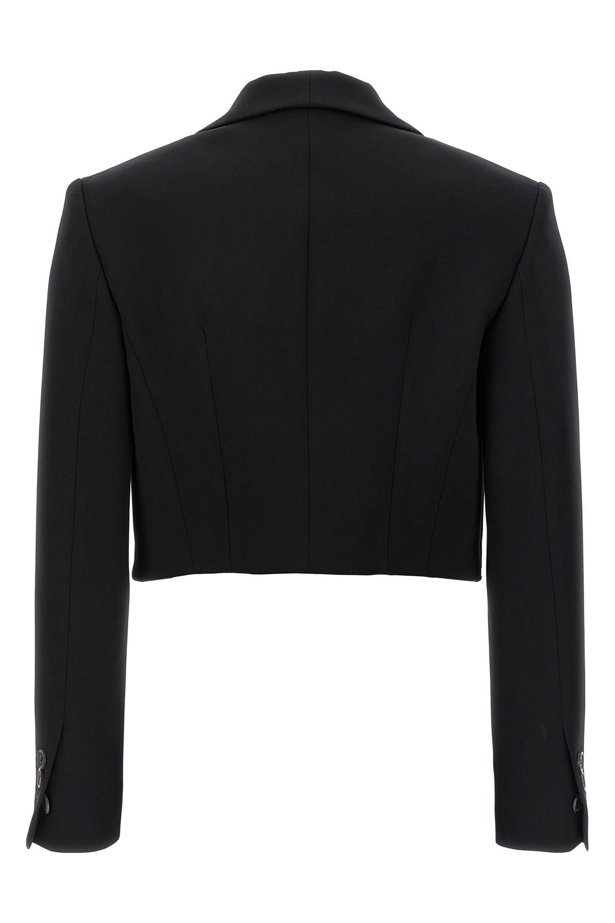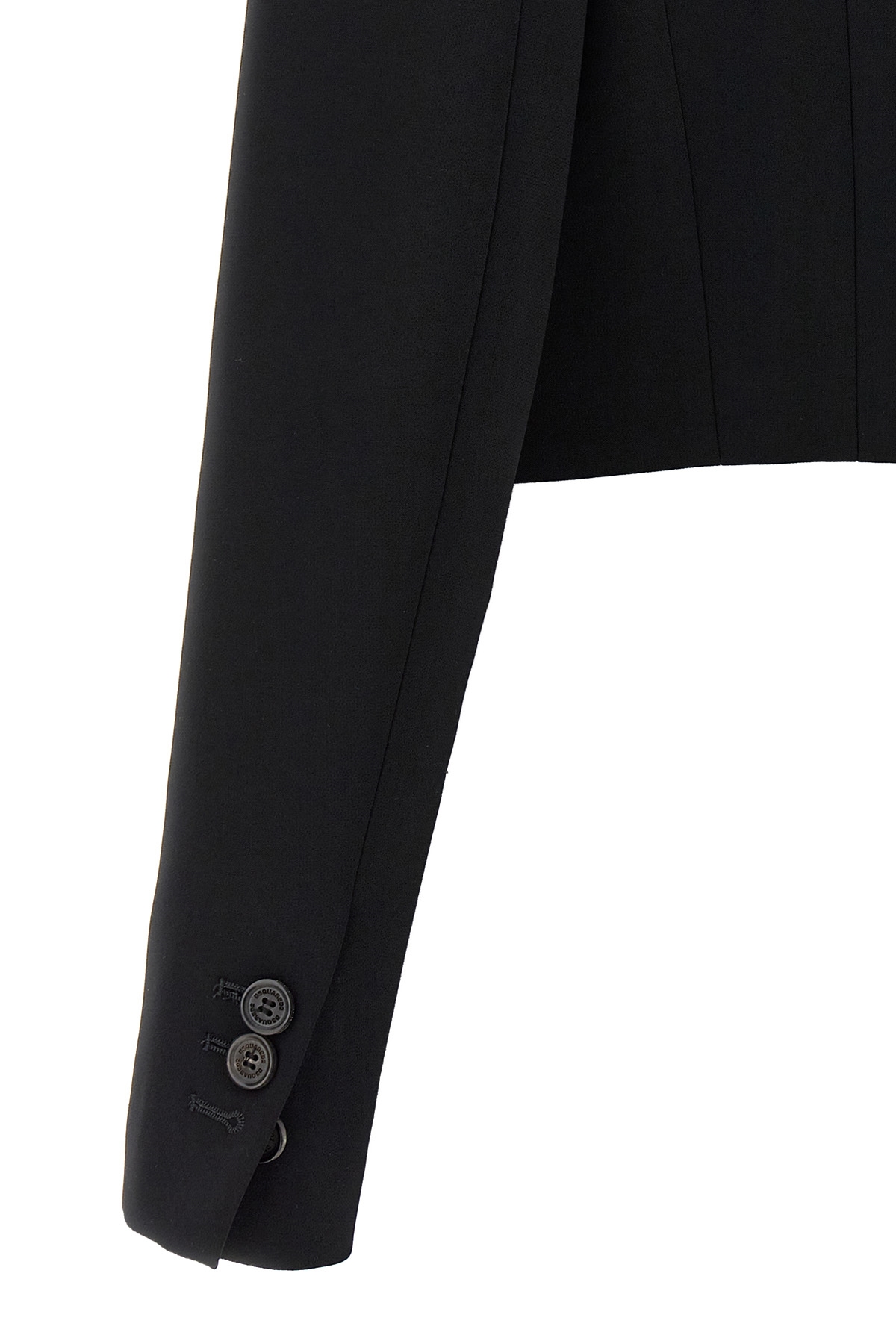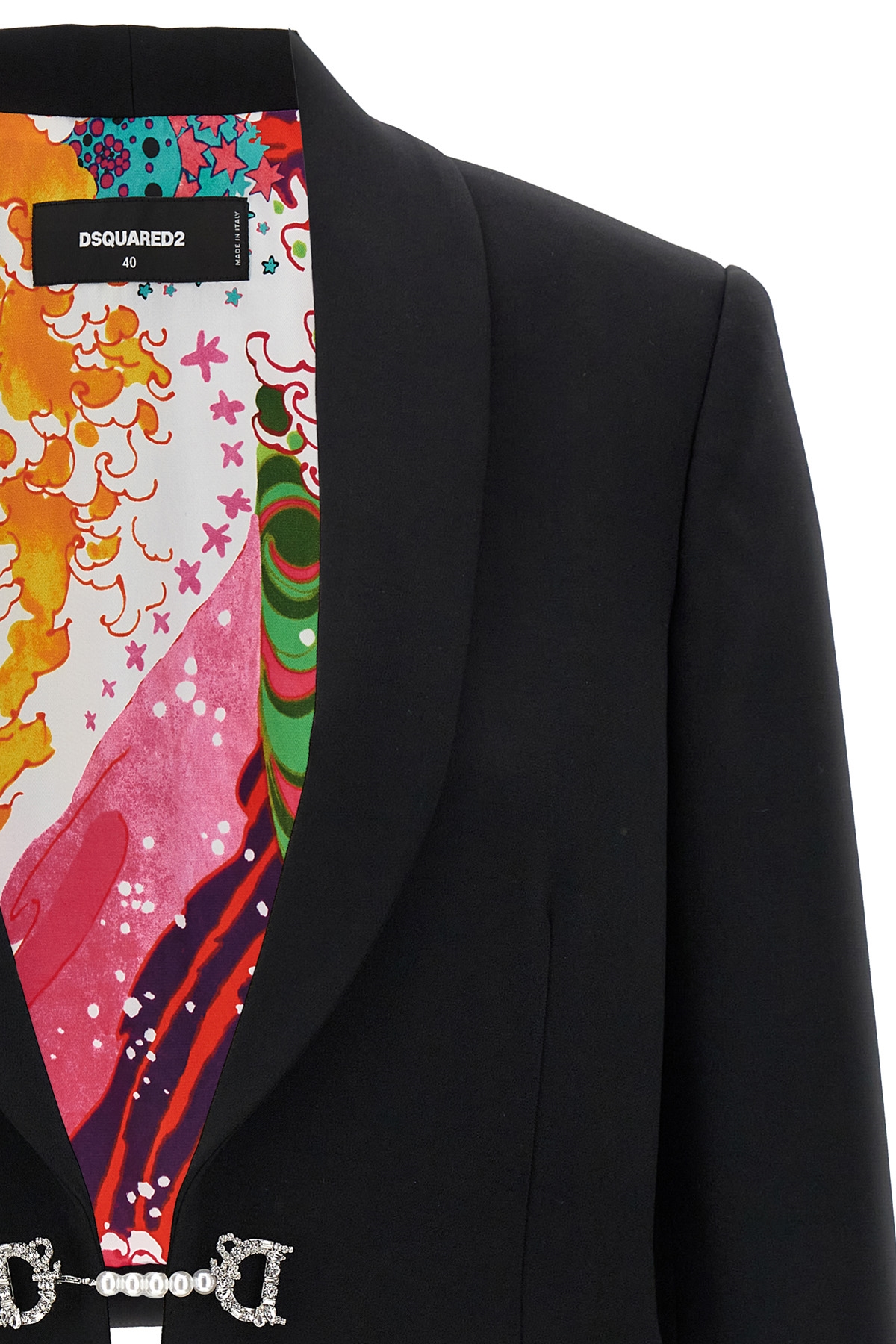 'D2 Jewel' short jacket, front jewel hook closure, structured shoulder straps, long sleeves.