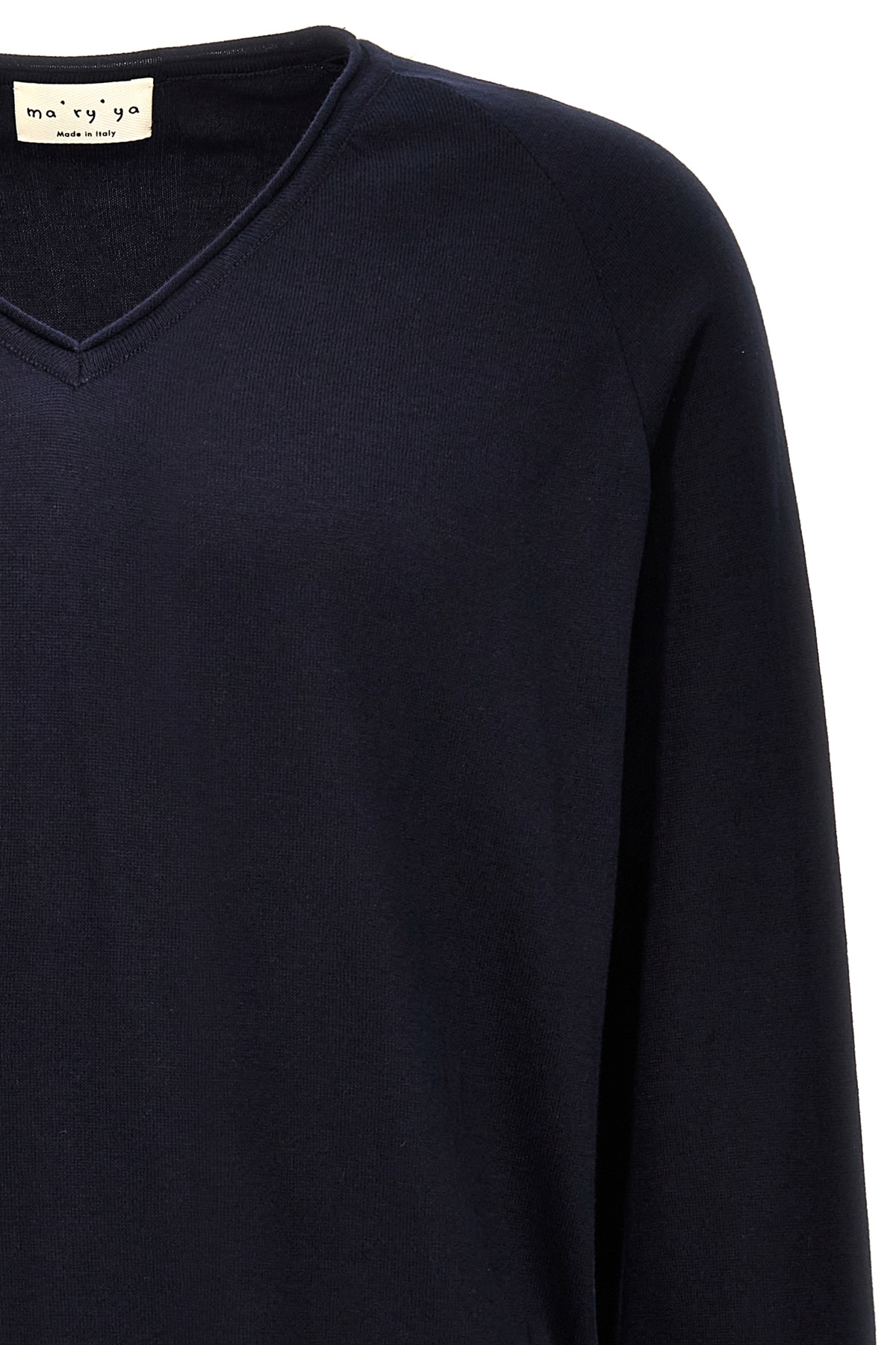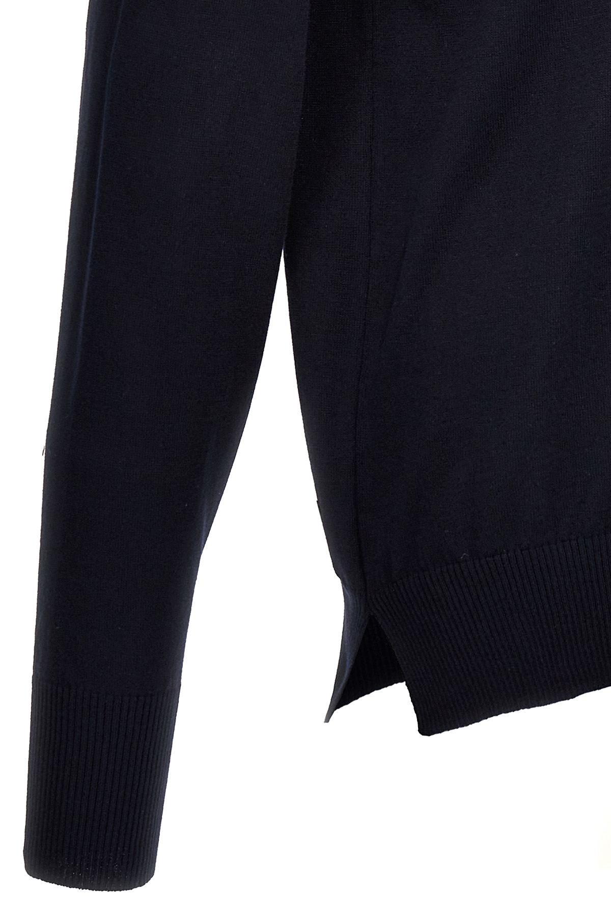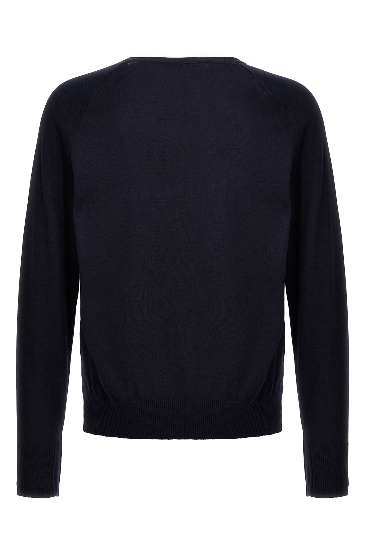 Cotton sweater with V-neck, long cuffed sleeves.