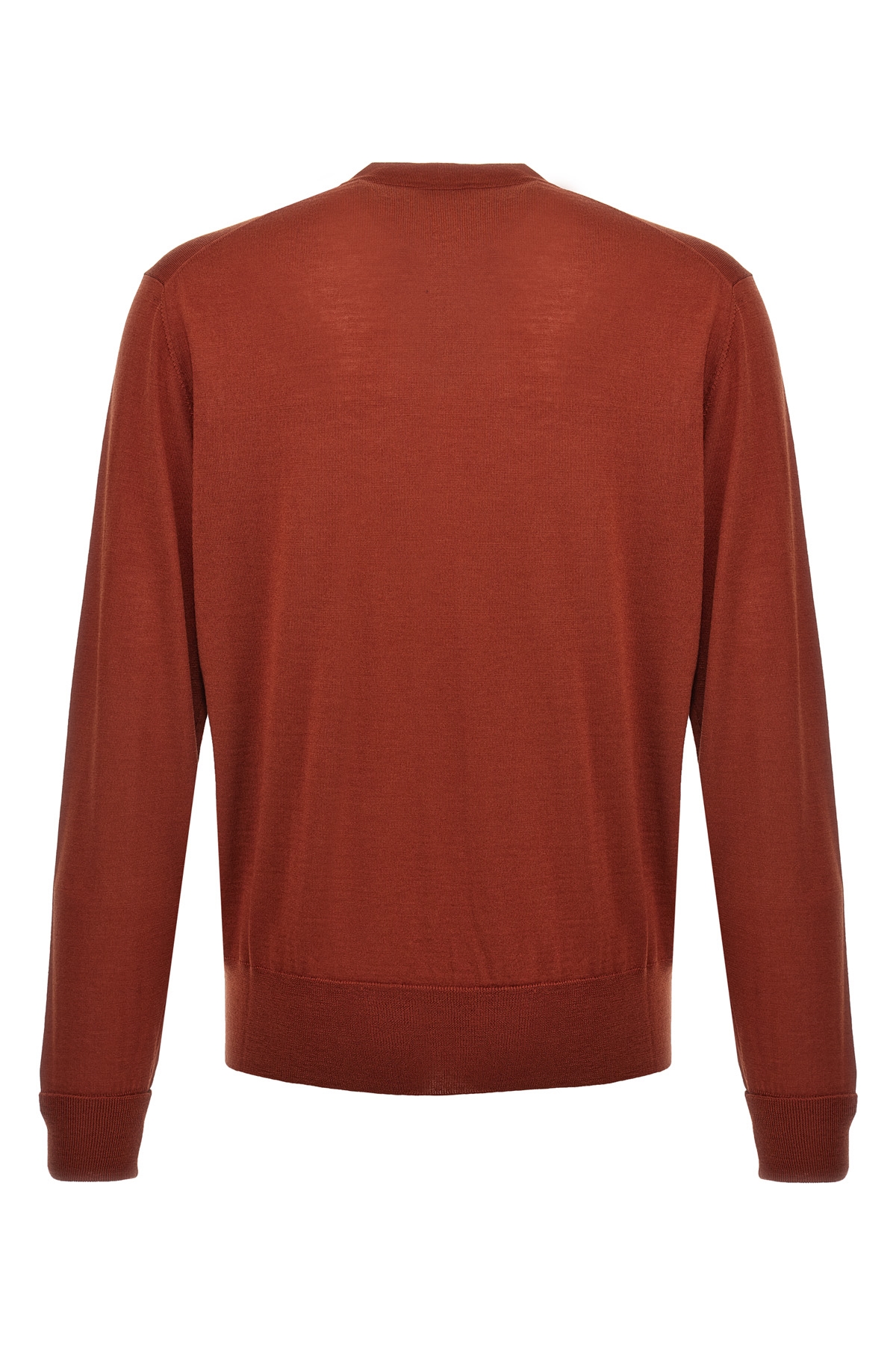 Merino wool crew neck sweater with long sleeves with turned-up cuffs.