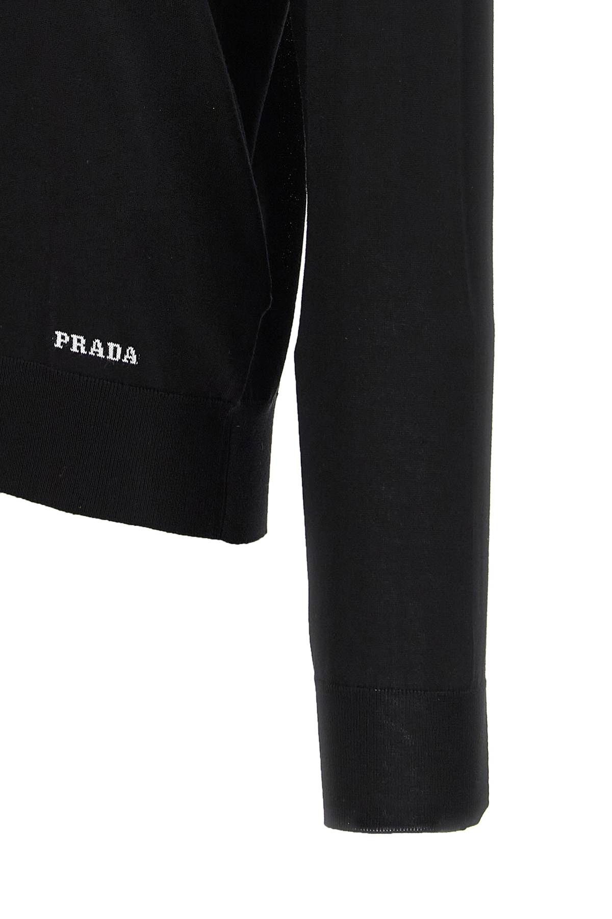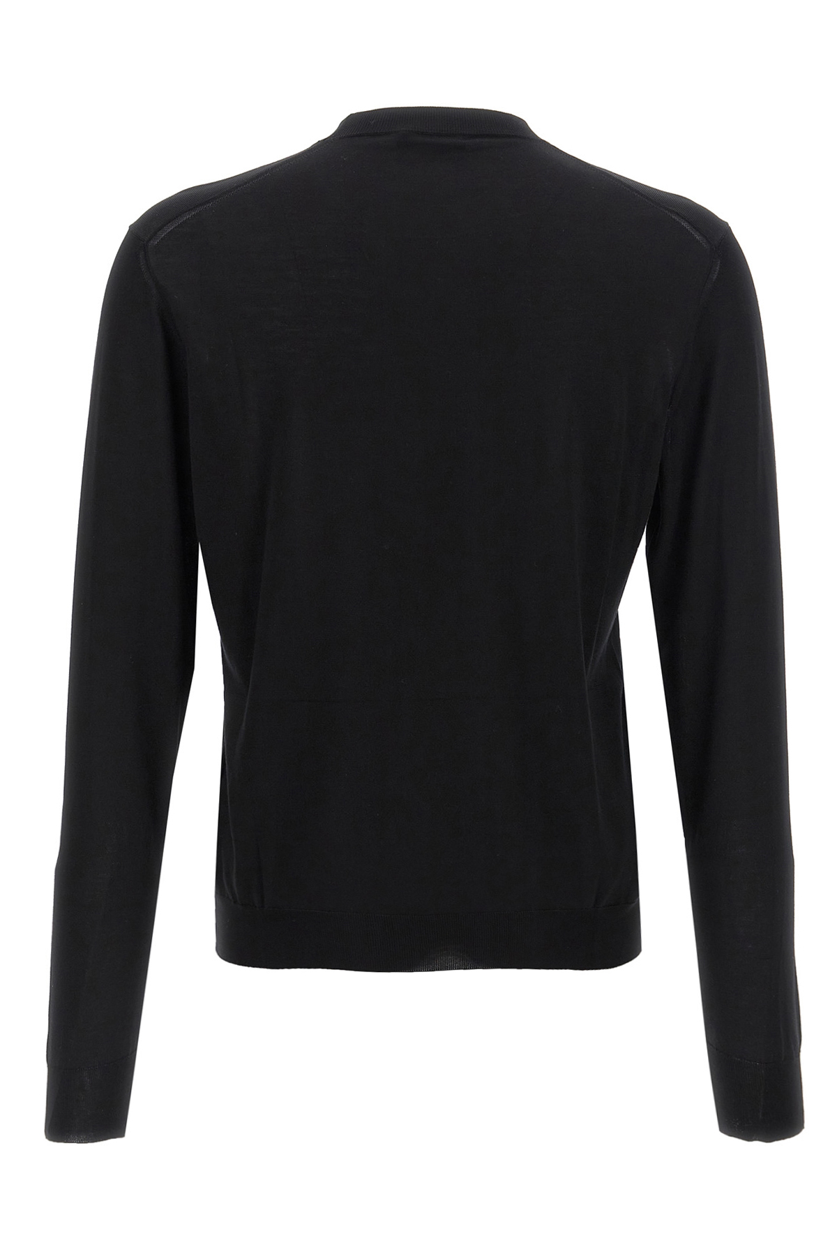 Silk sweater, contrast front logo embroidery, crew neck, long cuffed sleeves.