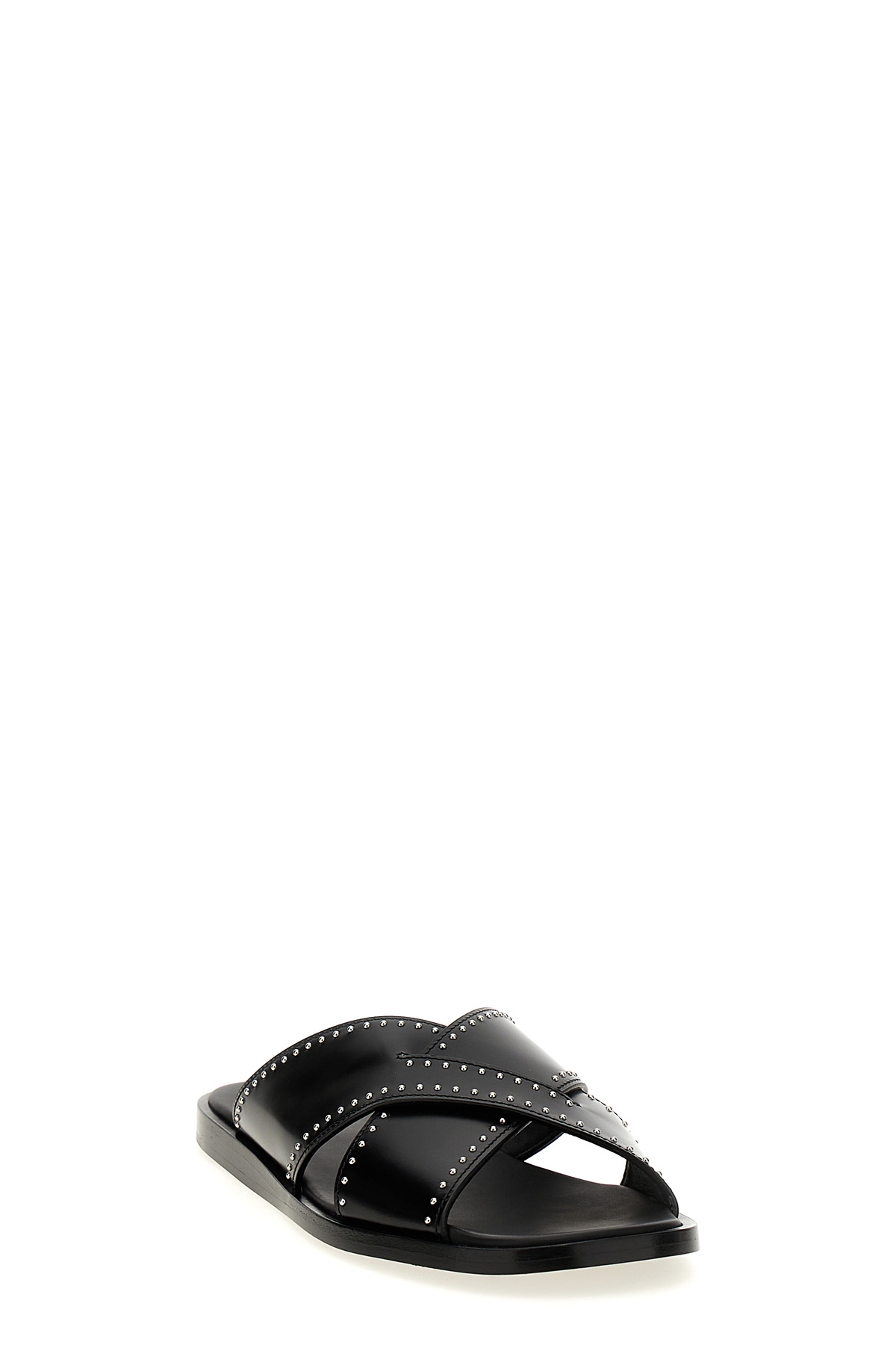 'Oriyah Met' leather sandals with micro stud application, leather and rubber sole.