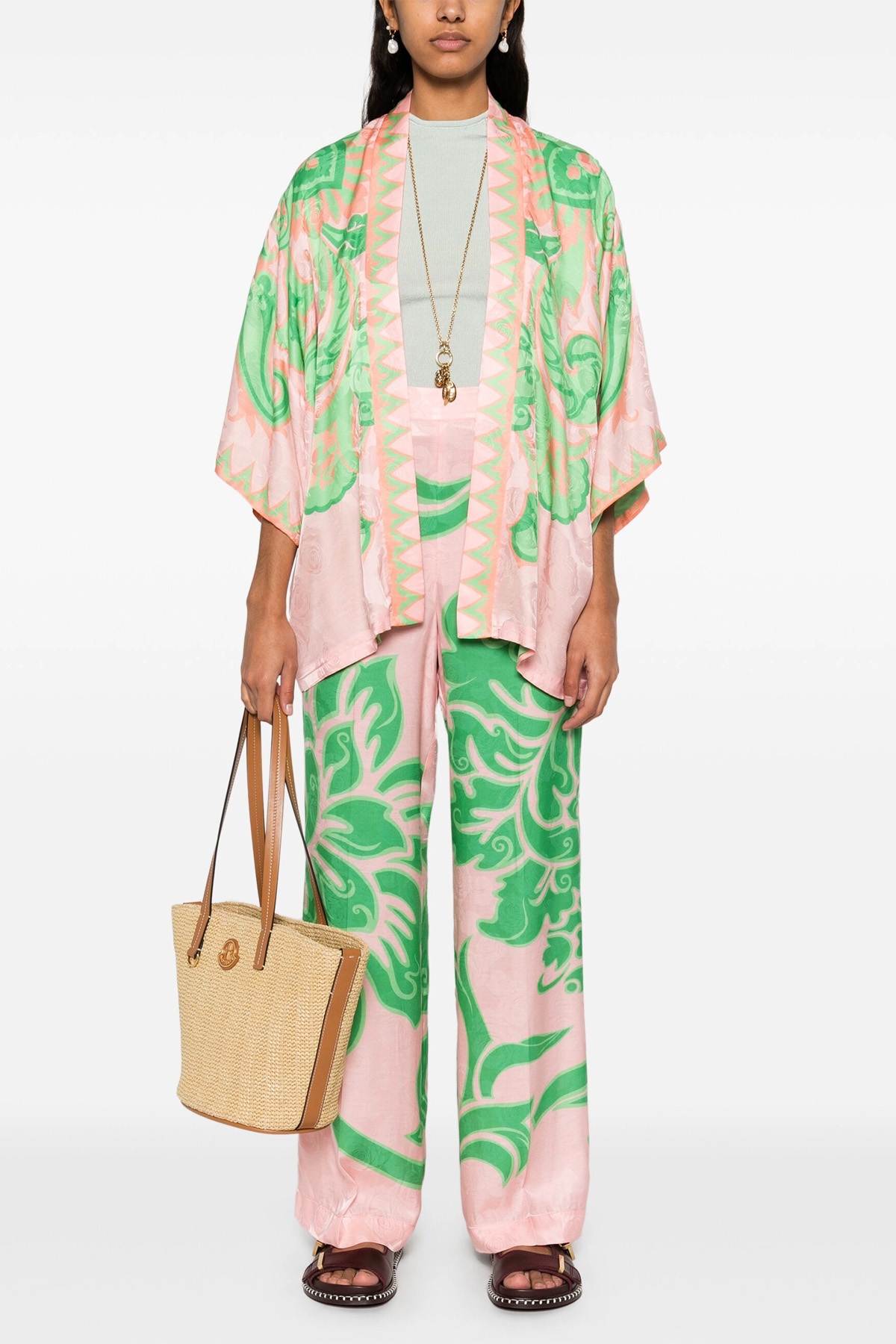 Viscose and silk blend trousers, wide and straight leg, side zip closure, elastic waistband, pockets.