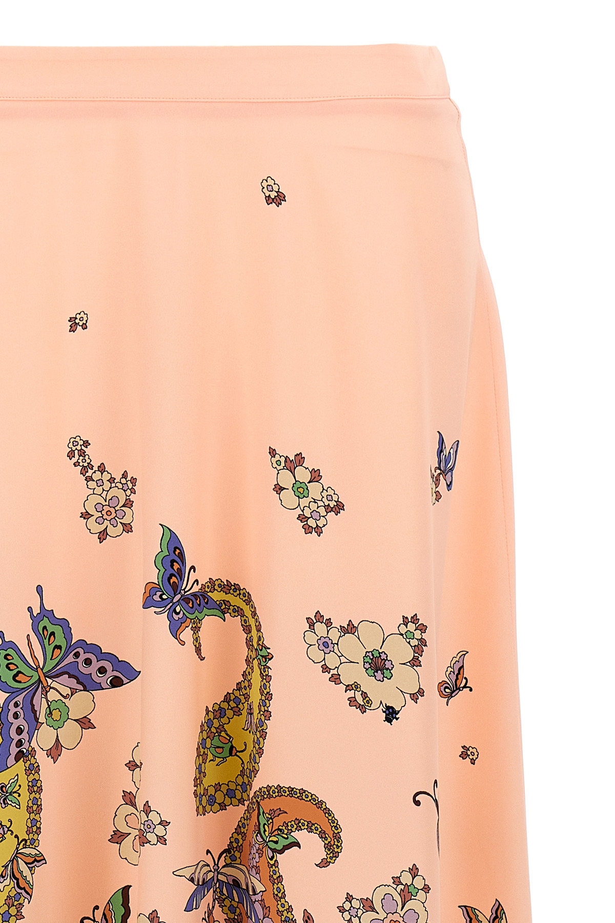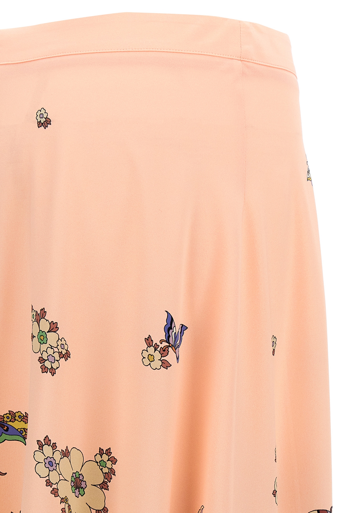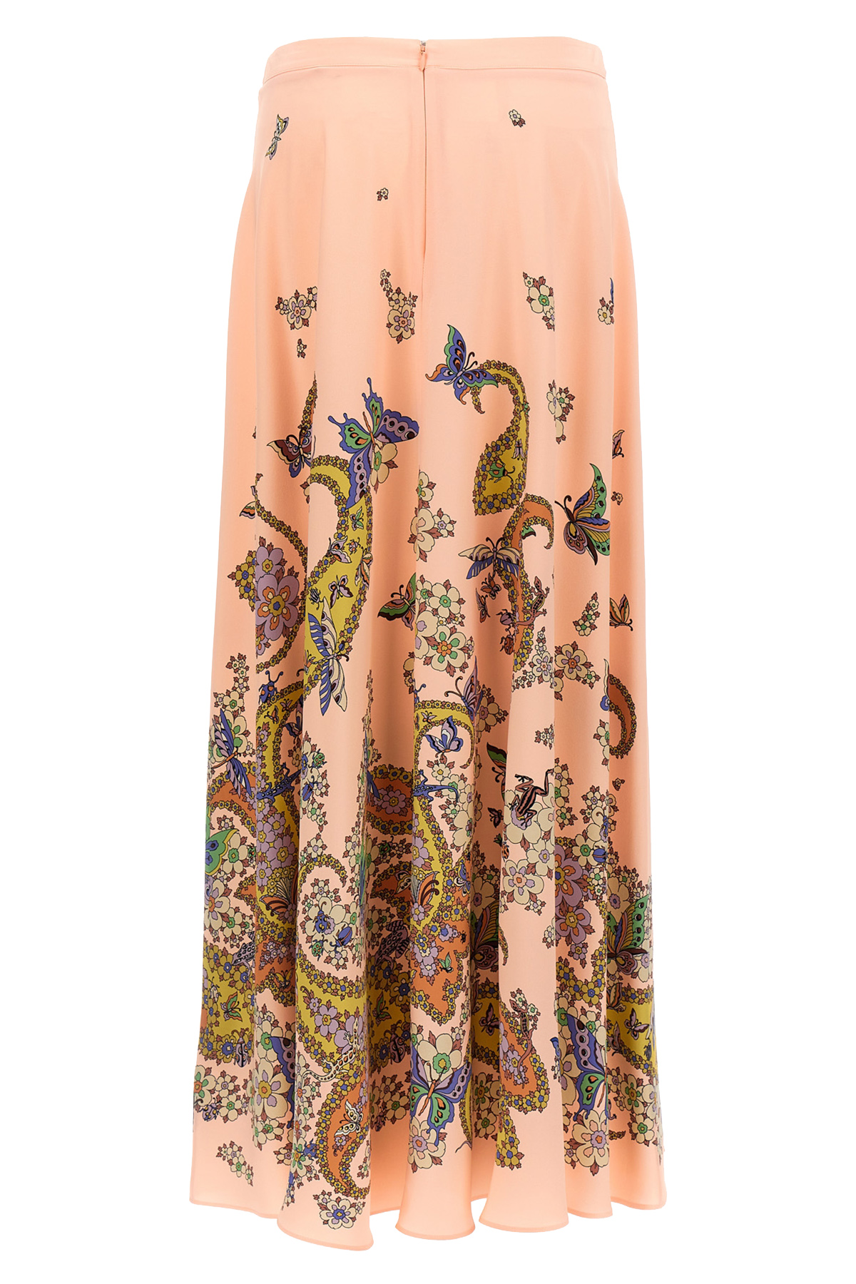 Long skirt in silk with floral print, back zip closure.