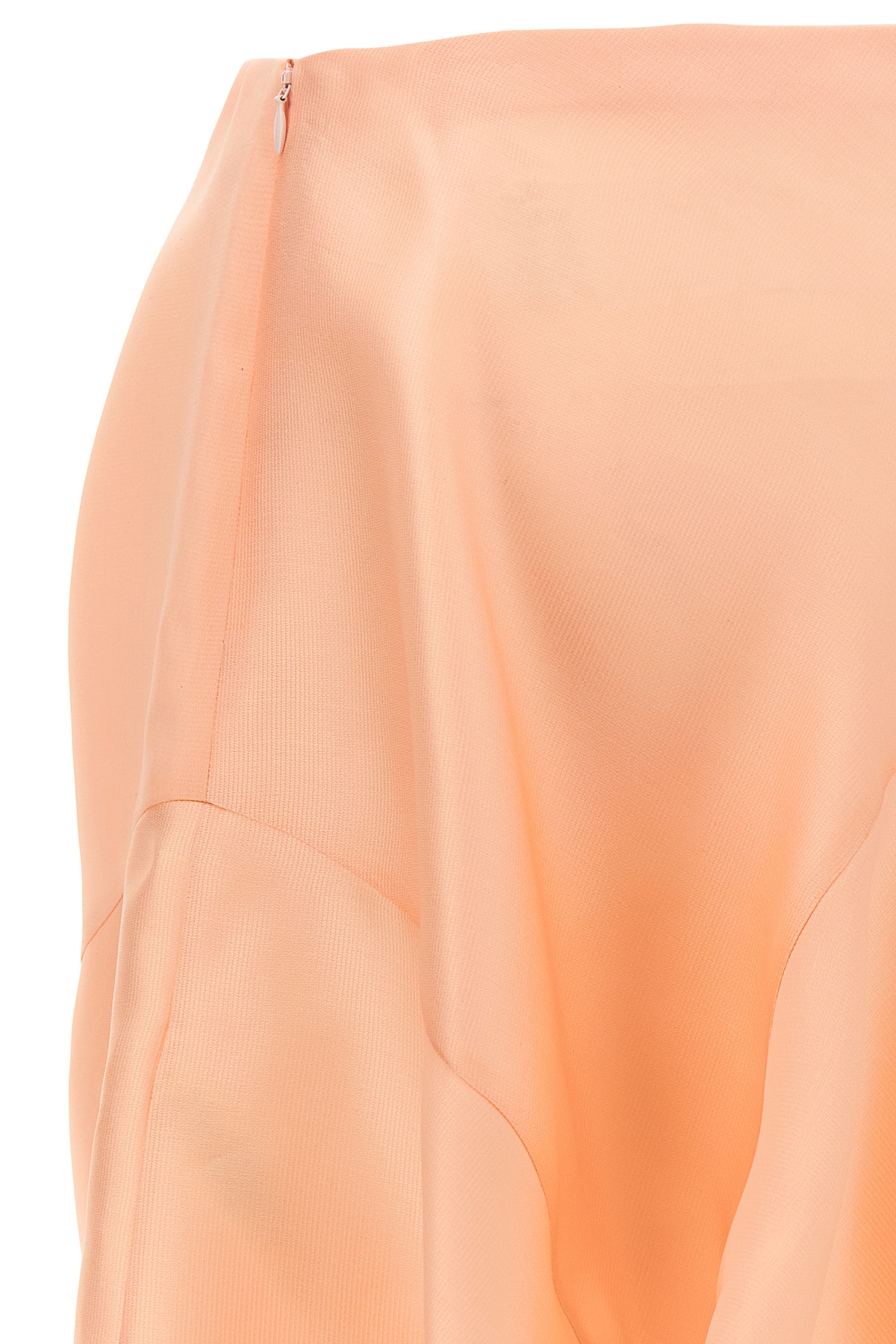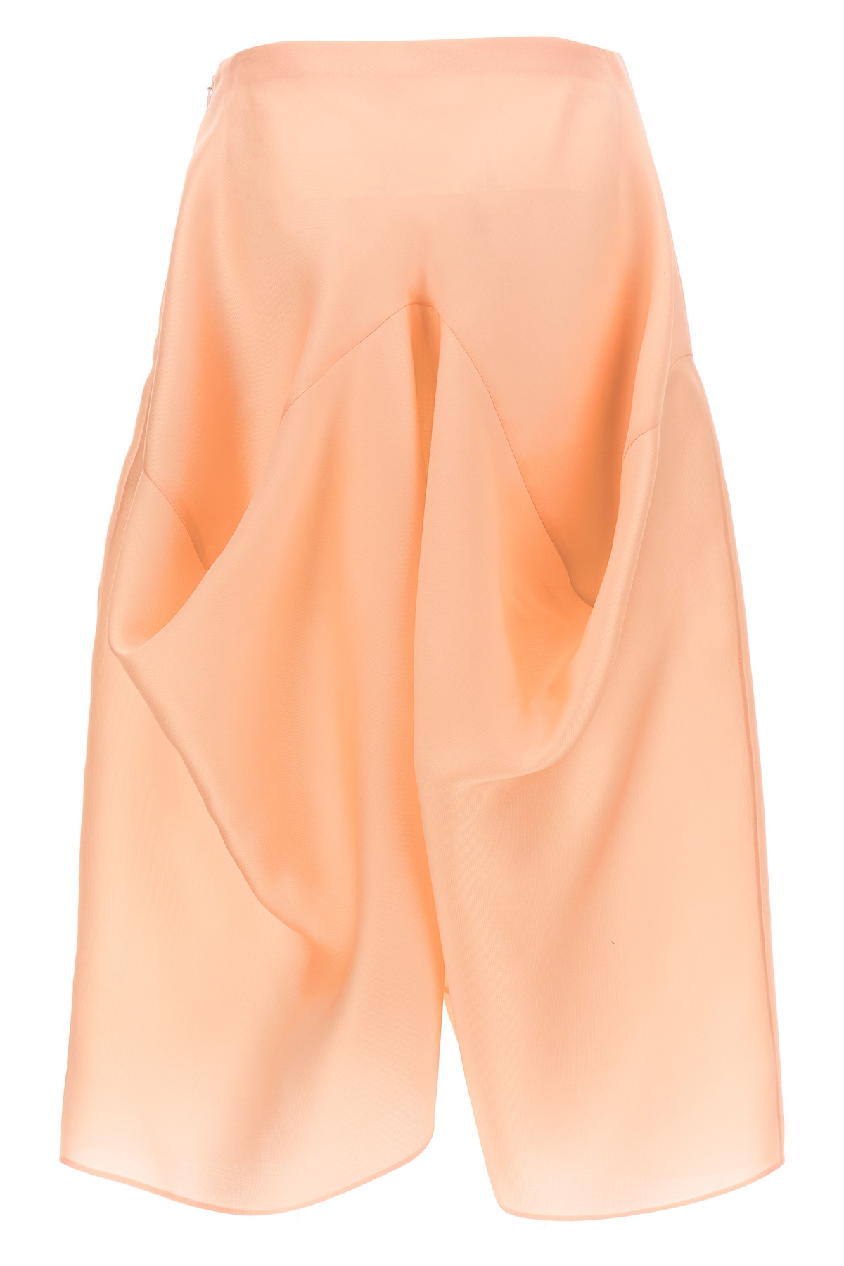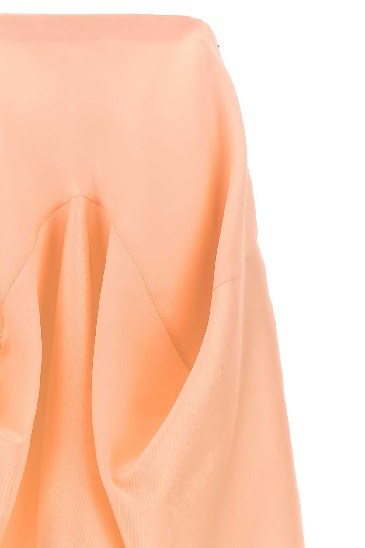 'Sawyer' smooth silk gazar midi skirt with front draping, side zip closure.