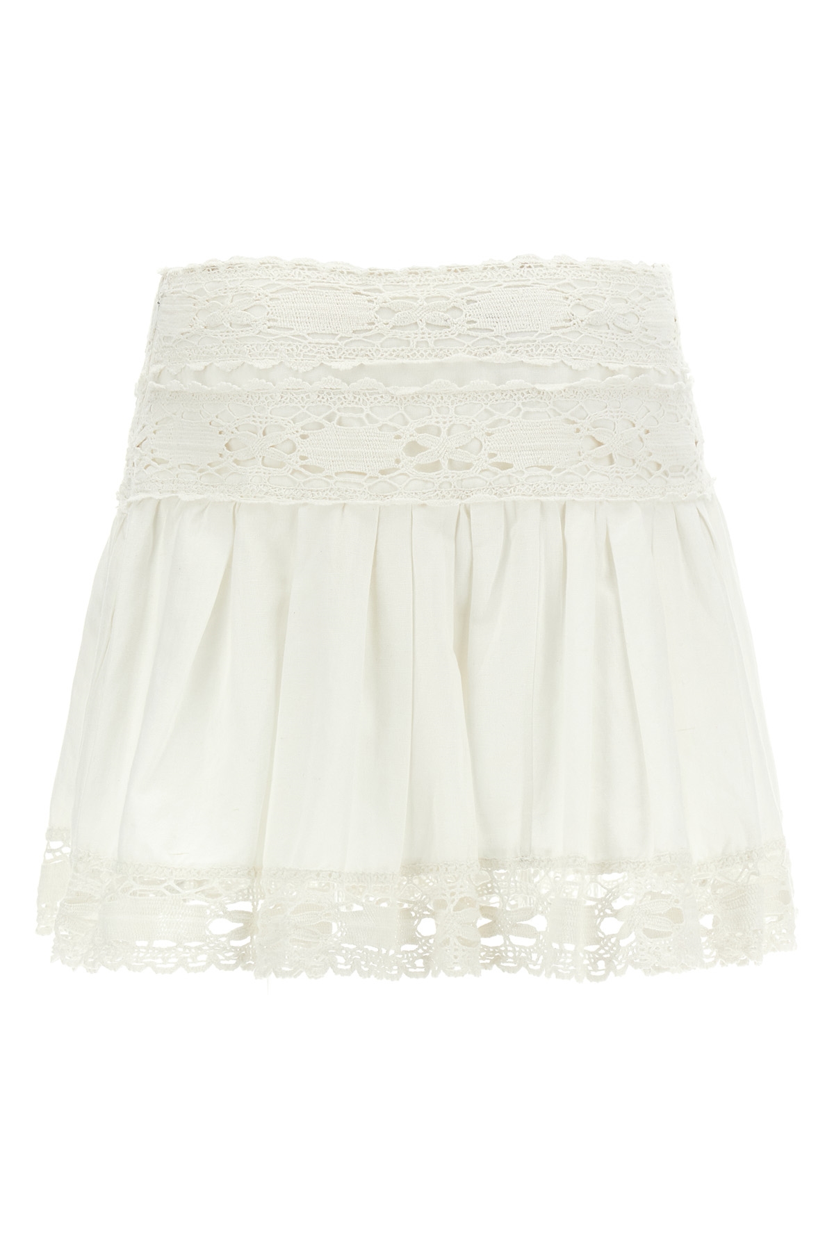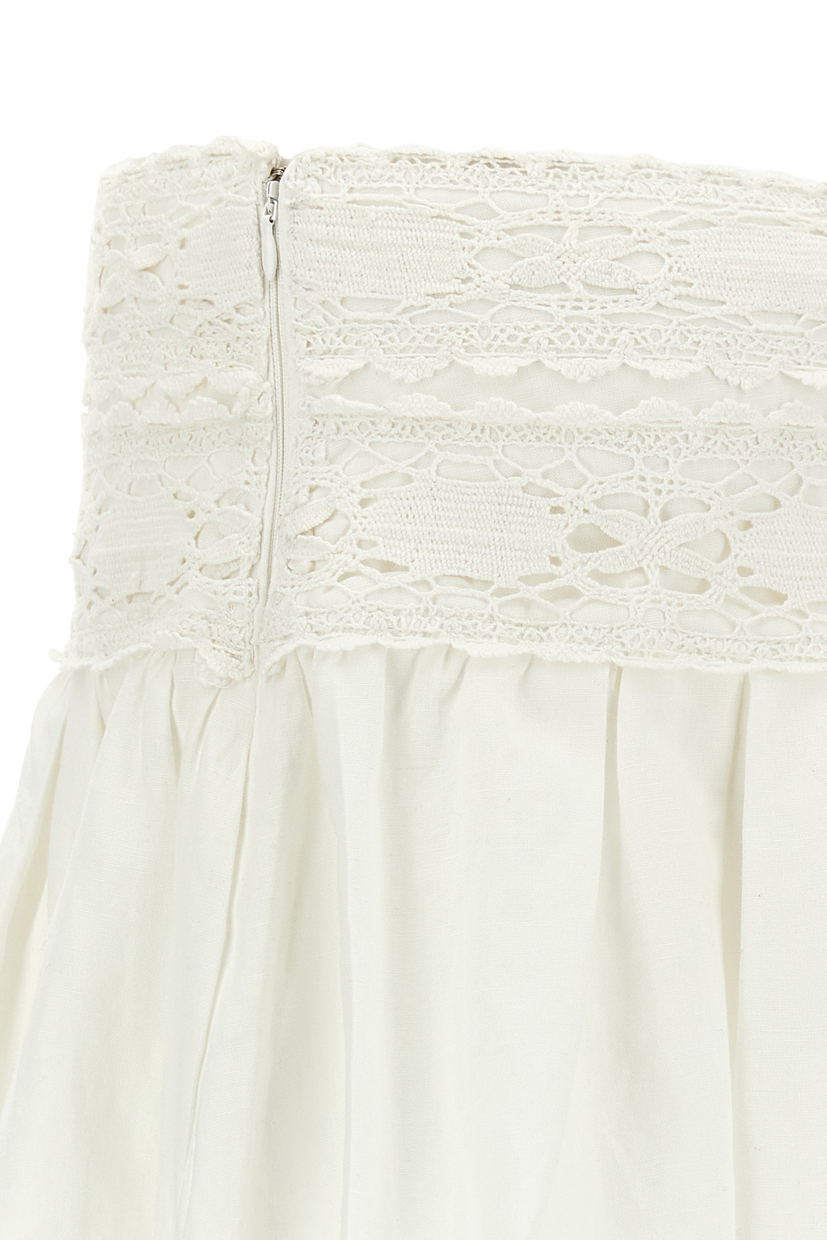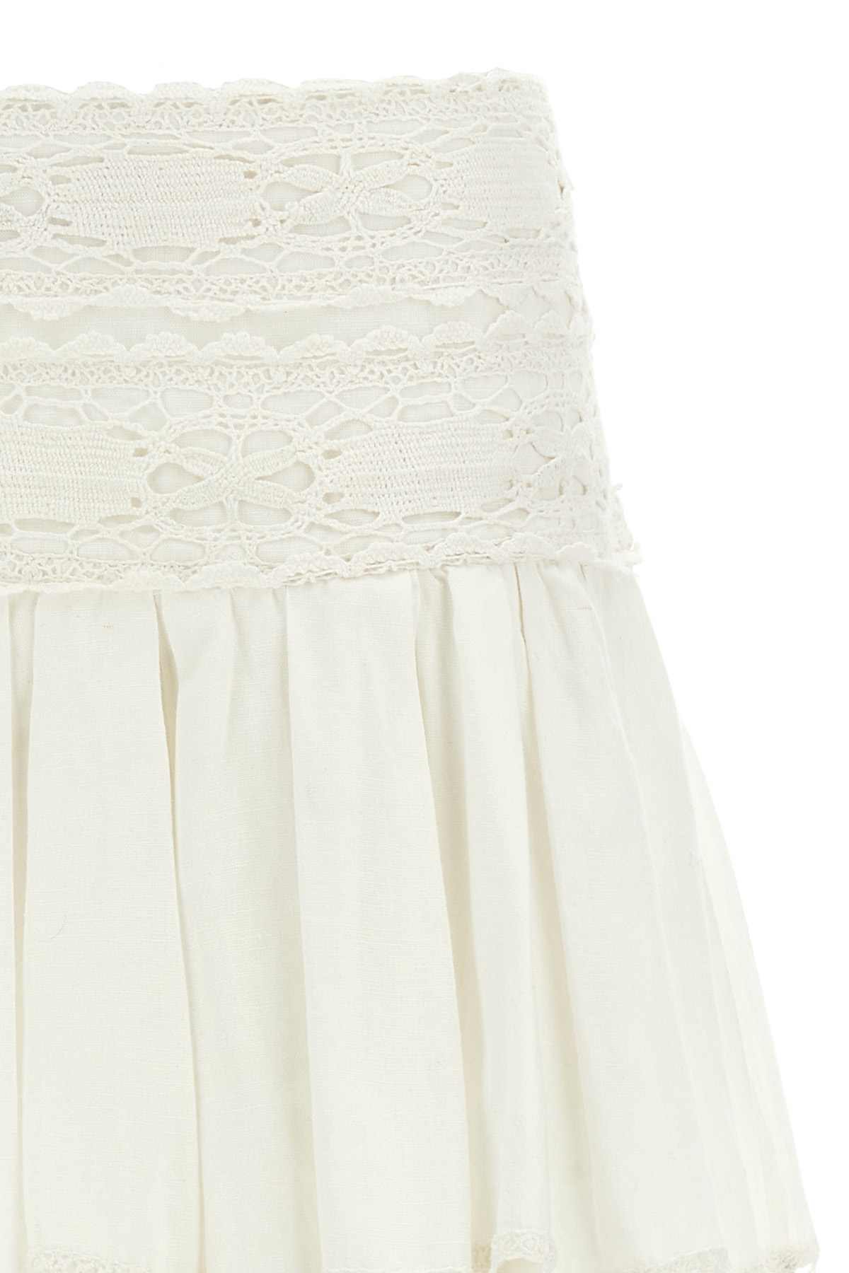 'Violana' mini skirt in linen and cotton blend with macrame inserts, side zip closure, underskirt.