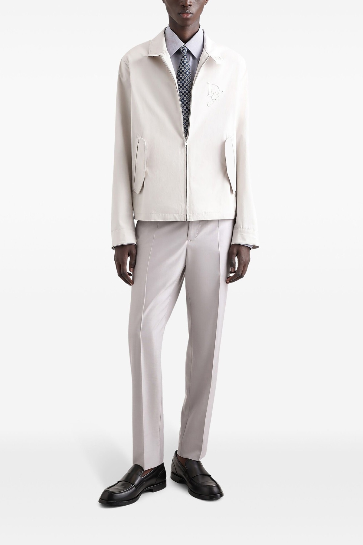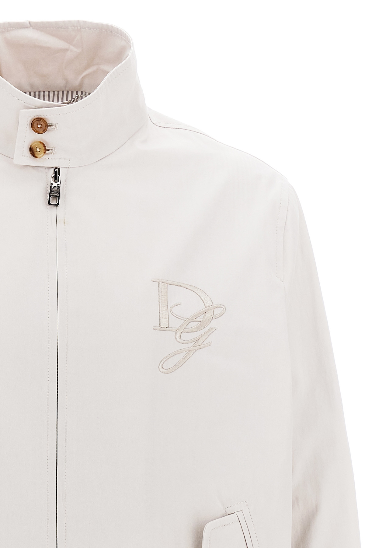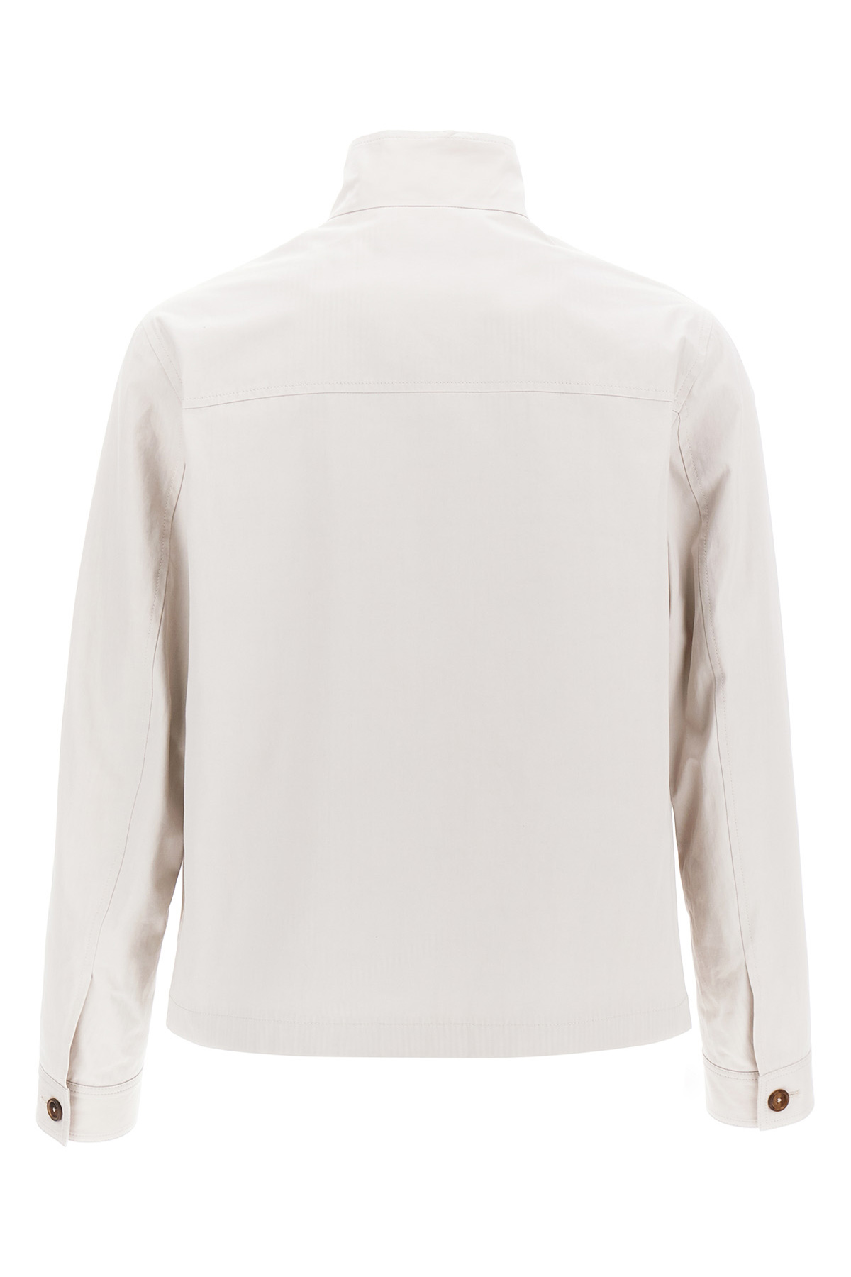 Cotton jacket with tonal front logo embroidery, zip closure, high neck with button closure, lining, pockets, long cuffed sleeves.