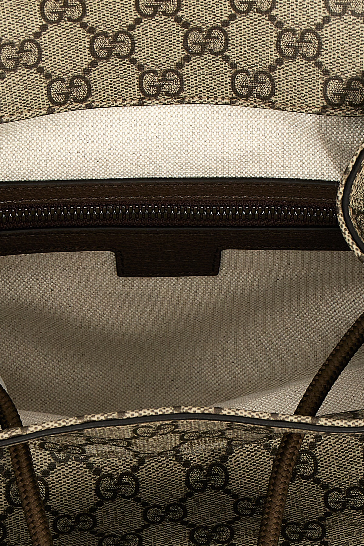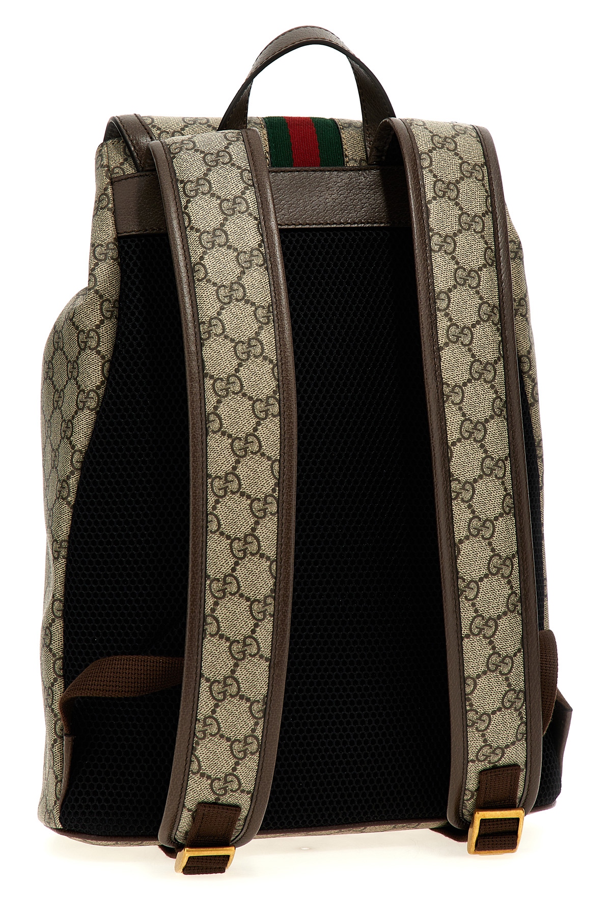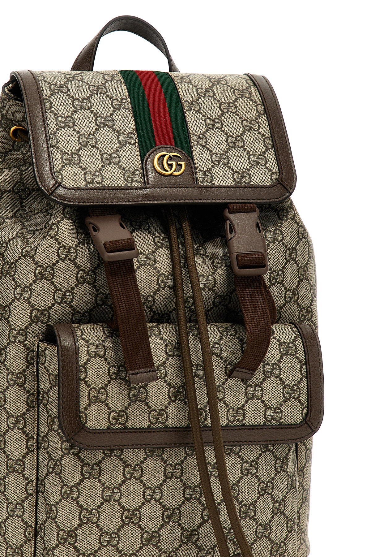 Small 'Ophidia' backpack in GG Supreme fabric with leather details, Web Ribbon with GG metal logo, flap closure, straps and buckles, inner drawstring, adjustable shoulder straps, pocket.