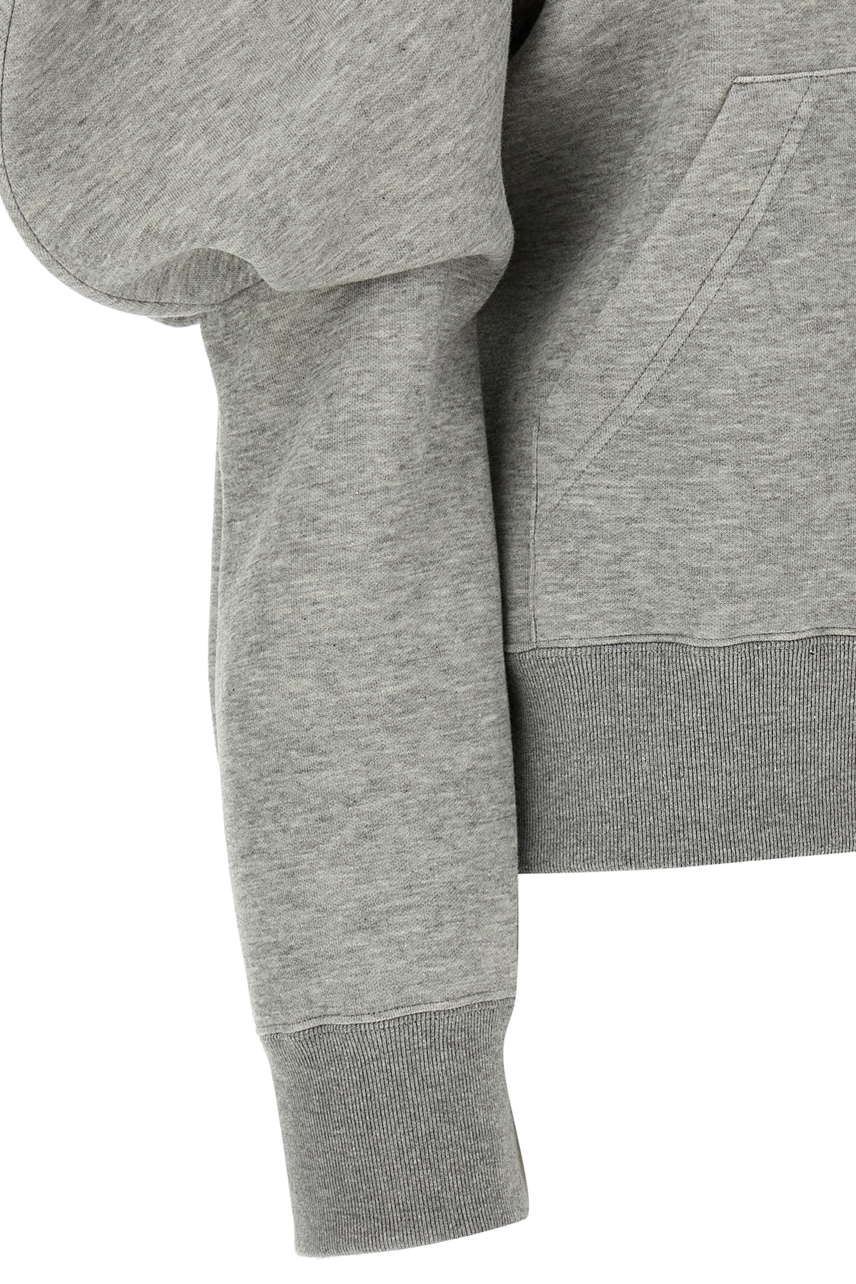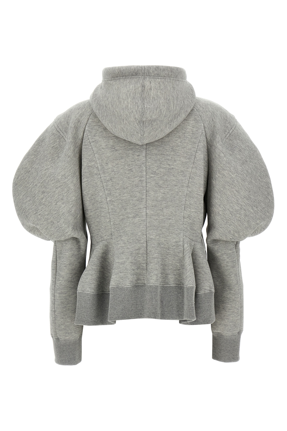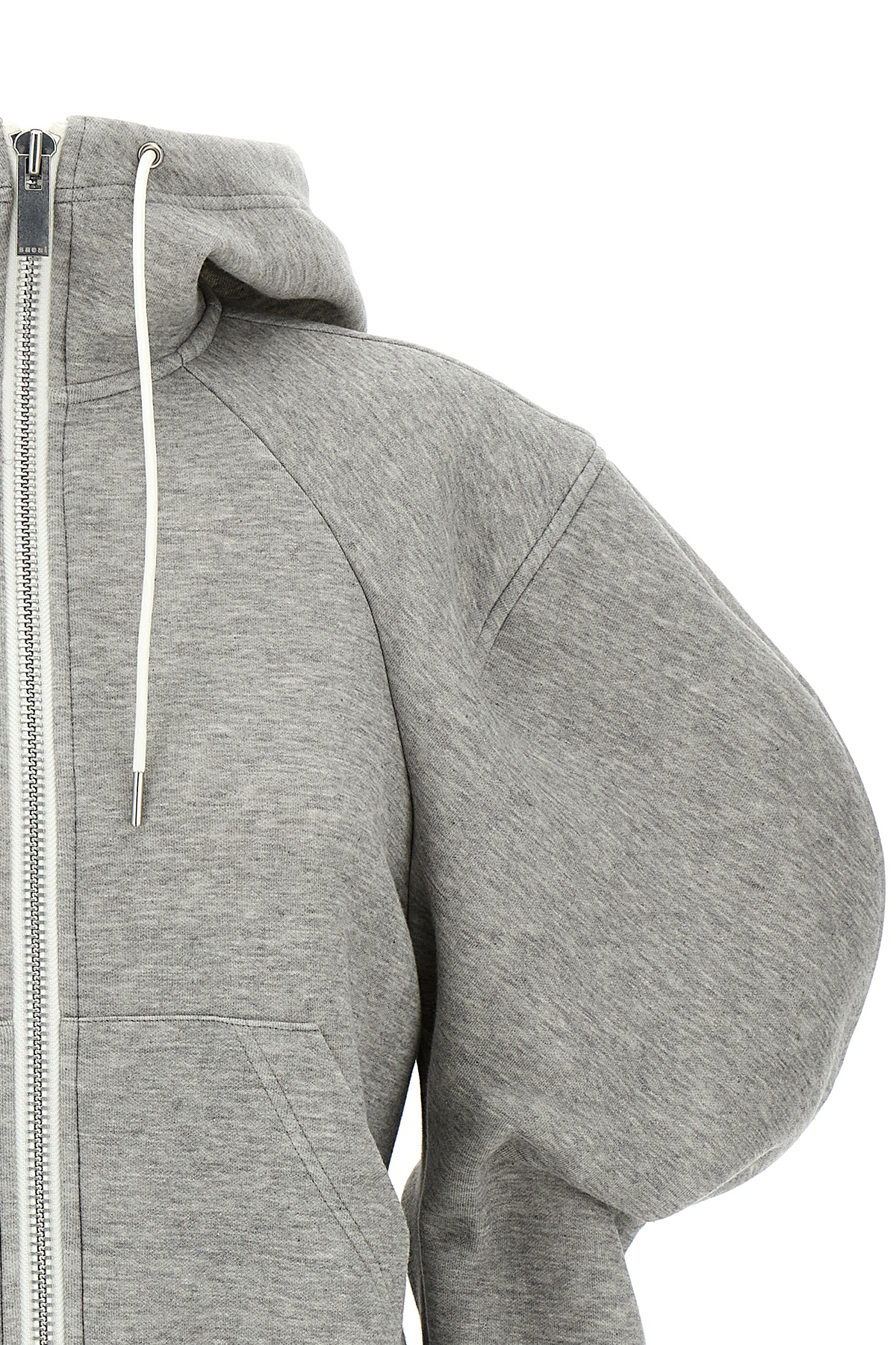 'Sponge' cotton blend hoodie with high neck, zip closure, pockets, long sleeves with puff cuffs and shoulders, pleated sides.