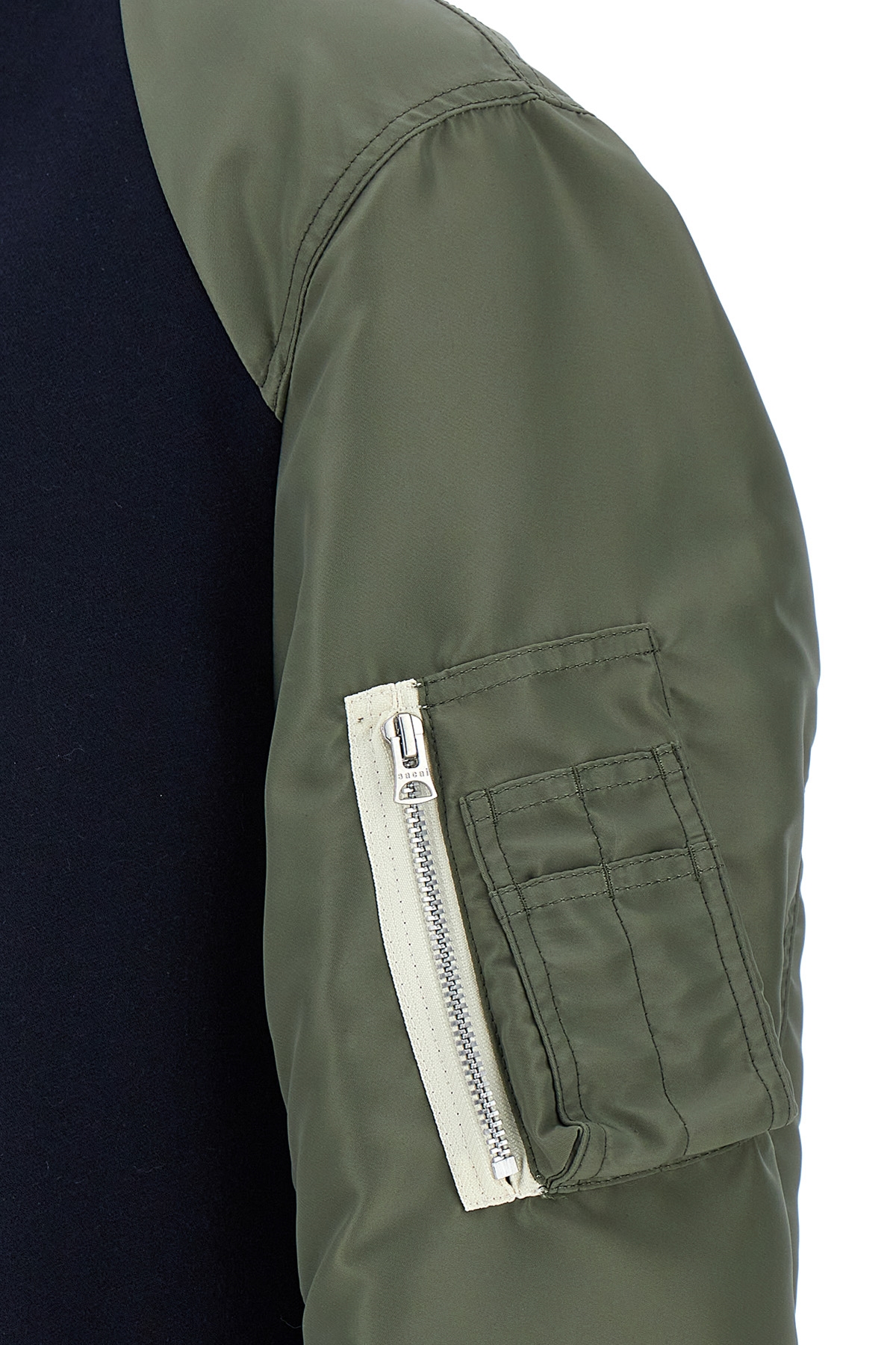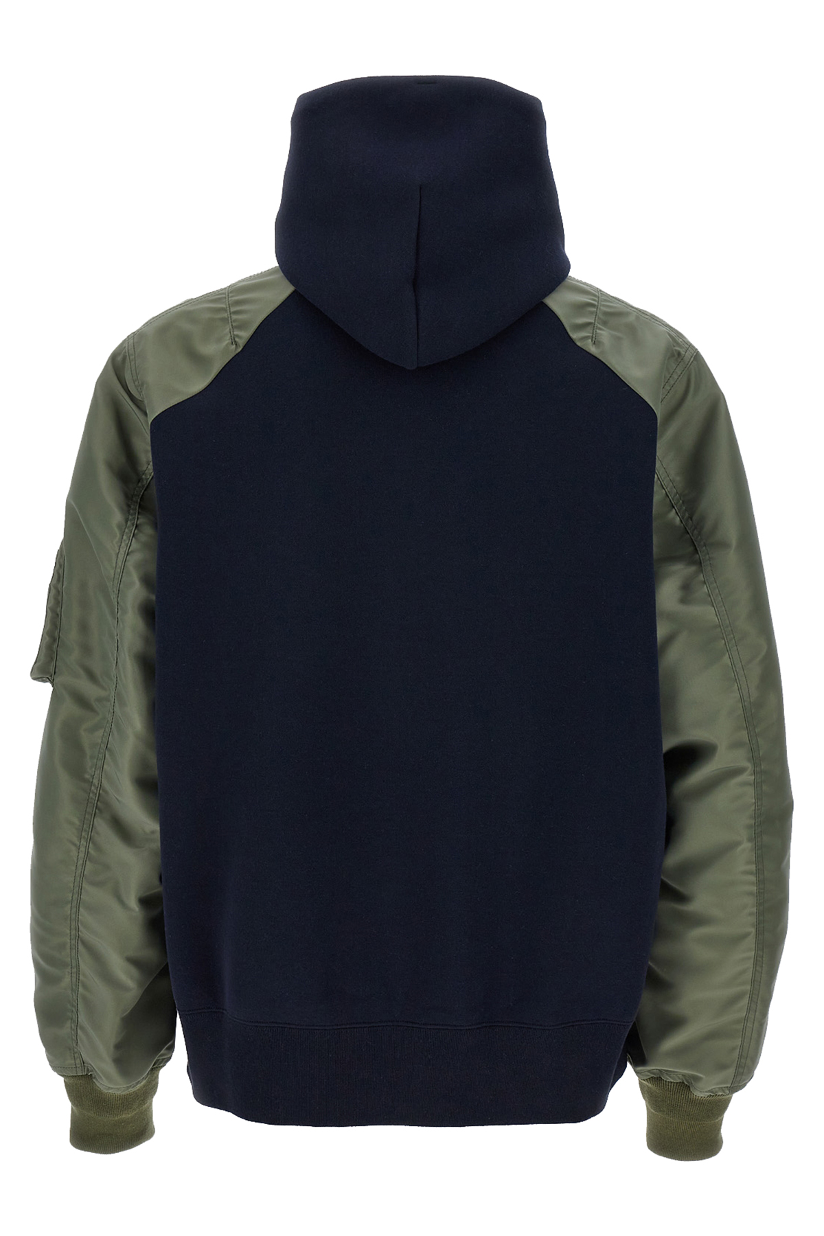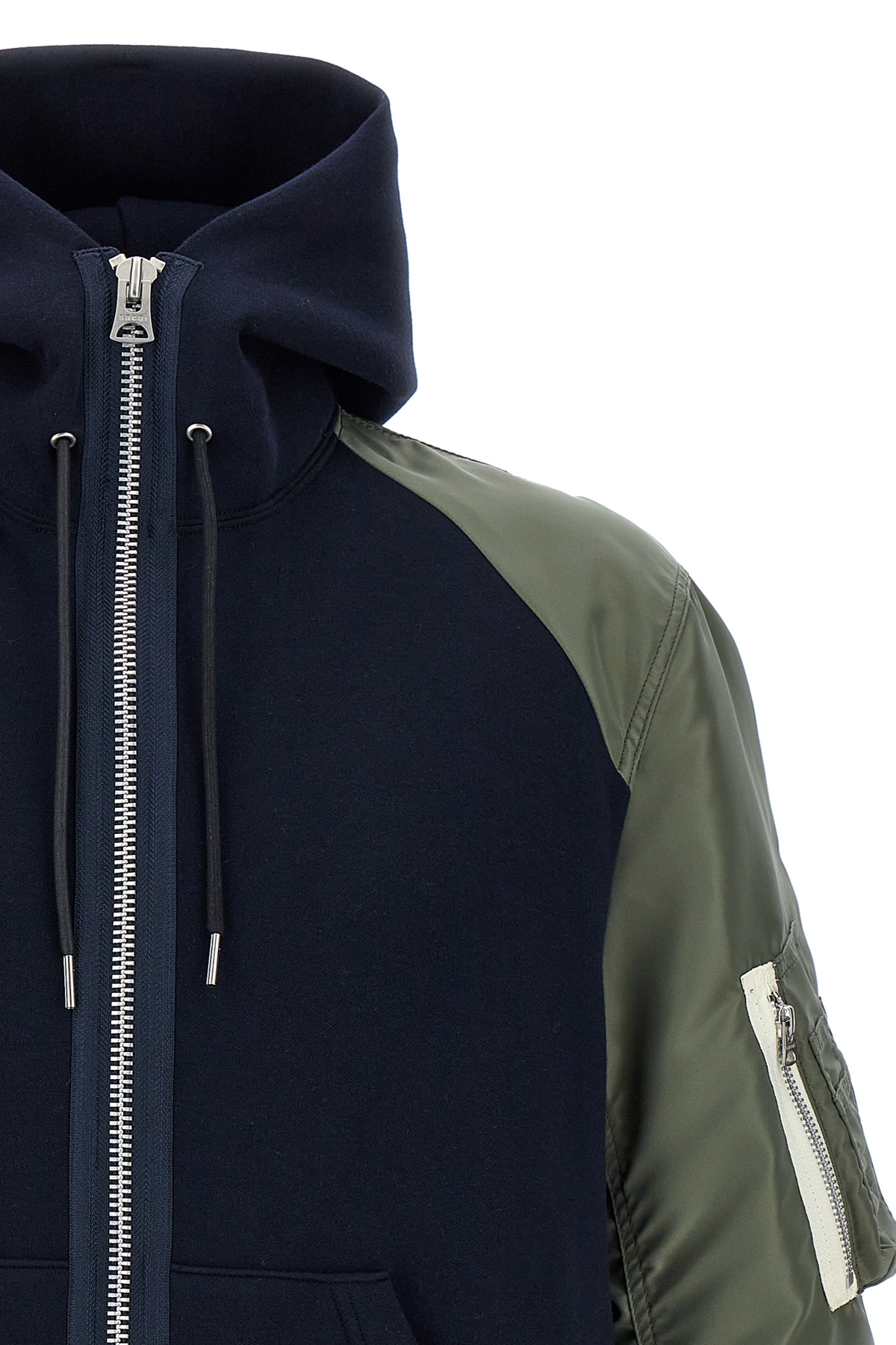 'Sponge' cotton blend hoodie with contrast nylon long sleeves with elastic cuffs, zip closure, pockets.