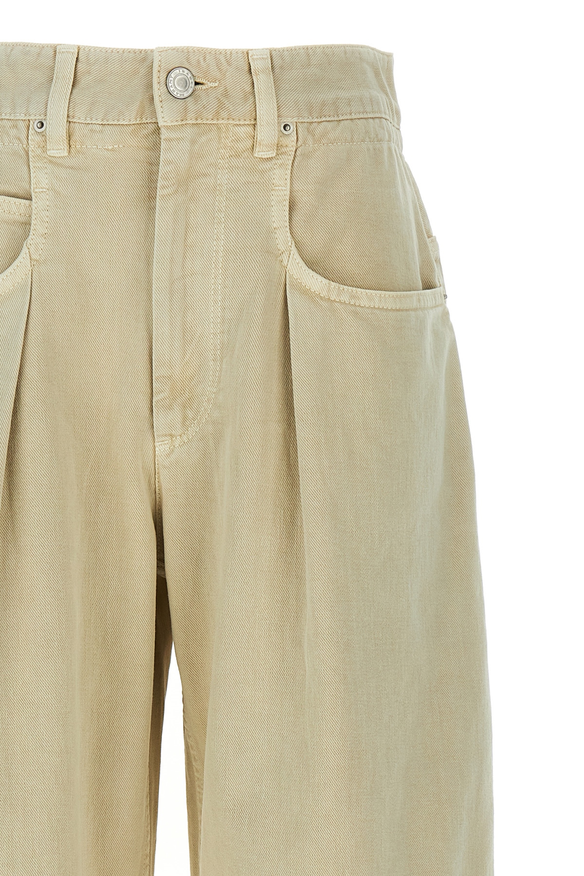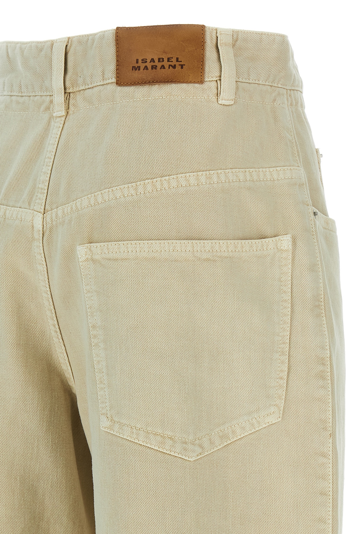 High-waisted cotton denim Rachelle jeans with zip and button closure, five pockets, straight, wide leg with dart under the pocket, and leather logo label at the back.