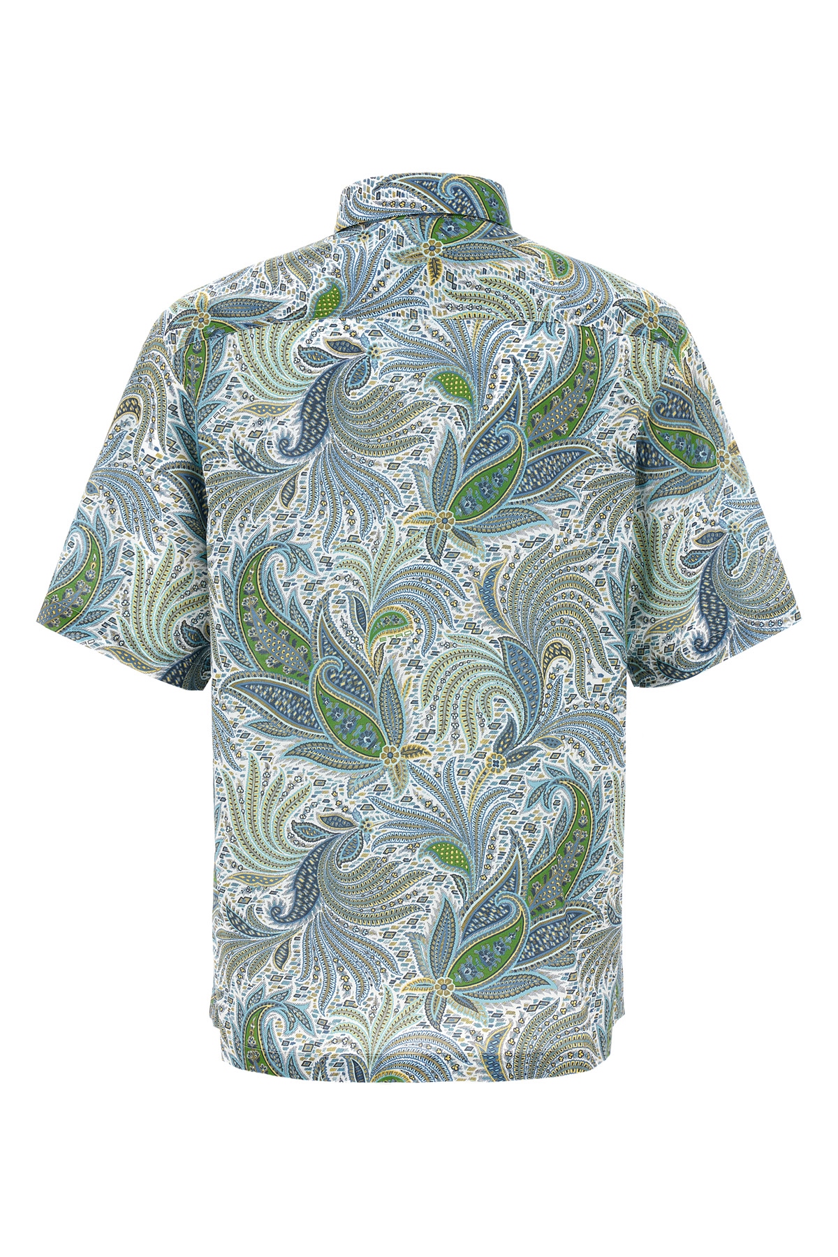 Cotton shirt with all-over maxi flowered Paisley print, tone-on-tone embroidered logo on the front, button closure, and short sleeves.