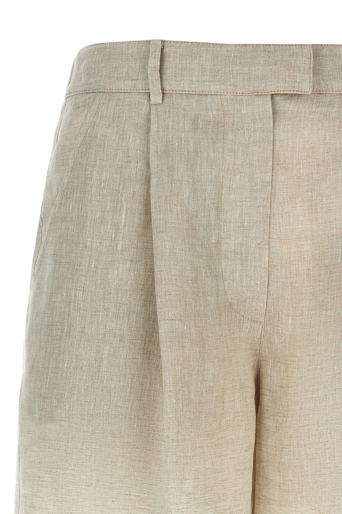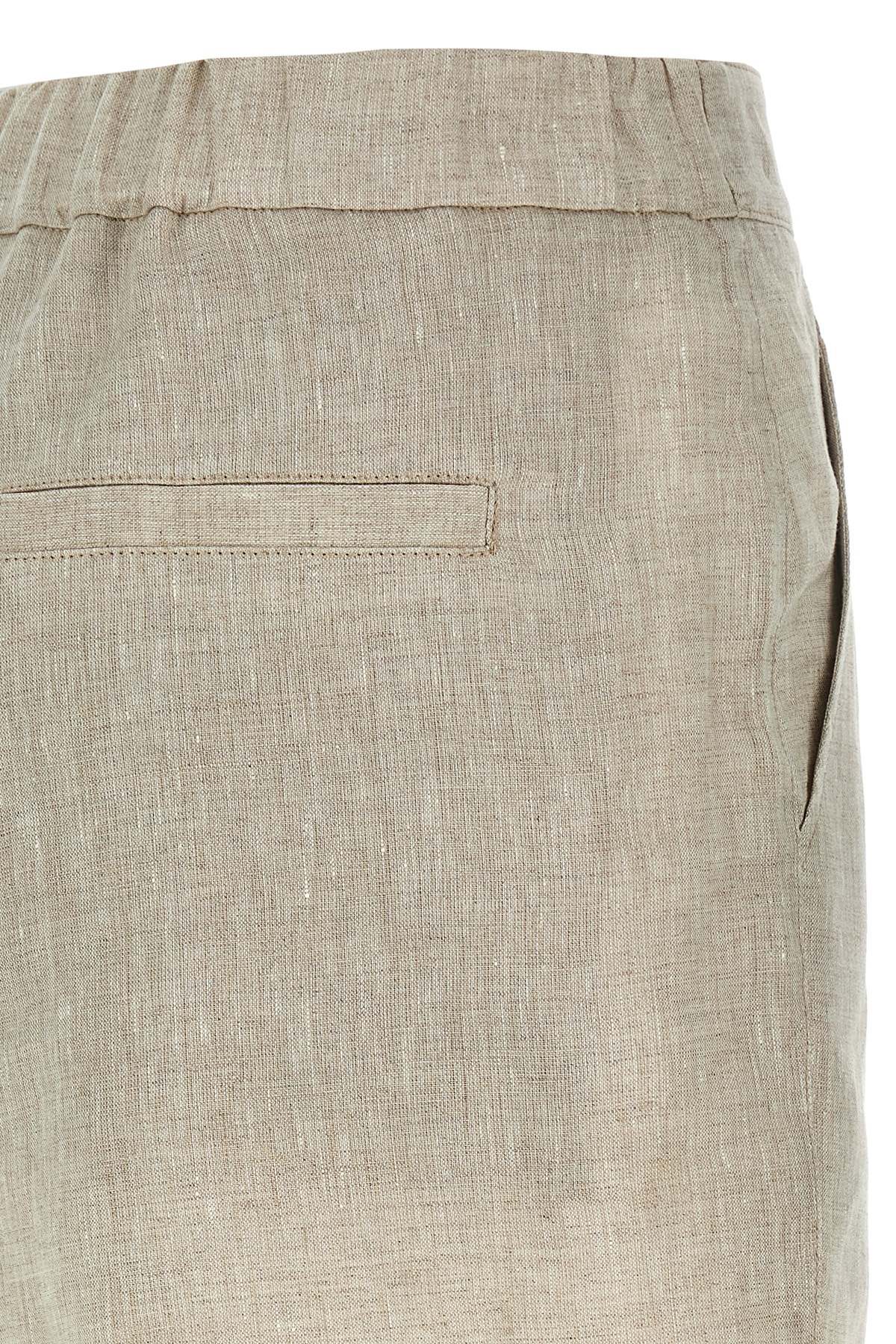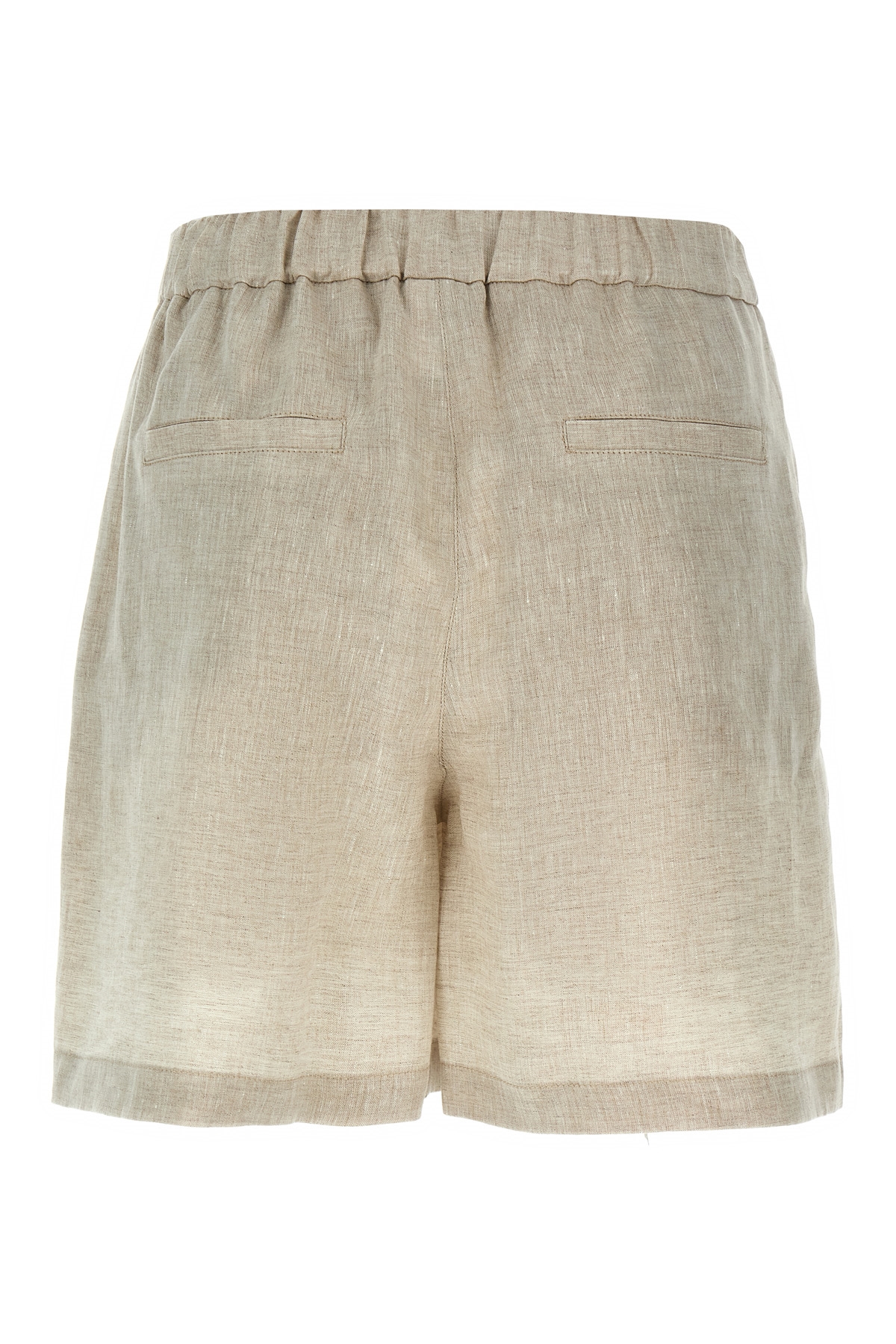 Linen shorts, pins, hook and button zip closure, back elastic waistband, pockets.