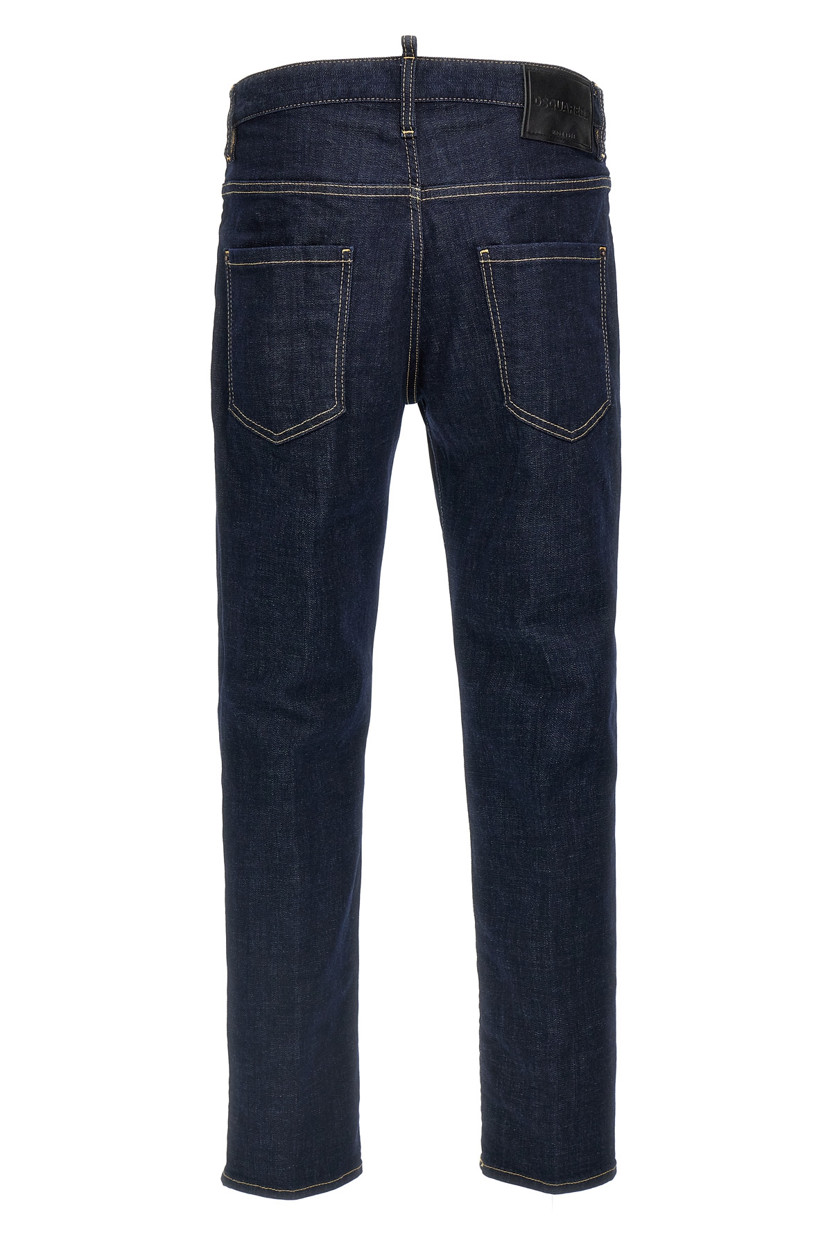 'Skater' cotton denim jeans with contrast stitching, button closure, five pockets, leather logo label at the back.