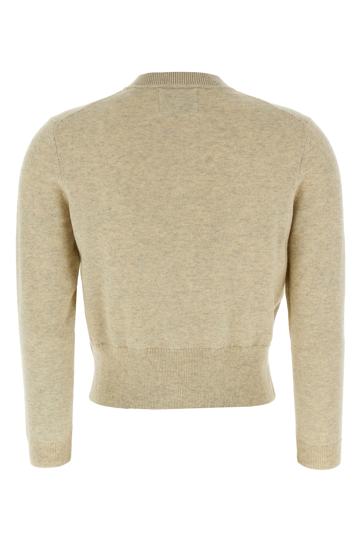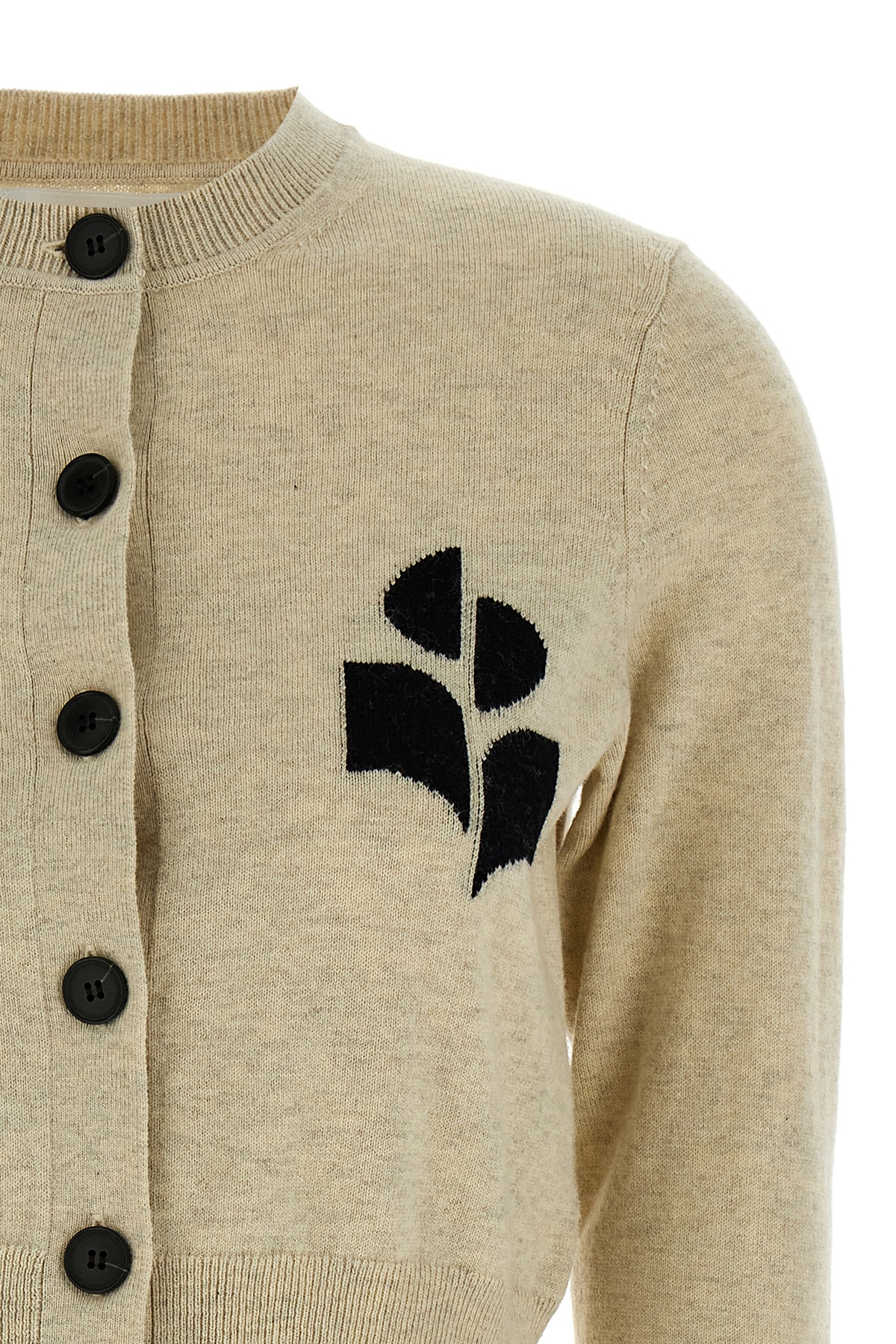 Newton' cardigan in melange cotton and wool blend with contrast jacquard logo, crew neck, button closure, long cuffed sleeves.