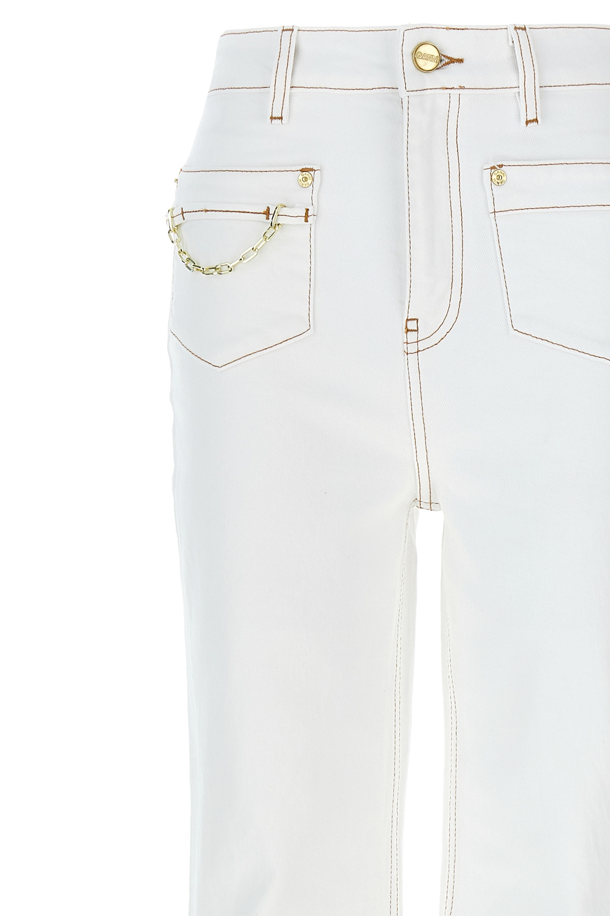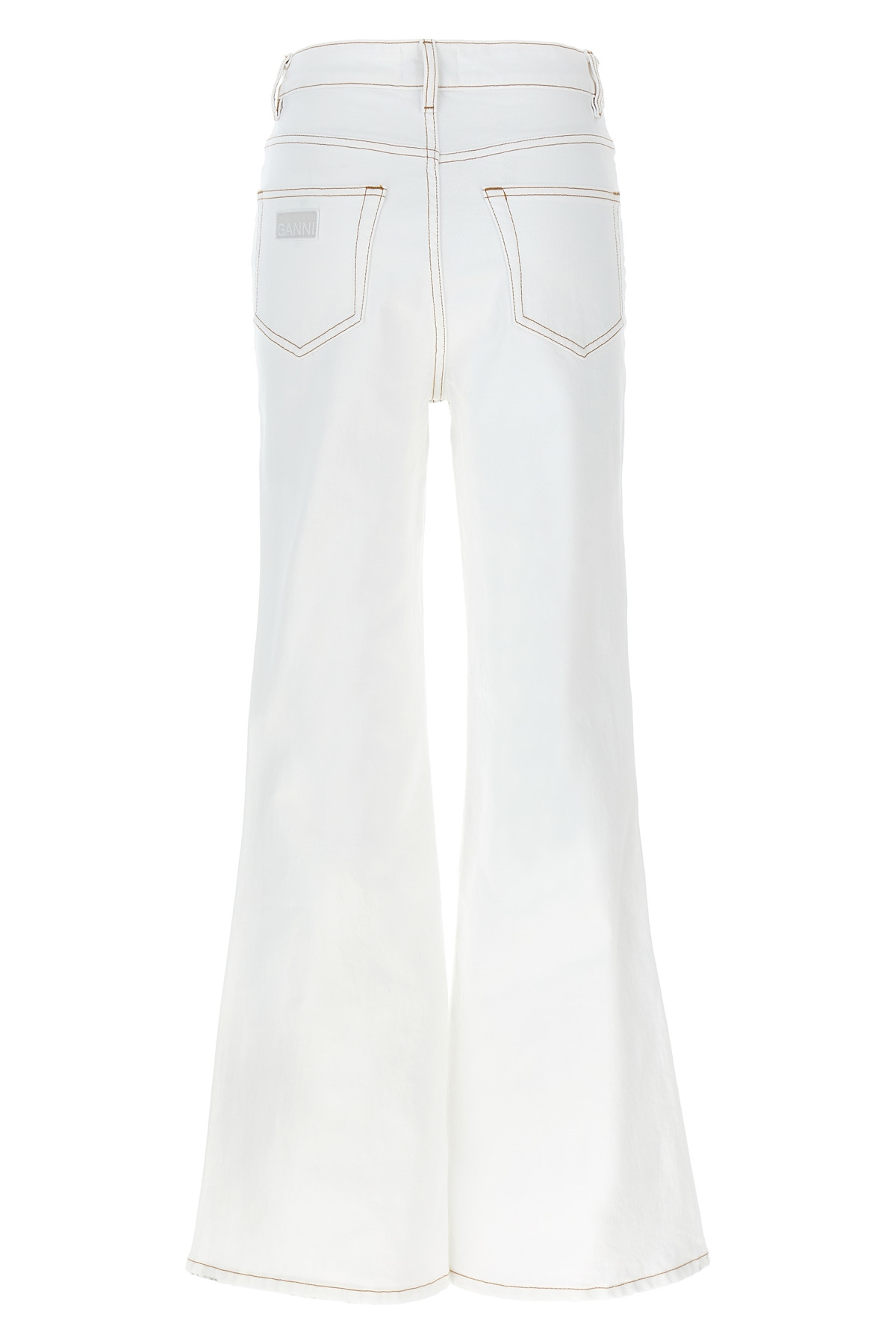 High-waisted cotton denim 'Goddi' jeans with contrast stitching, flared leg, zip and button closure, pockets, metal details, and back logo patch.