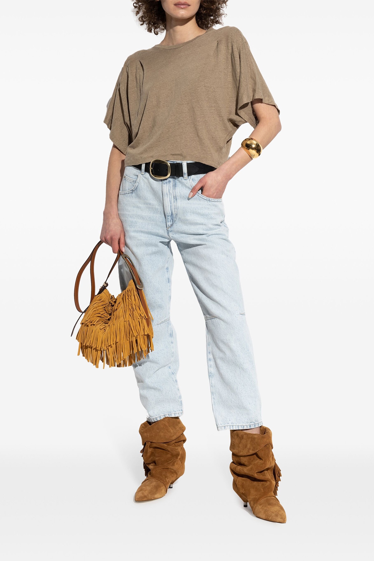 'Janet' cotton denim jeans with zip and button closure, five pockets, straight leg with knee pincer, back leather logo tag.