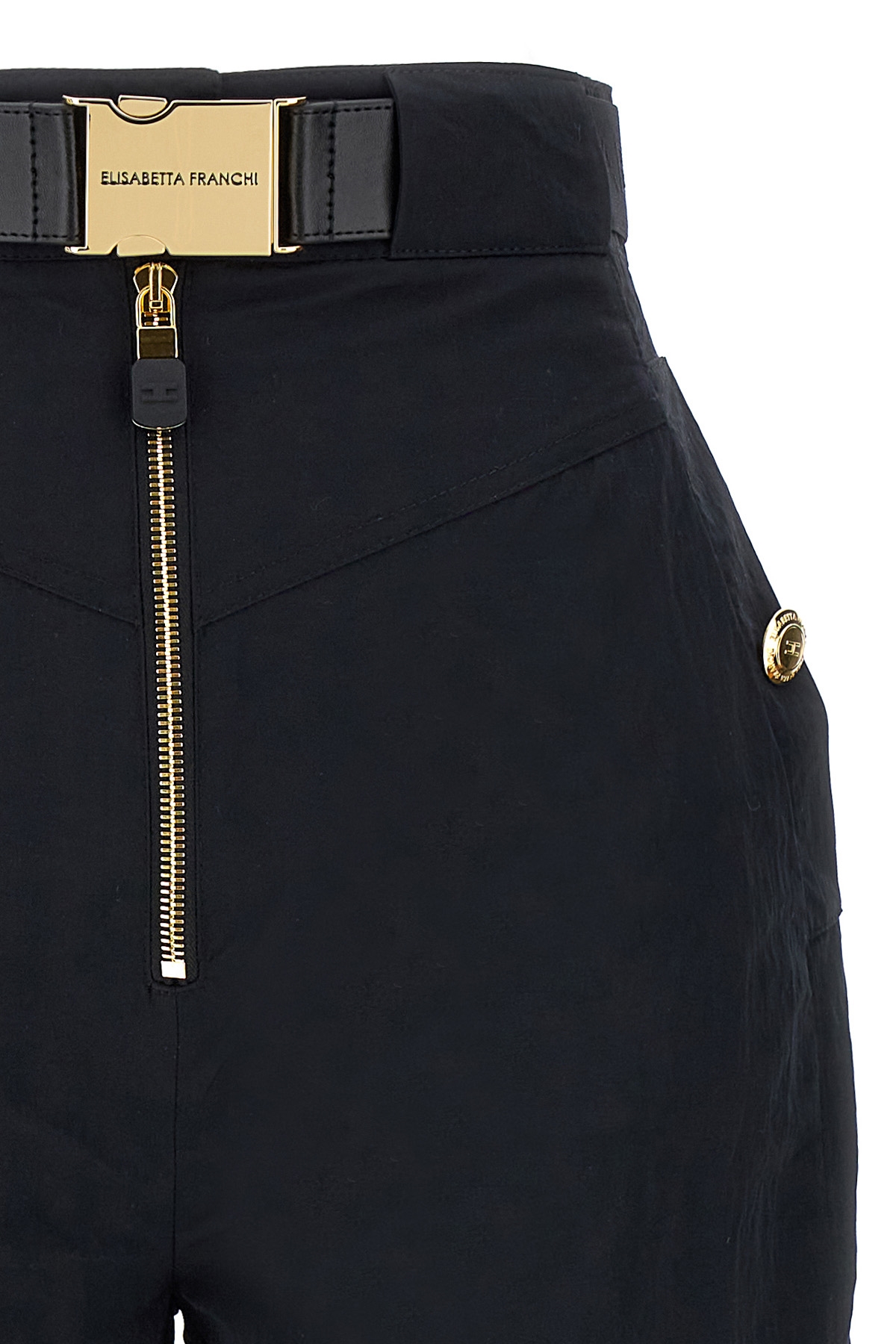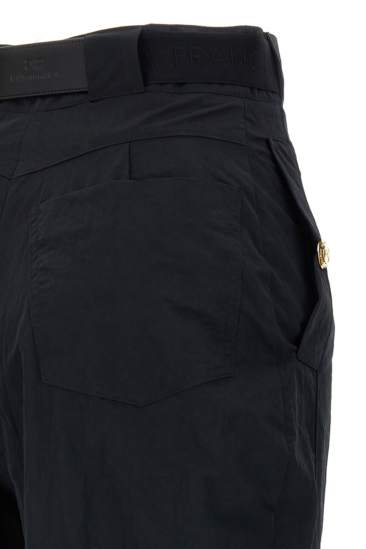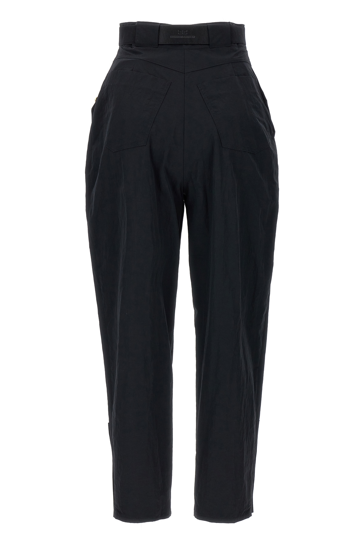 High-waisted technical sail trousers, pockets, zip and snap button closure, button closure on the leg bottoms, adjustable and removable metal logo buckle belt.