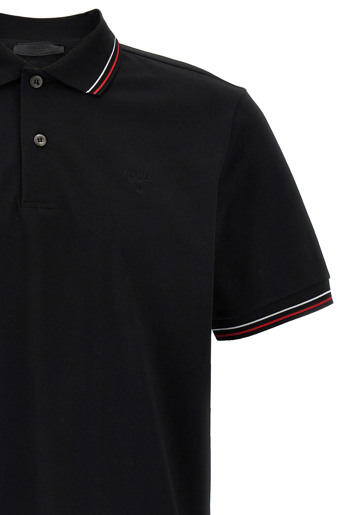 Pique cotton polo shirt with contrasting details, front logo embroidery, collar and buttons, short sleeves, side splits.