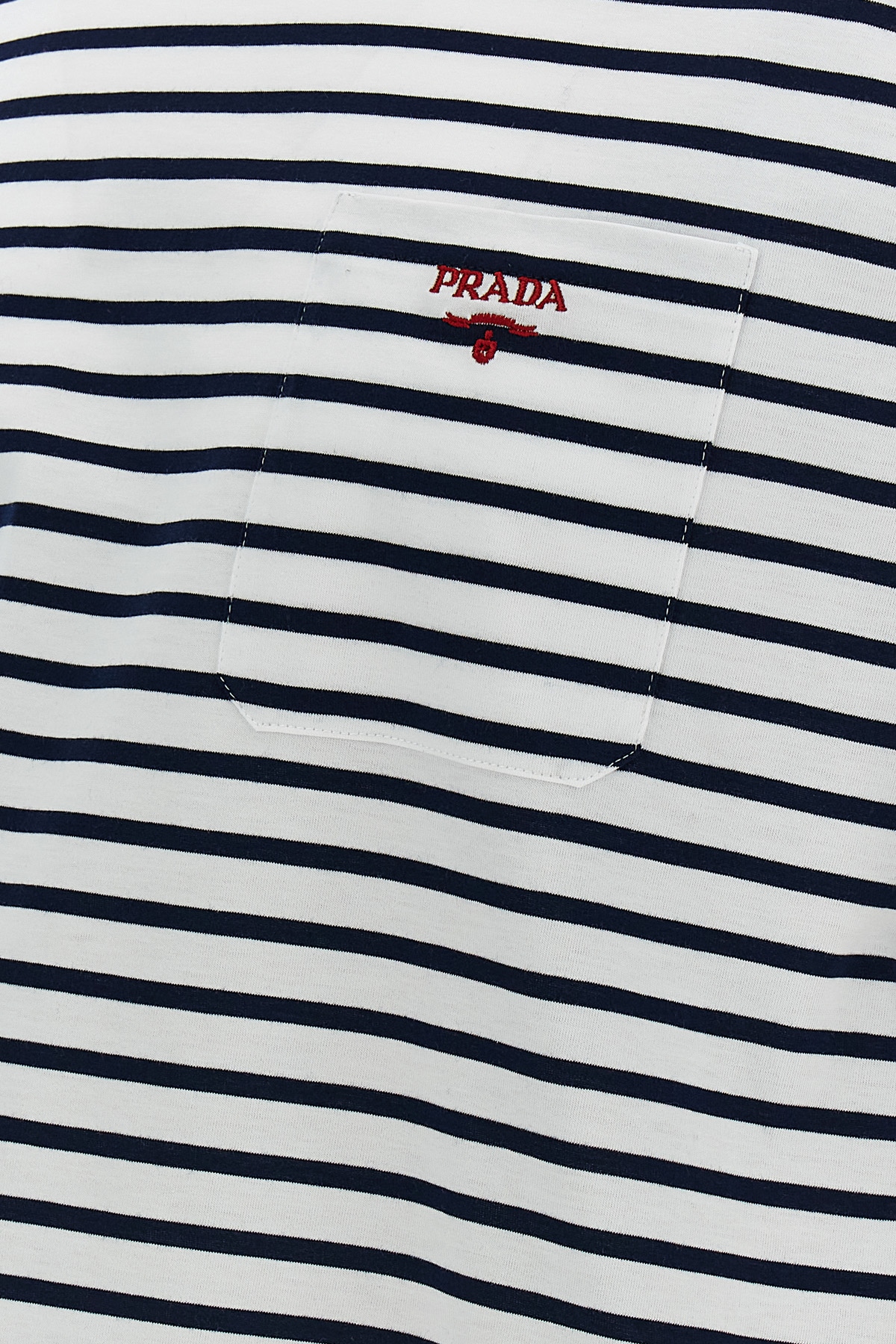 Striped cotton t-shirt, pocket with contrast logo embroidery, crew neck, short sleeves.
