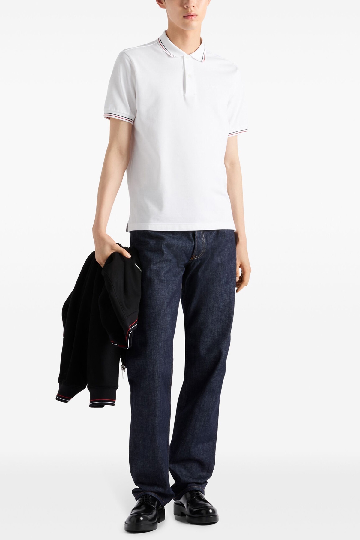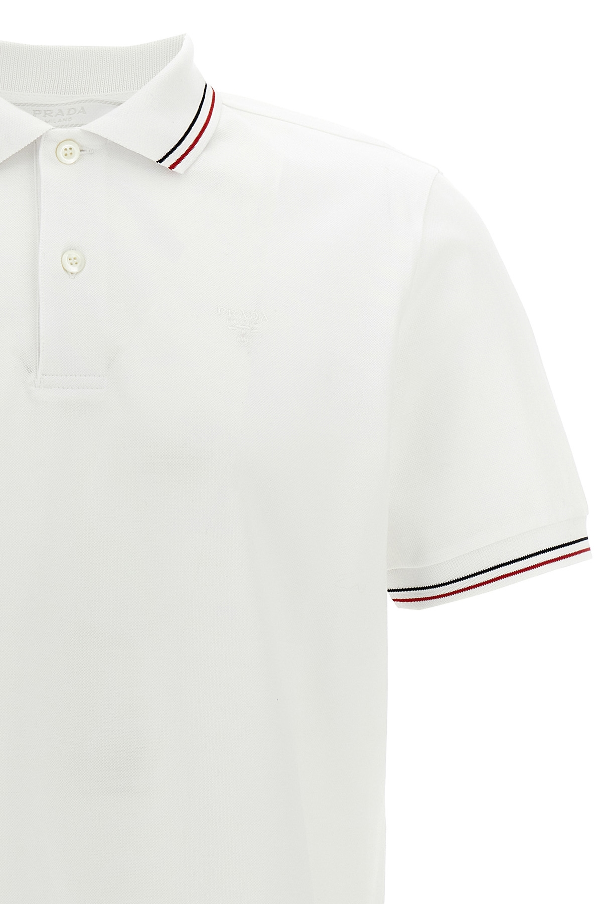 Pique cotton polo shirt with contrasting details, front logo embroidery, collar and buttons, short sleeves, side splits.