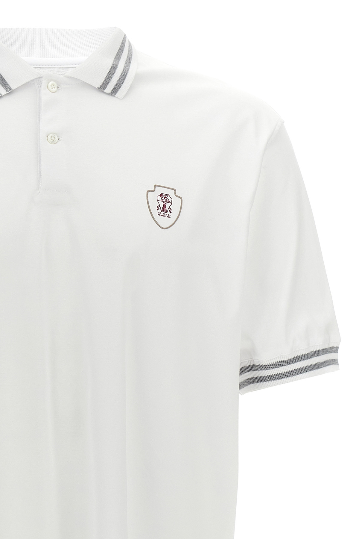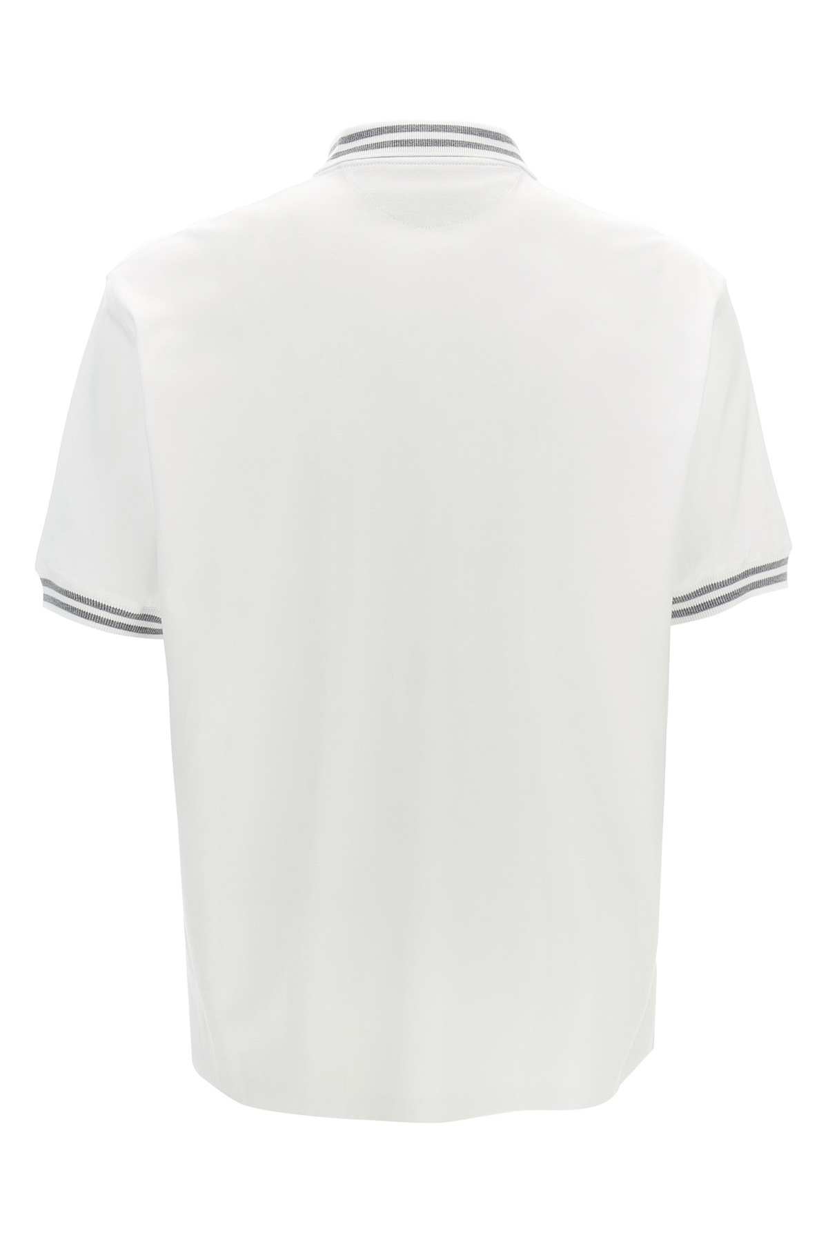 Cotton polo shirt, front logo embroidery, knit collar and cuffs with contrast stripes, buttons, short sleeves