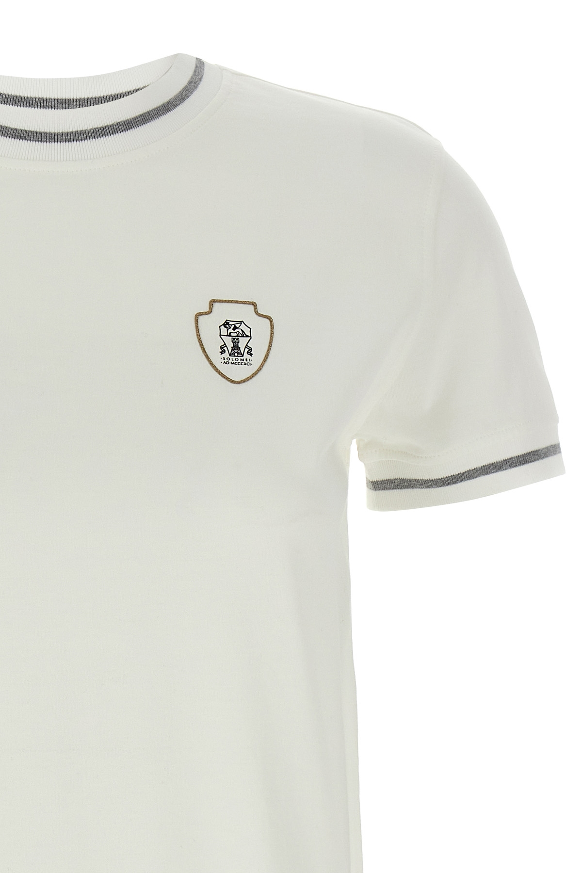Cotton t-shirt with knit details and contrast stripes, crew neck, short sleeves.