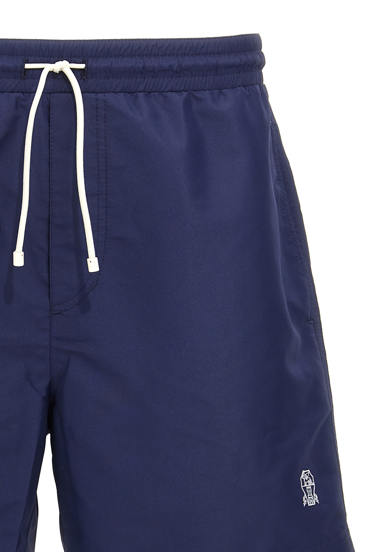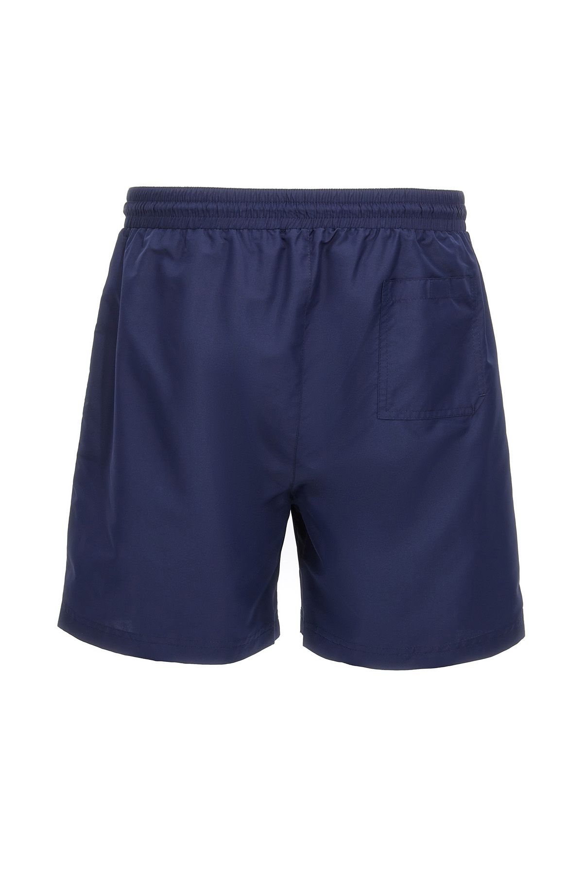 Nylon swimsuit, elastic and adjustable drawstring at the waist, contrast front logo embroidery, pockets, inner mesh briefs.
