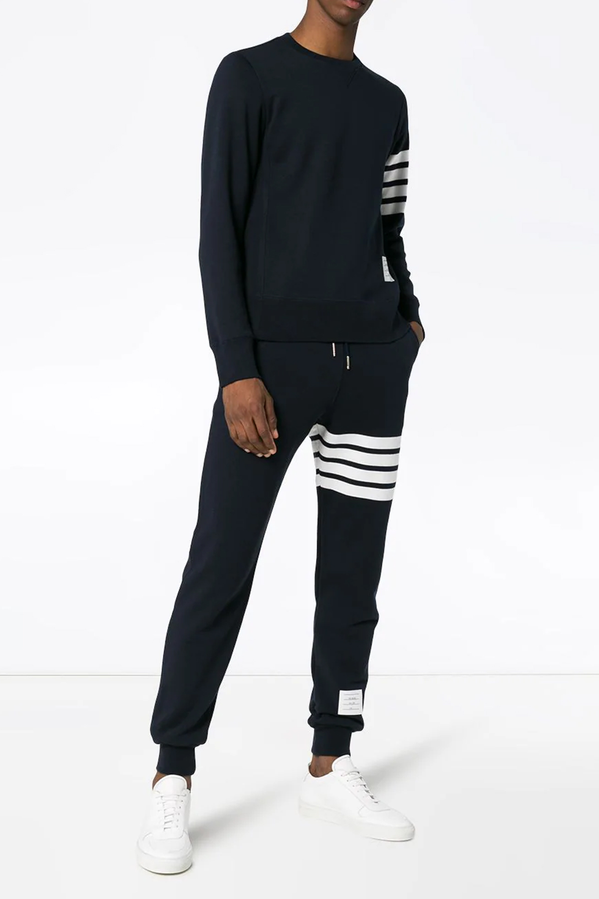'4 bar' cotton joggers featuring an elasticated waist with a drawstring, contrasting bands and cuffed leg bottoms.