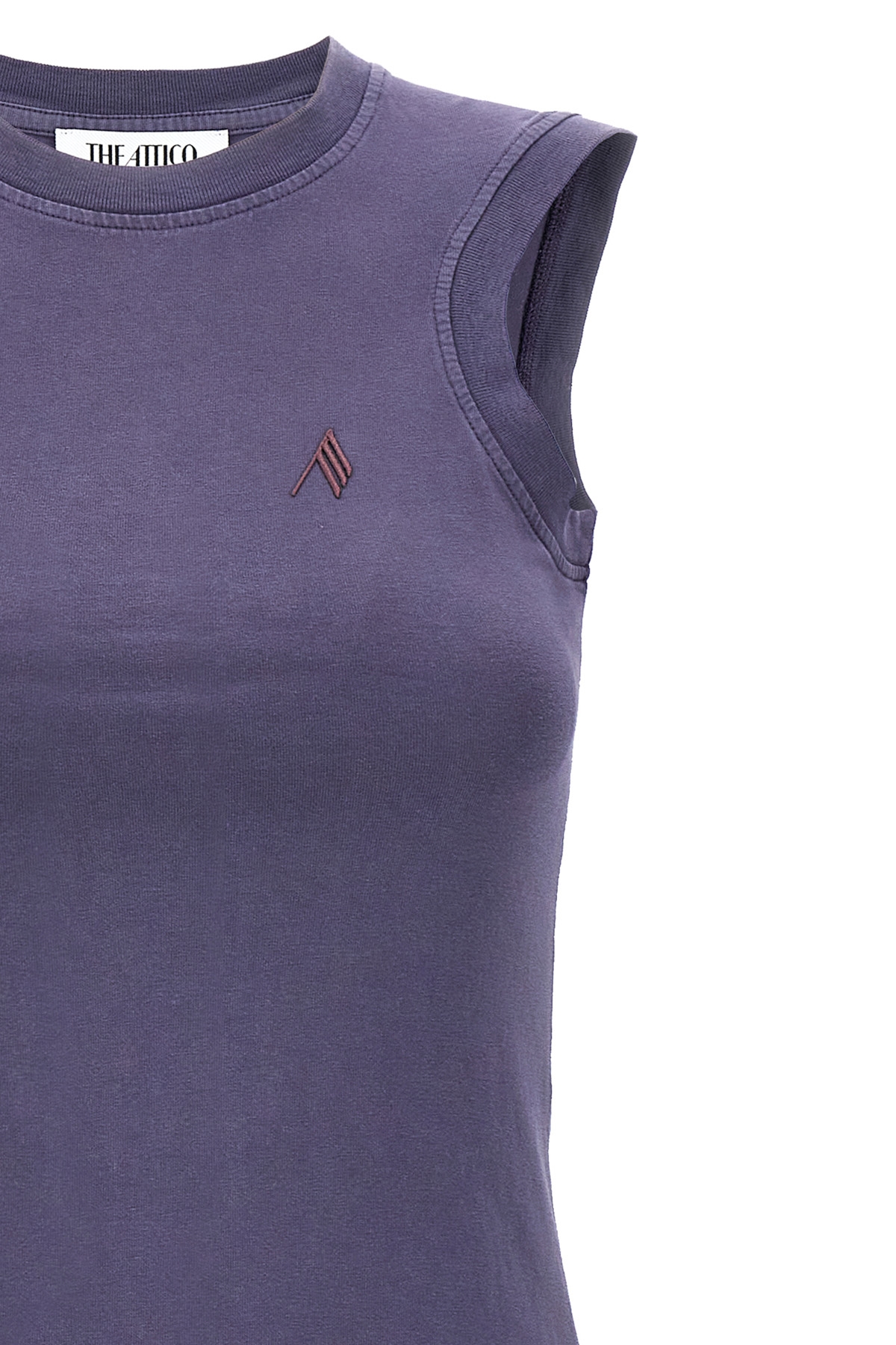'Reese' cotton top with front logo applique, armholes, crew neck, shaped hem.