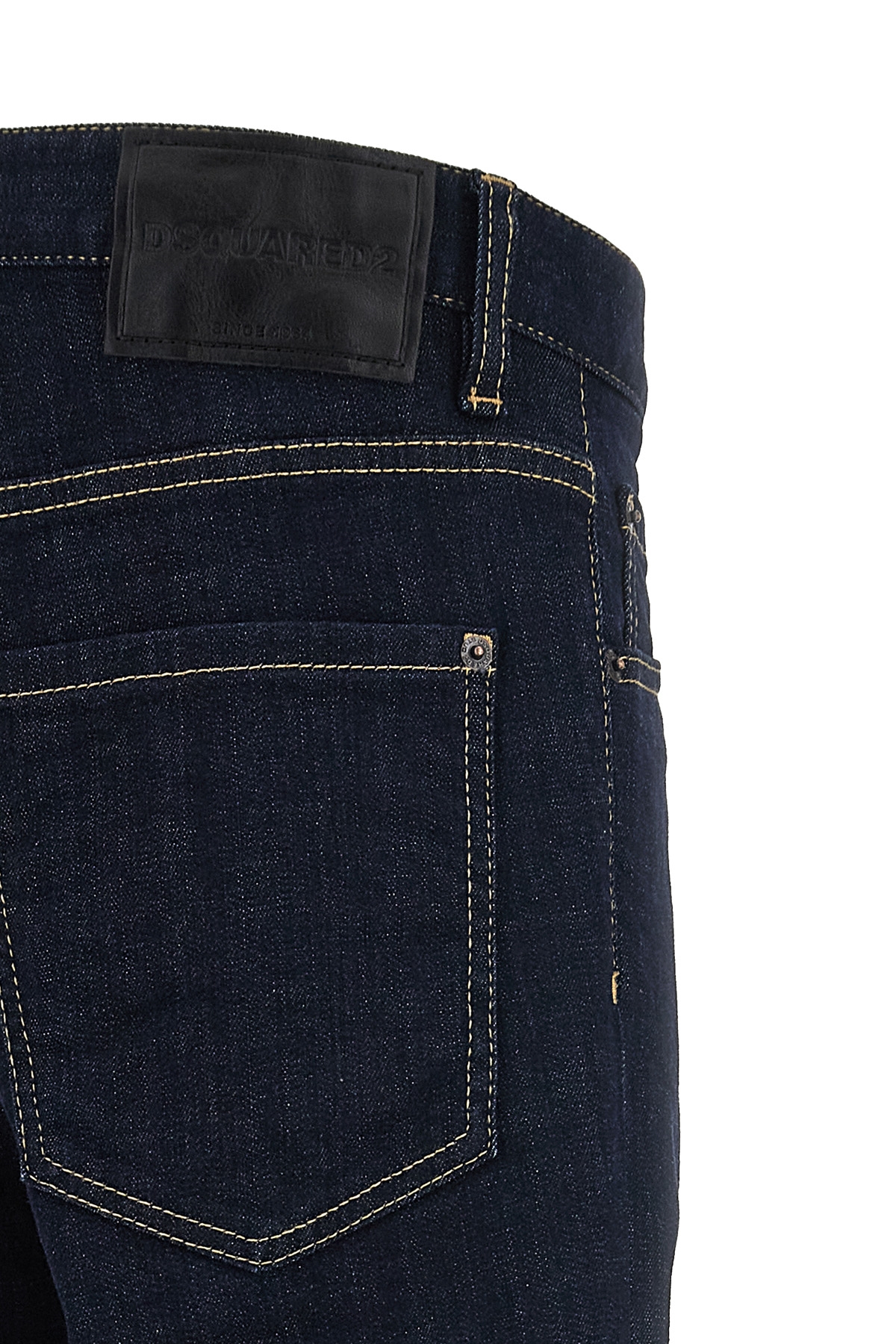 'Cool Guy' cotton denim jeans with button closure, five pockets, leather logo tag.