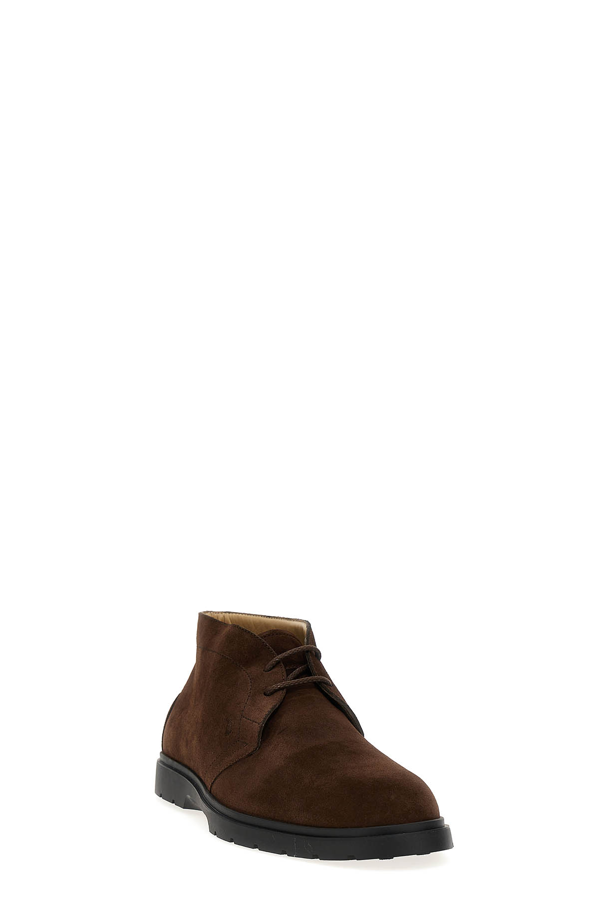 Suede desert boots with lace up and a sole adorned with iconic gommini.
