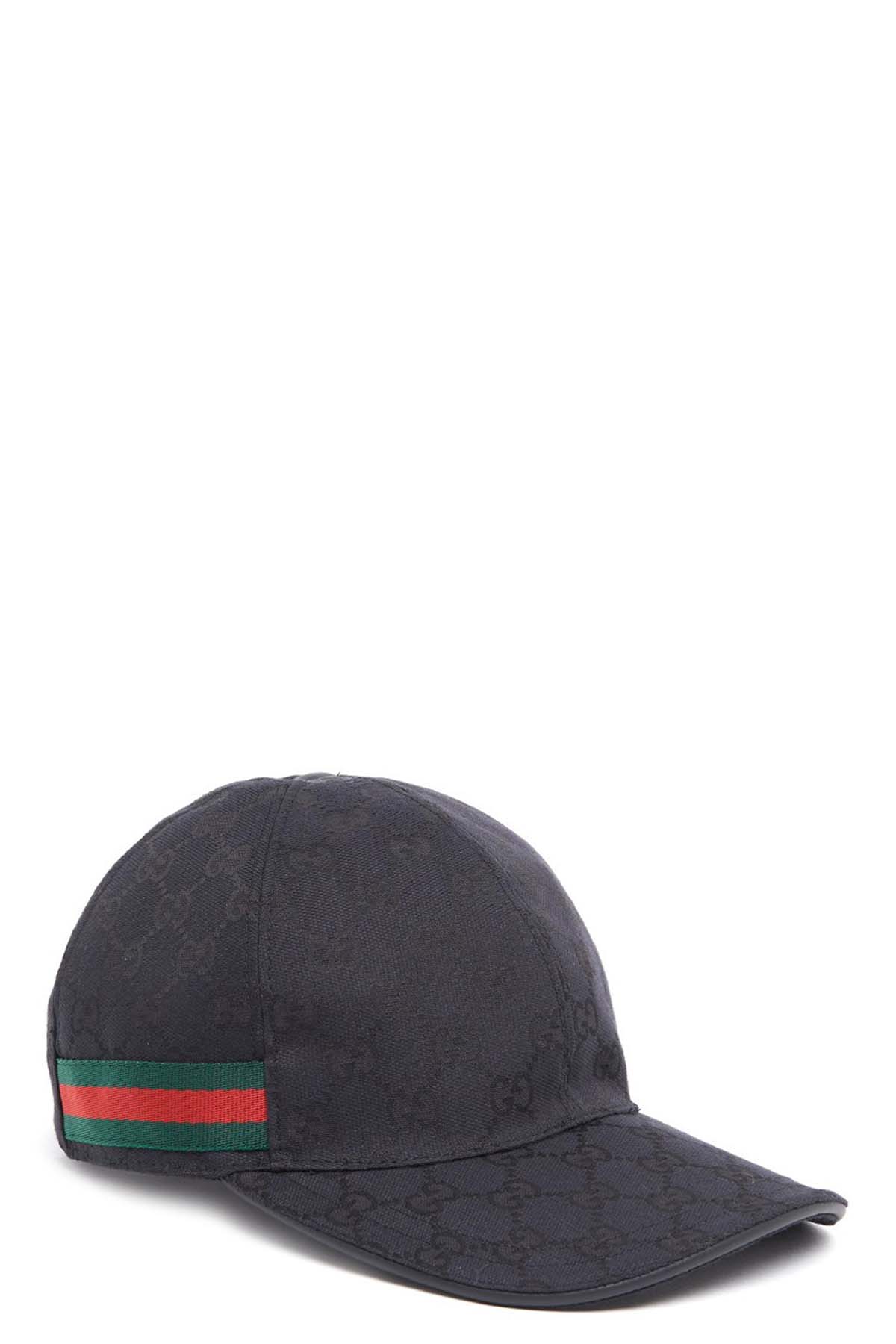 Original GG' fabric cap with all-over logo and 'Web' band, leather details, back strap with velcro closure.