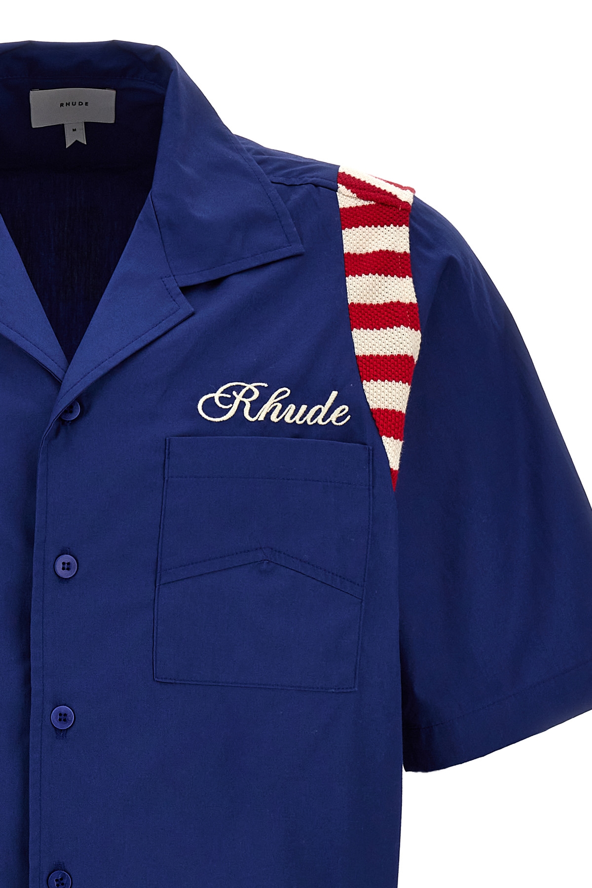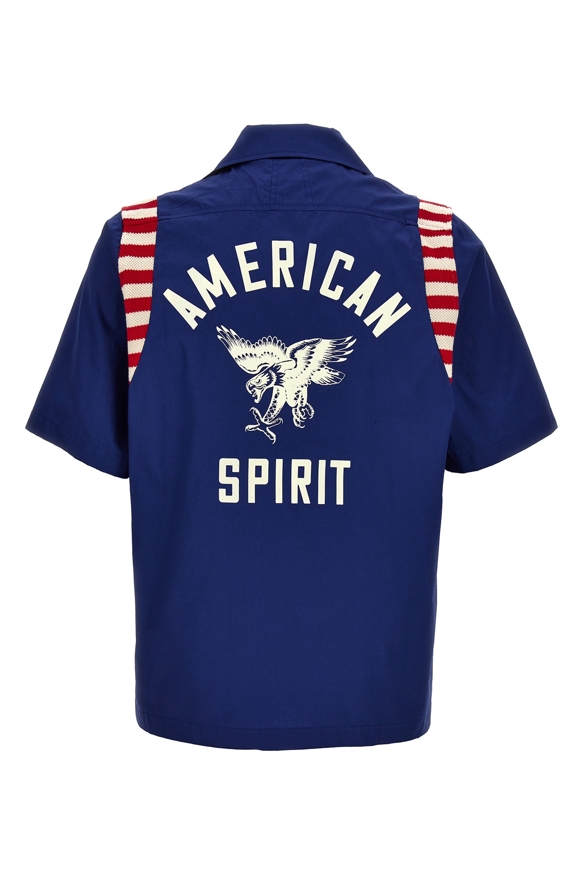 'American Spirit' cotton shirt with front logo embroidery, breast pocket, contrast knit inserts, back print, button closure, short sleeves.
