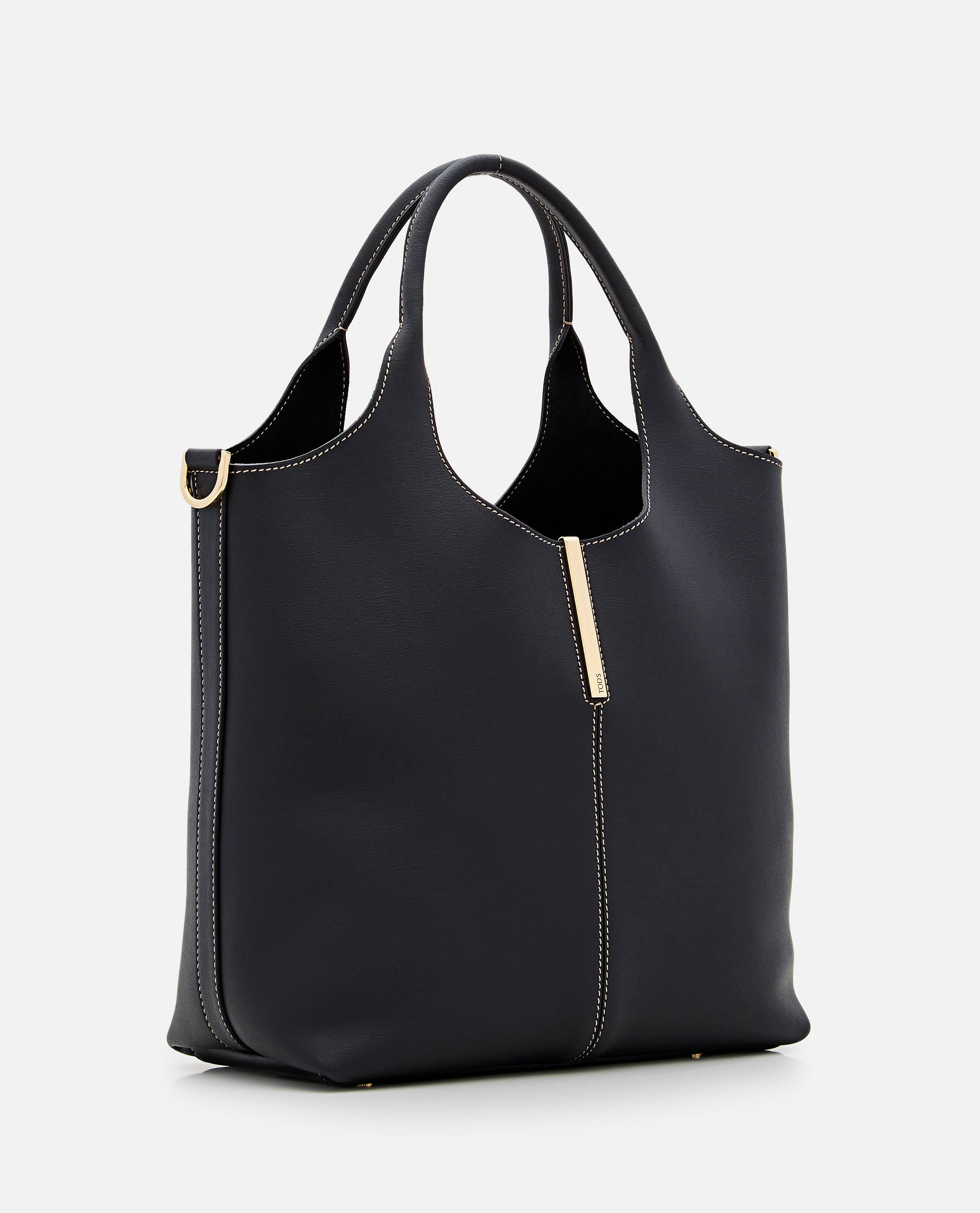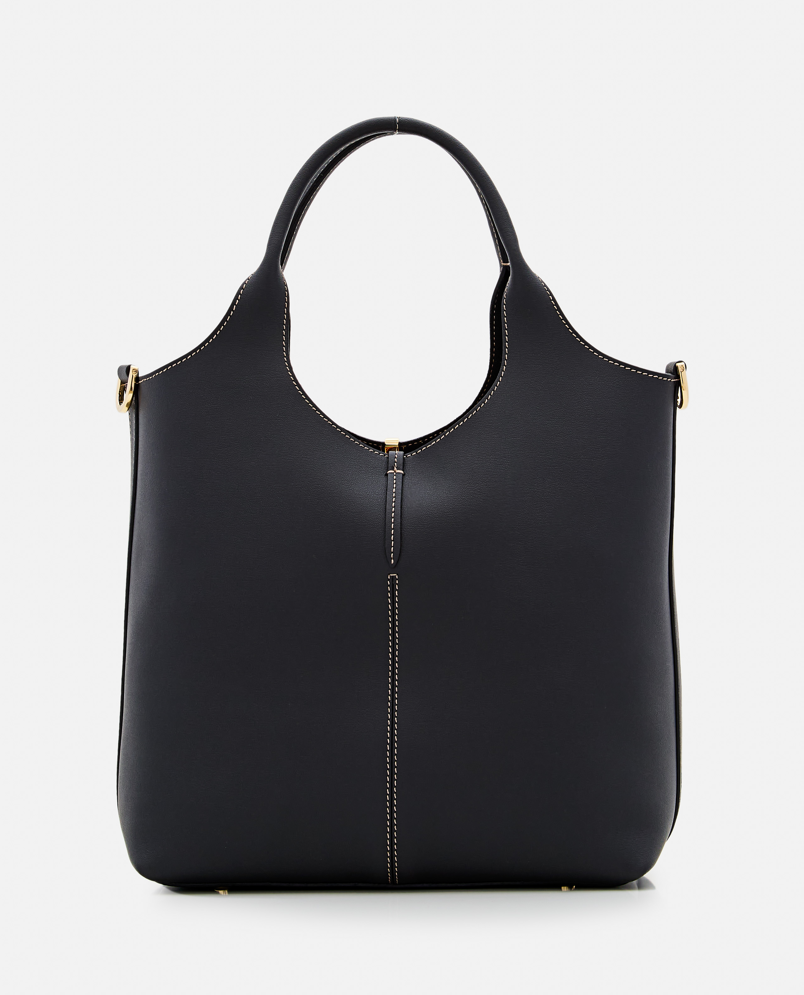 Calfskin leatherRemovable shoulder strapTwo top handlesHook closureMade in ItalyEngraved logo on front metal detail Color: Black