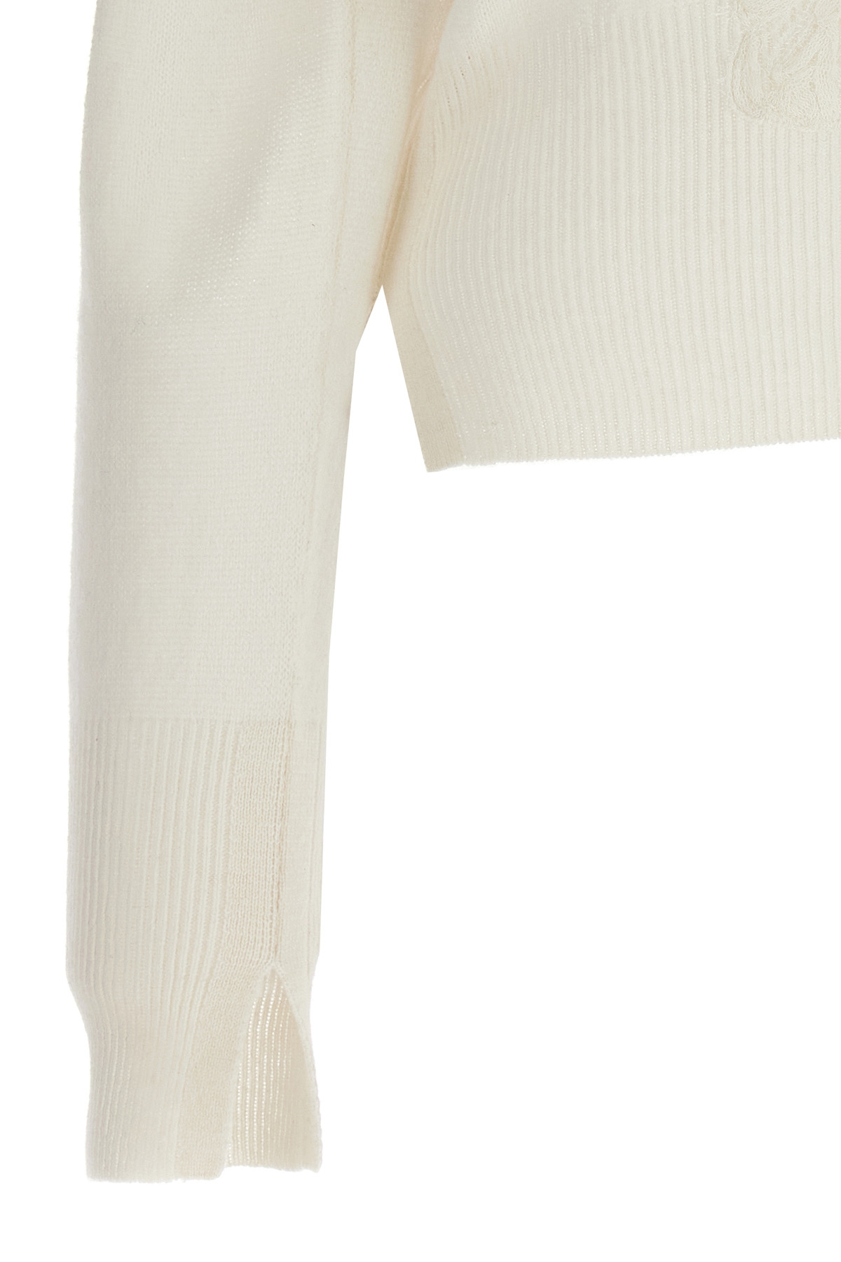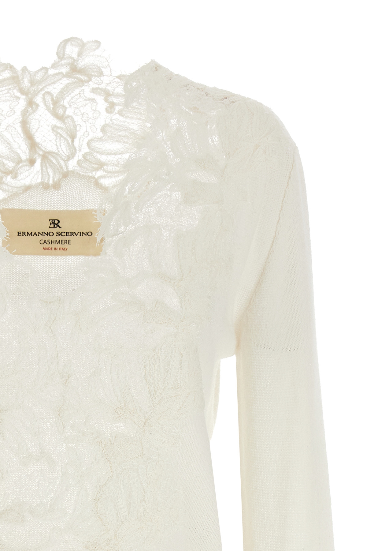 Cashmere sweater with V-neck and lace insert, long cuffed sleeves.