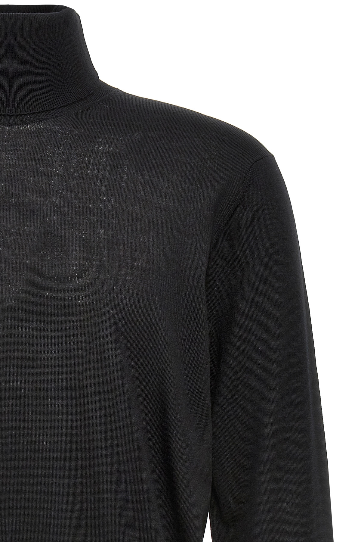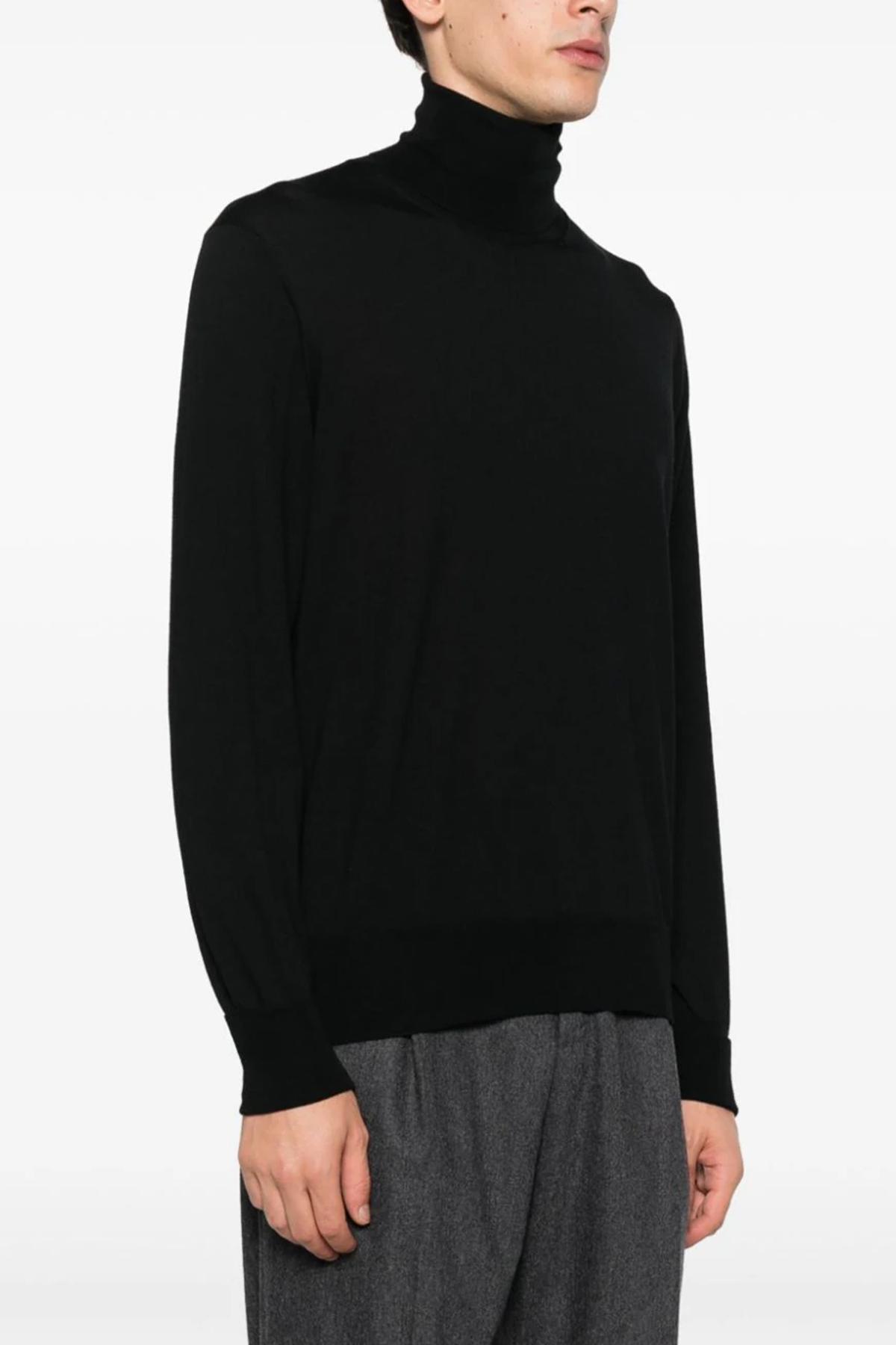 Merino wool turtleneck sweater with high neck, long sleeves with turned-up cuffs.