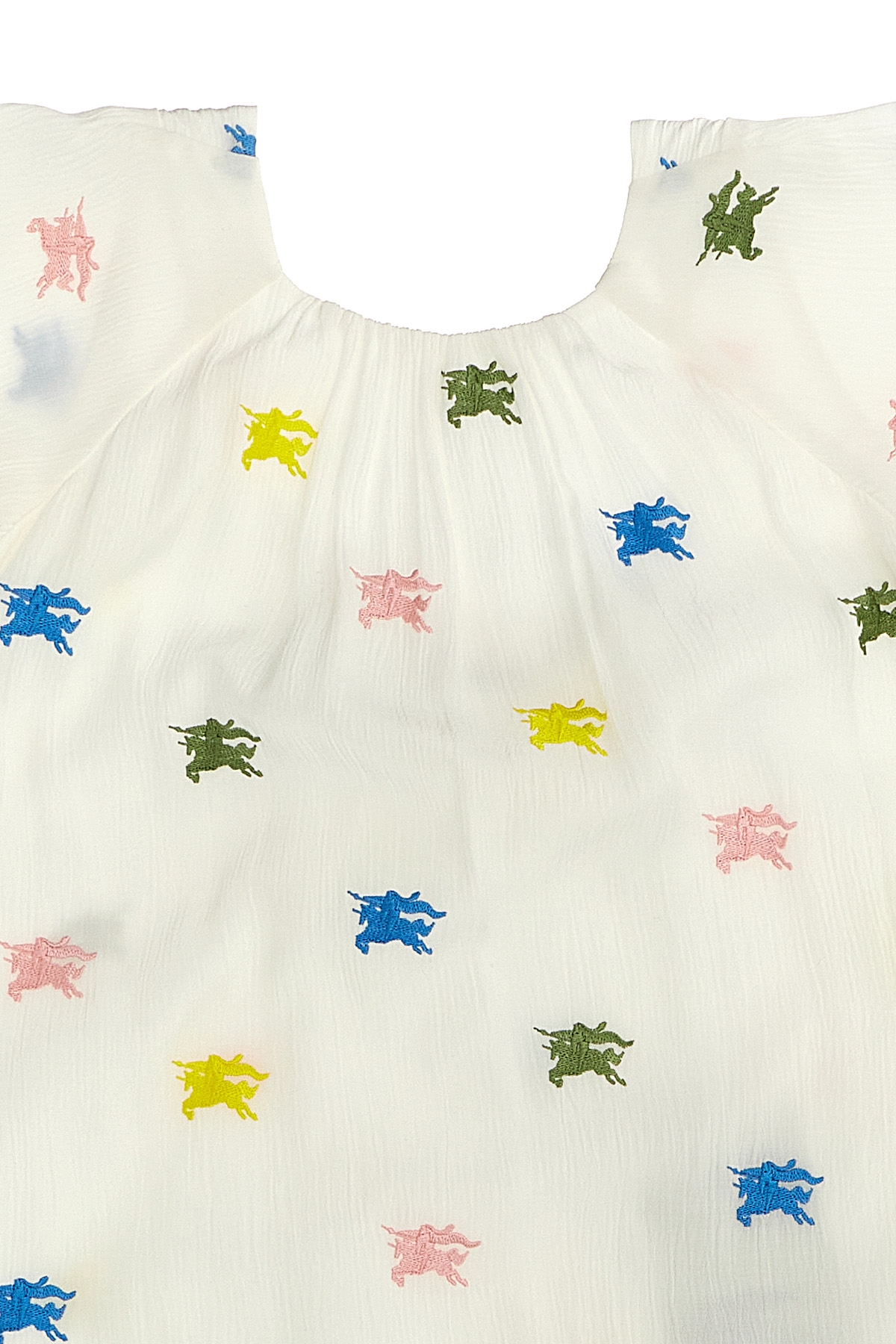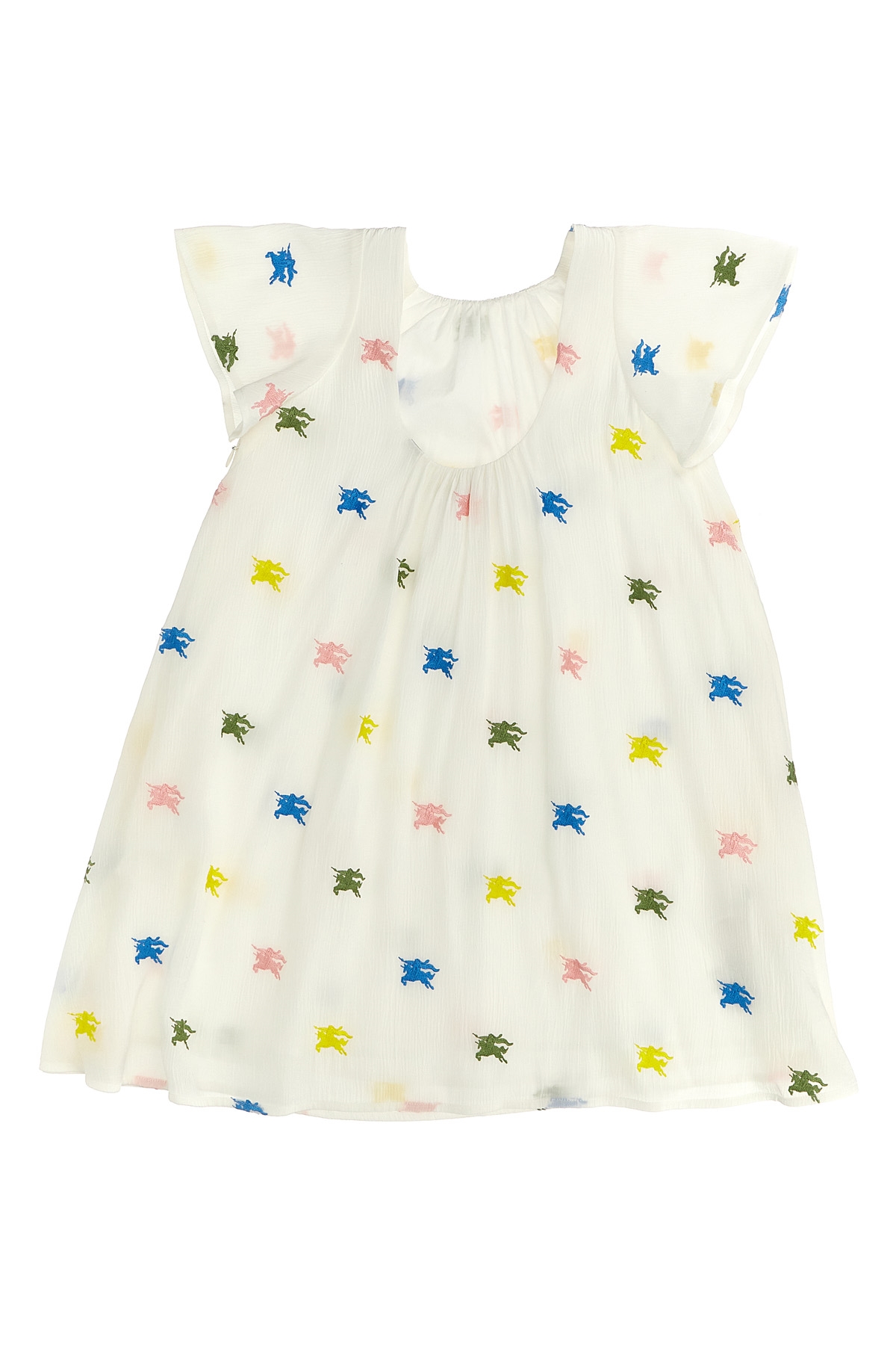 KIDS 'Danalee' viscose dress with all-over logo embroidery, scoop neck at the back, inner petticoat, short ruffle sleeves.
