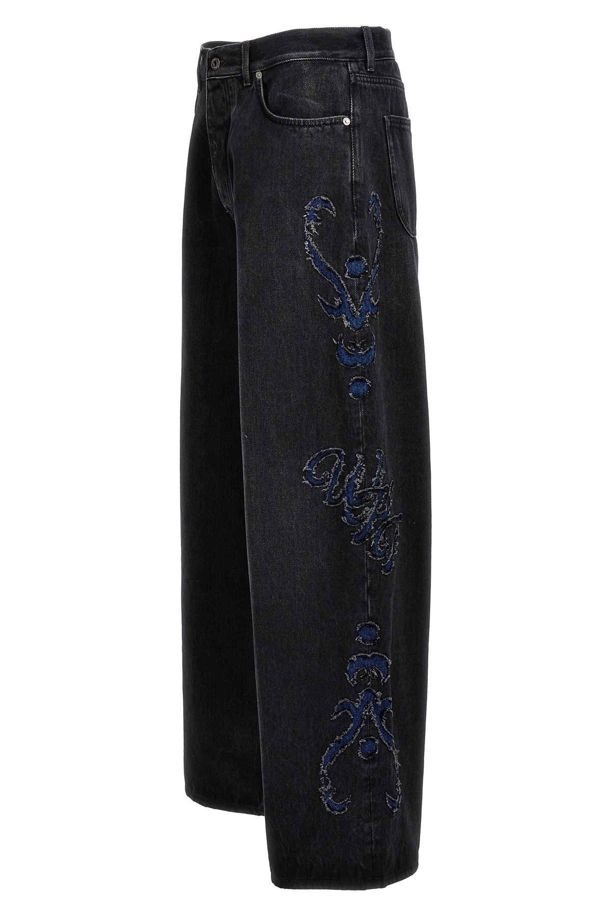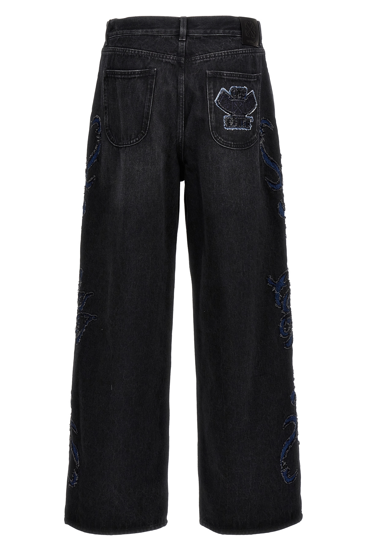 'Nalover super baggy' denim jeans, very wide leg with side logo detail, high waist and button closure.