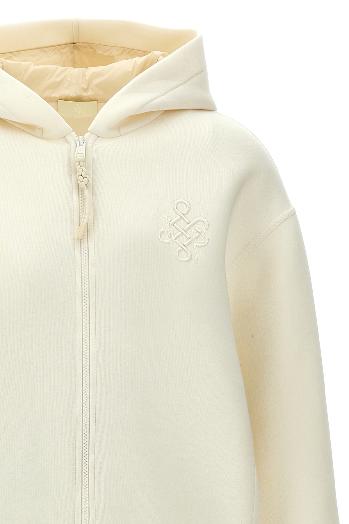 Cotton and neoprene blend hoodie, front embroidery and 'Anno Del Serpente' logo patch on the sleeve, zip closure, pockets, long cuffed sleeves.