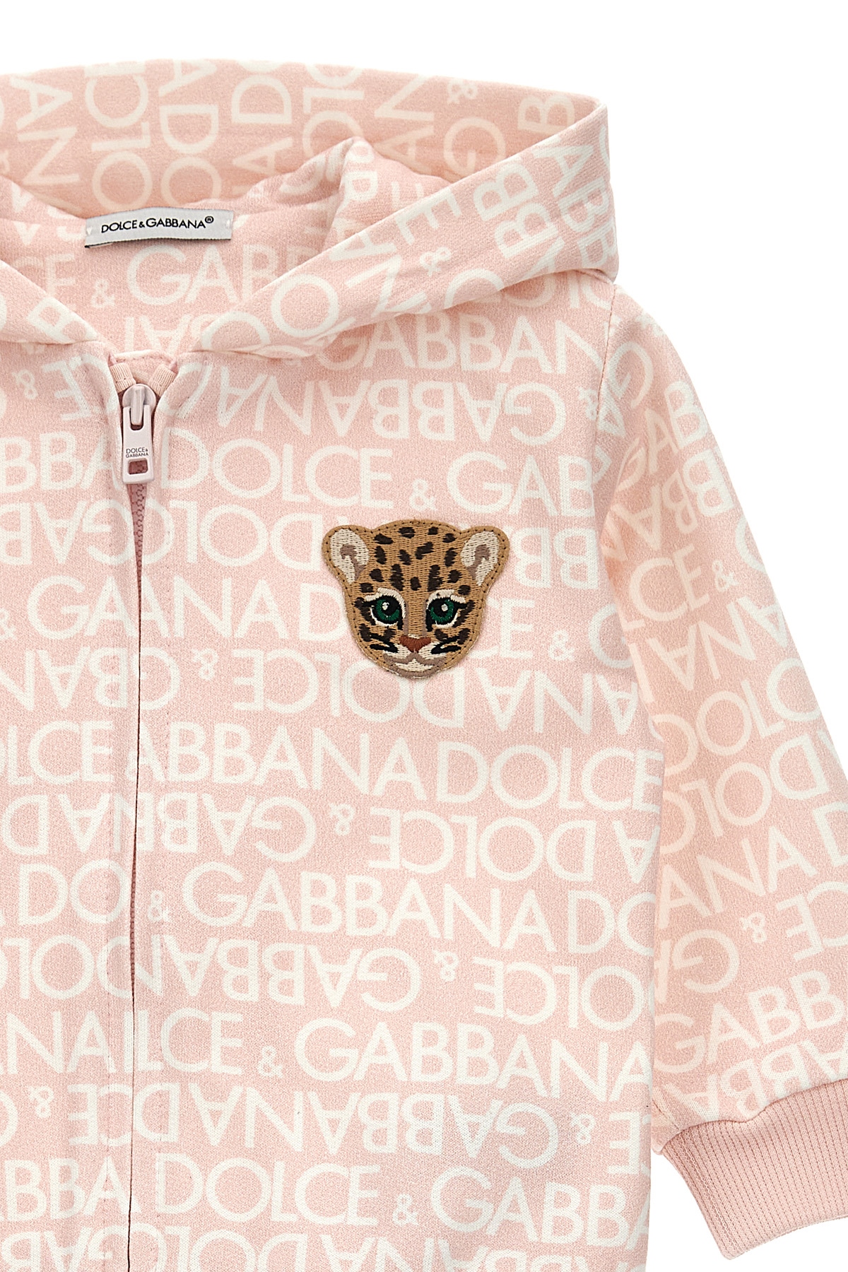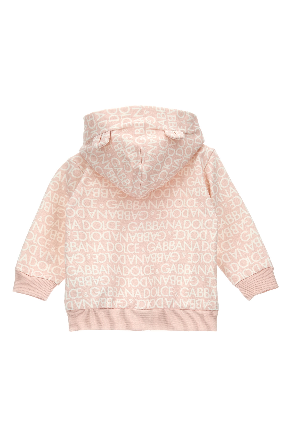 KIDS 'Logomania' cotton hoodie with all-over logo print, front patch, zip closure, long cuffed sleeves.