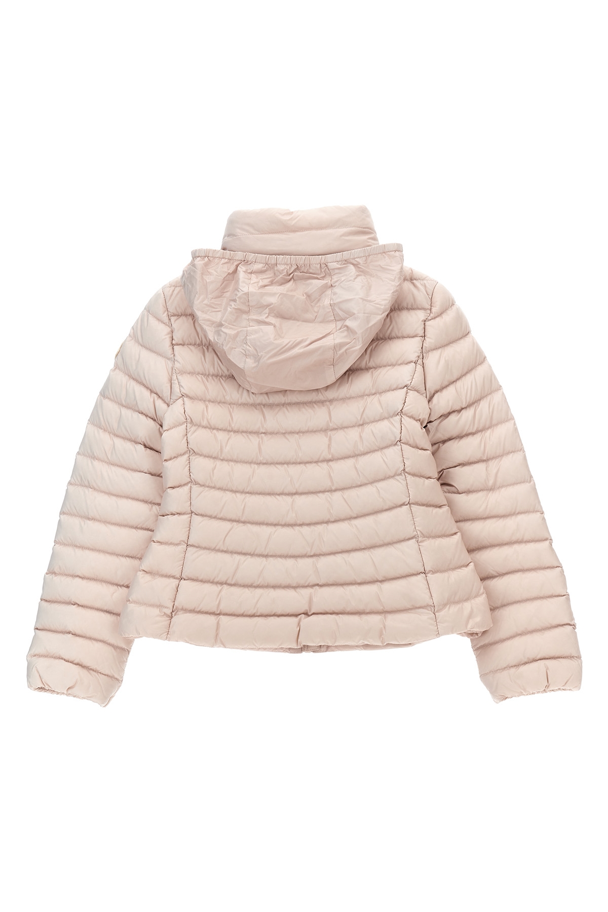 KIDS 'Ige' down jacket in recycled saison longue with goose down padding, standing collar with closable hood, zip closure, pockets, long sleeves with logo patch. SUSTAINABLE: product made with recycled materials.