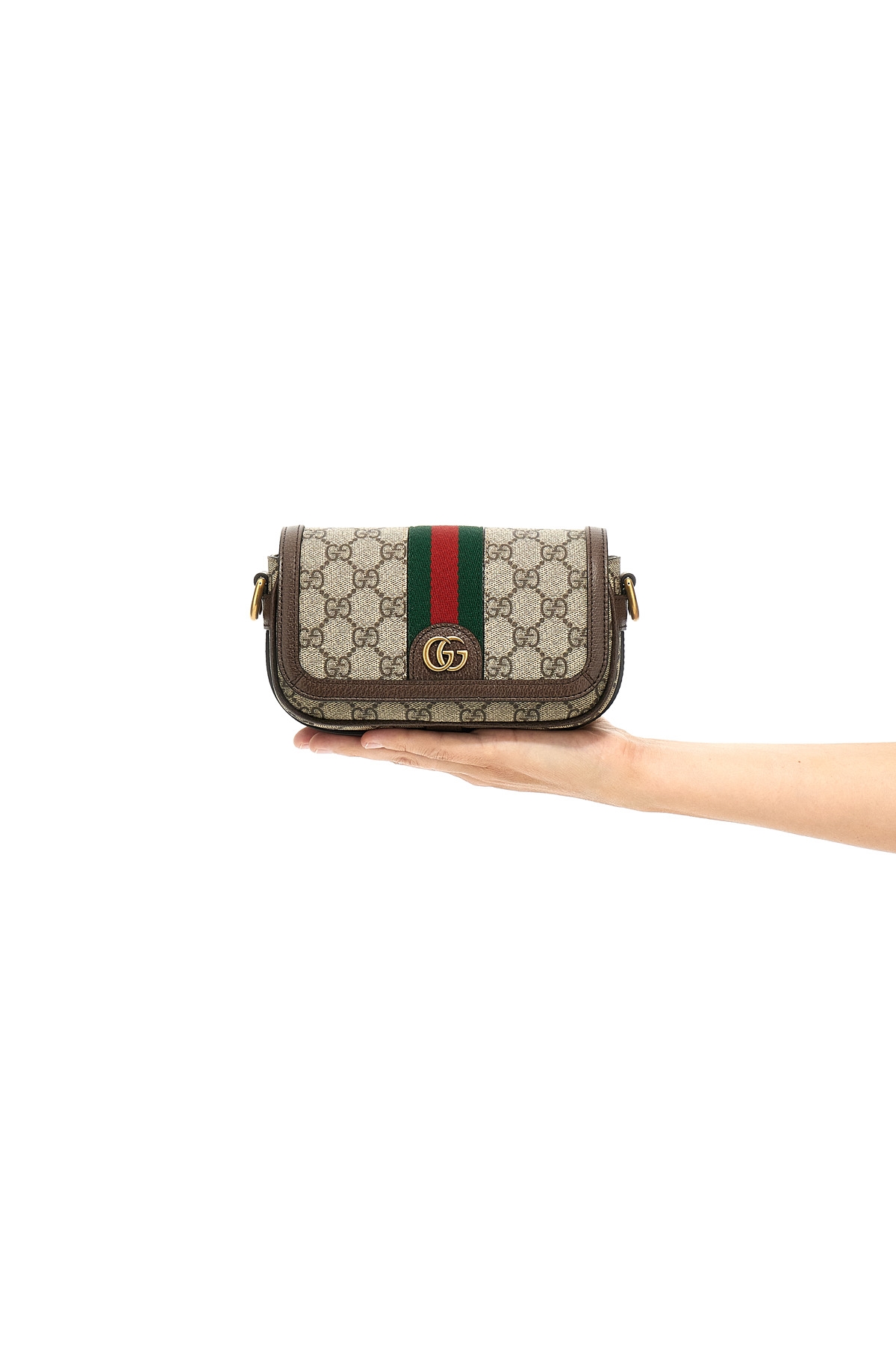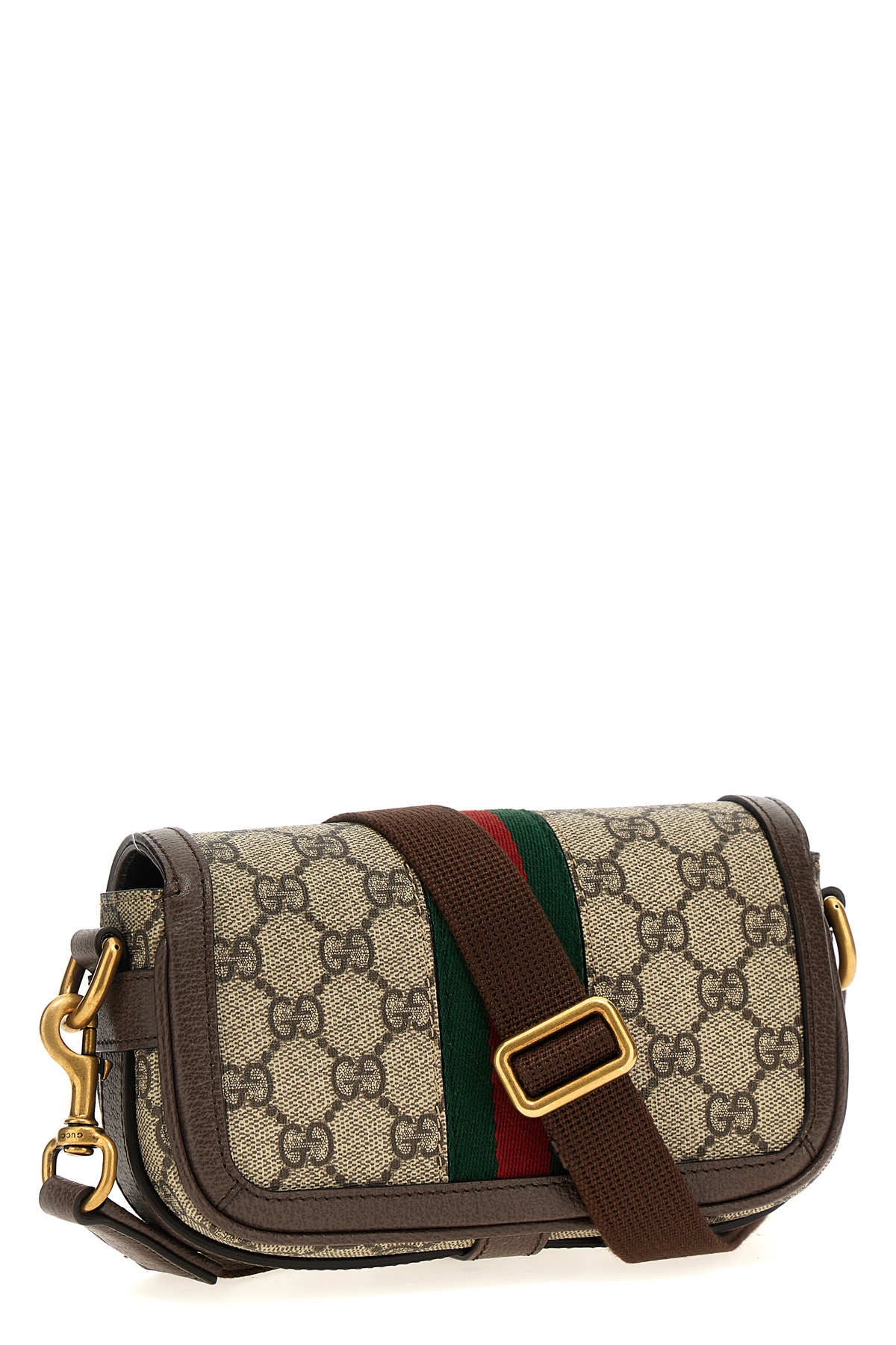 'Ophidia' mini crossbody bag in GG Supreme fabric with leather details, web ribbon and metal logo application, magnetic closure, adjustable and removable shoulder strap.