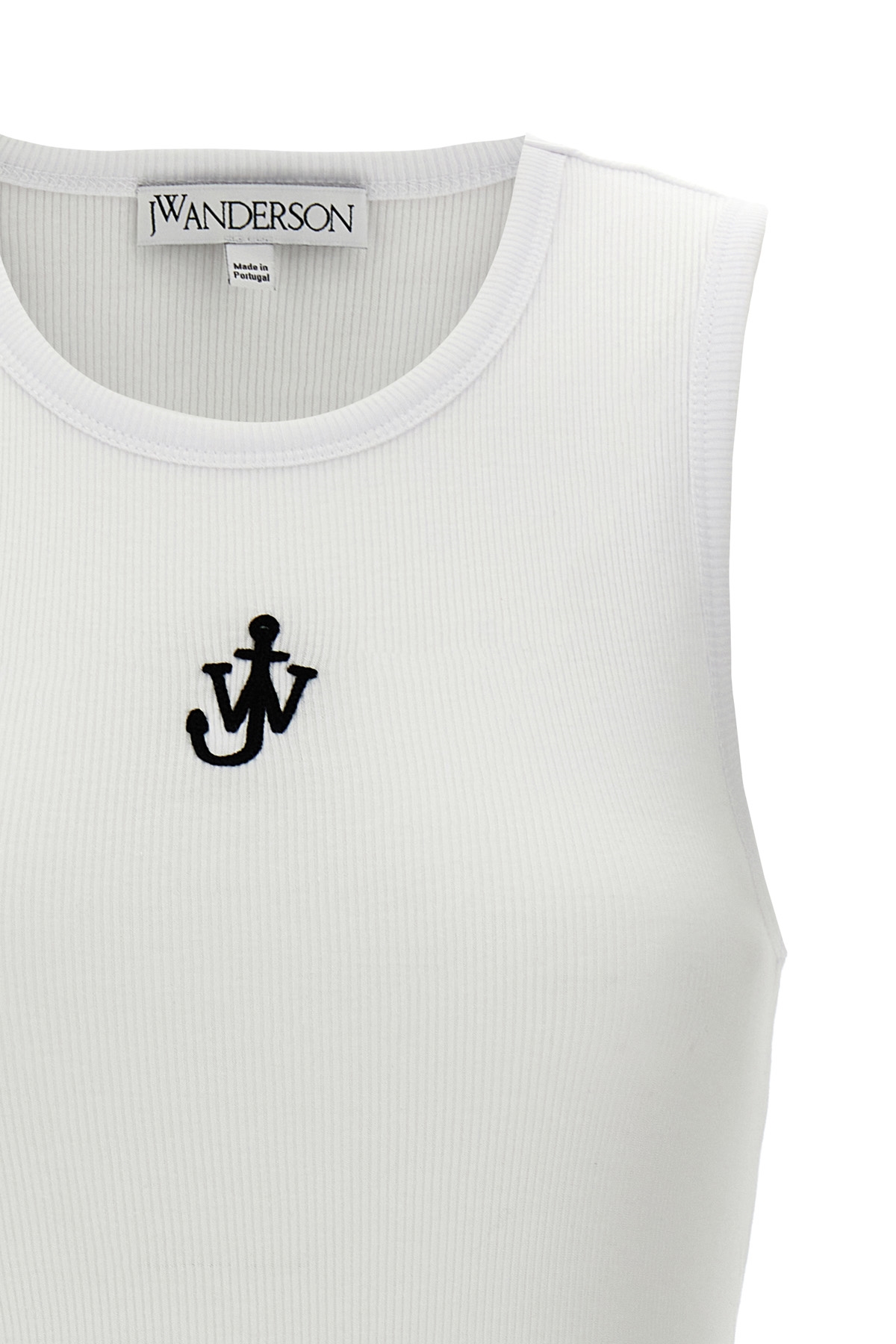 'Anchor embroidery' sleeveless ribbed cotton top with contrast front logo embroidery detail.