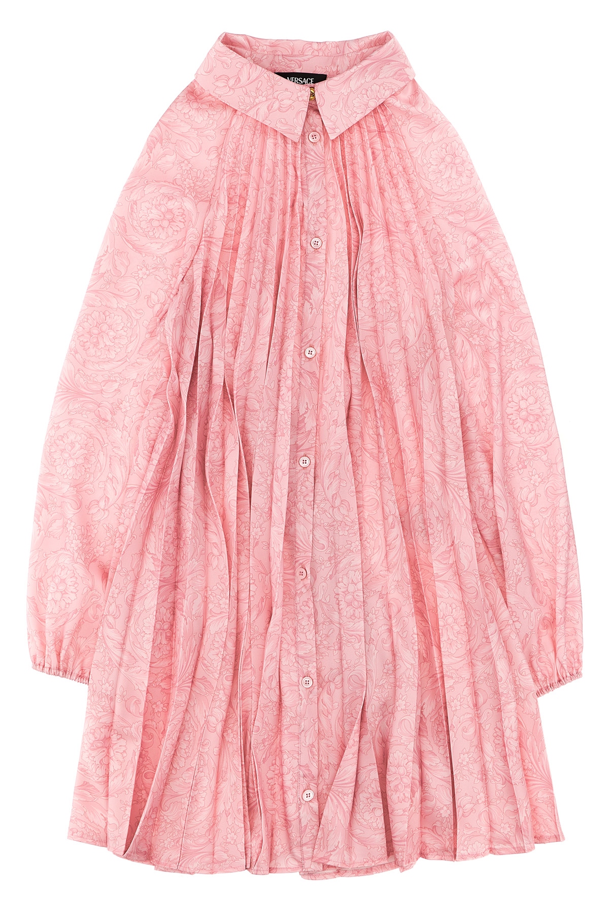 KIDS Dress in satin fabric with baroque print, pleated model.