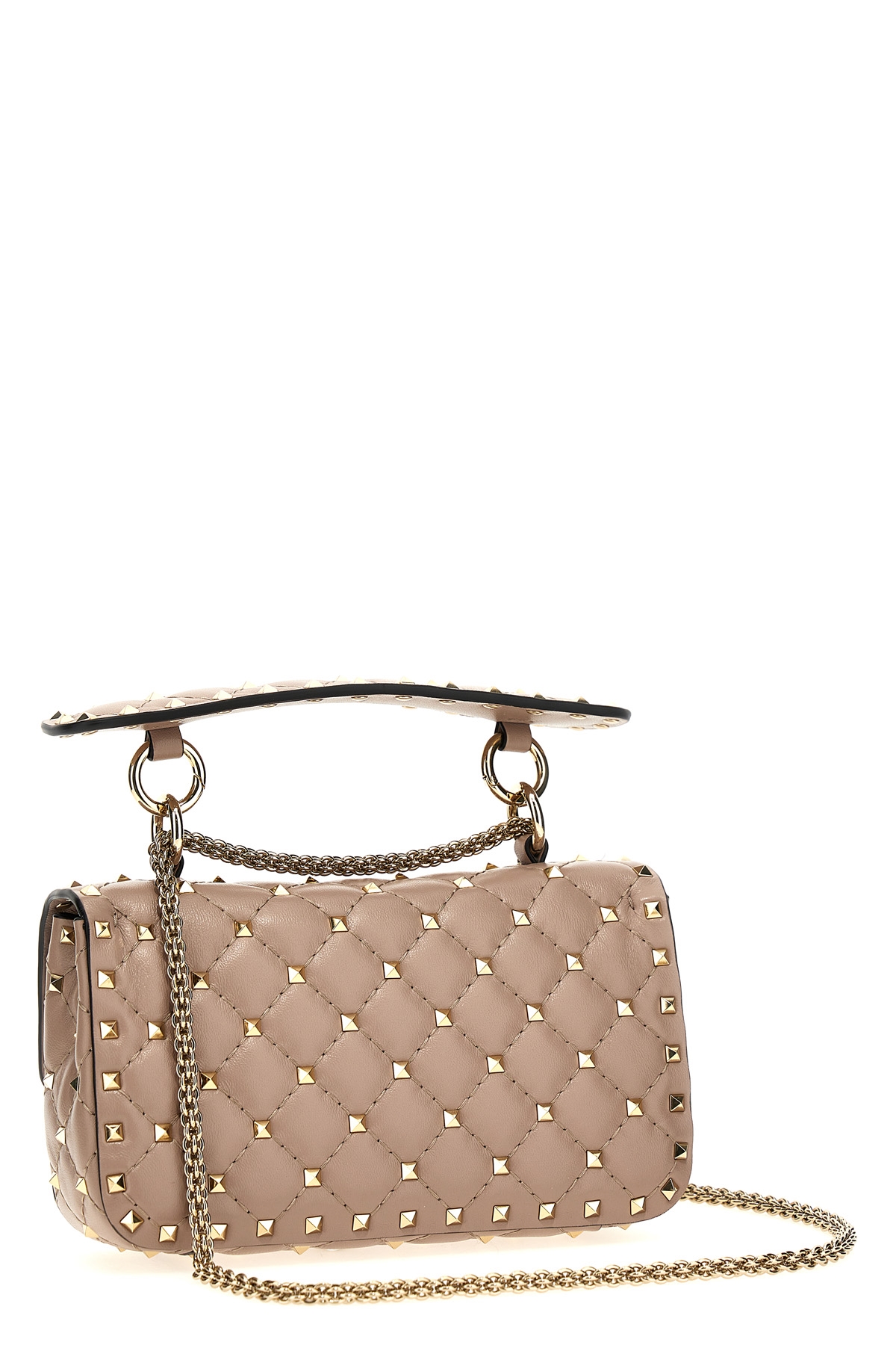 Small 'Rockstud Spike' nappa leather handbag with all-over studs, flap closure with swivel, removable handle, removable chain shoulder strap.