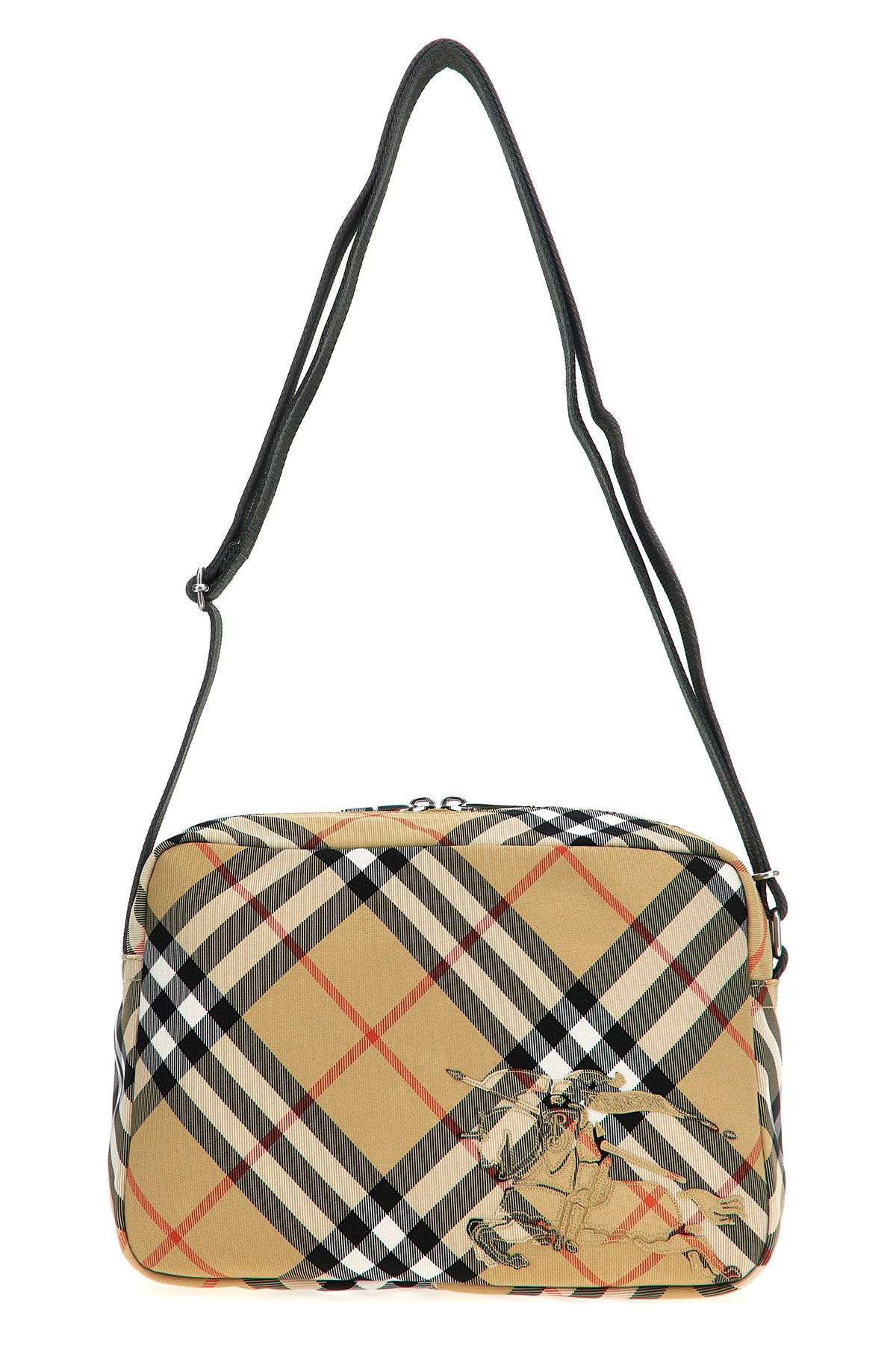 'Check' print fabric shoulder strap, front EKD logo, zip closure, adjustable shoulder strap.