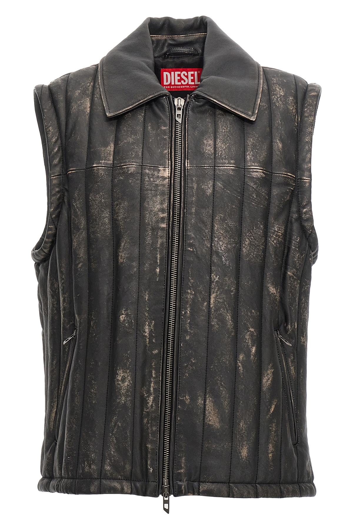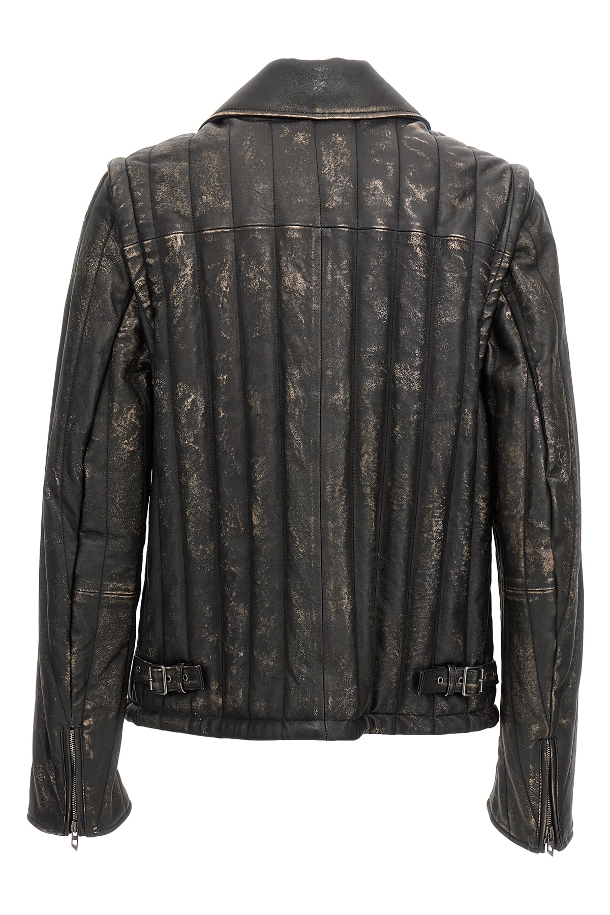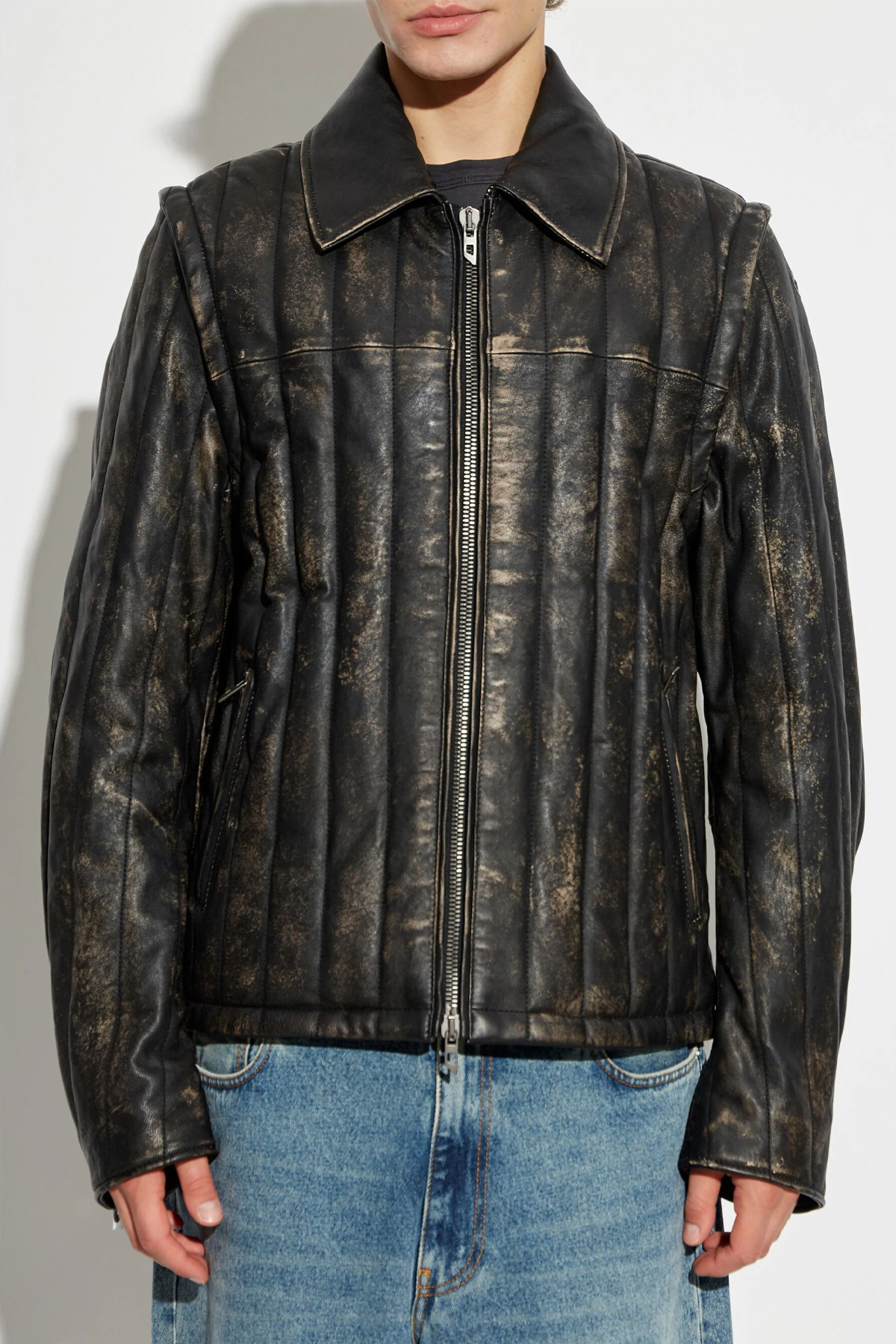 'L-Albert' quilted vintage-effect leather jacket, zip closure, pockets, long sleeves with zip and removable detail, adjustable straps at the waist.
