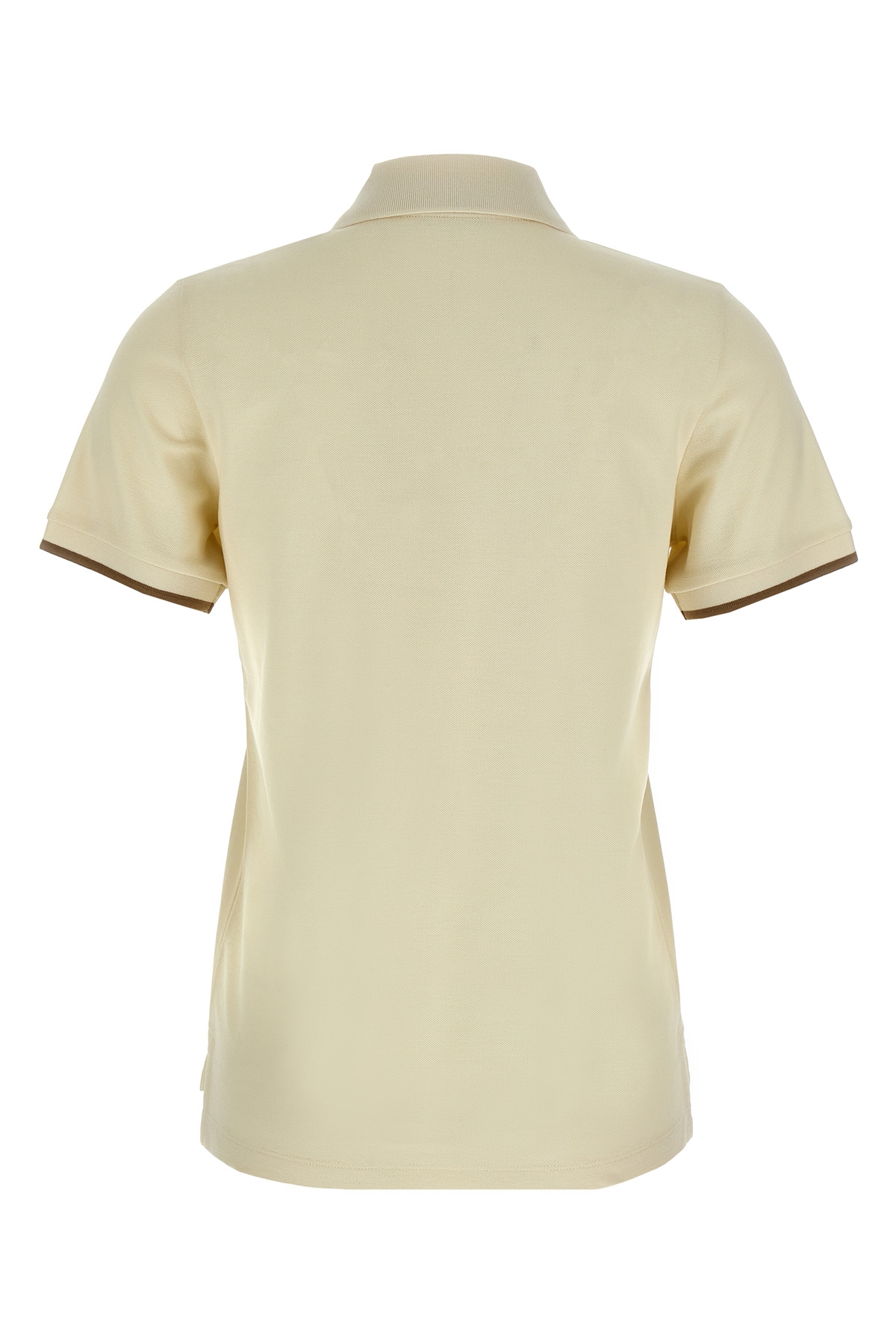 Cotton pique polo shirt, front logo patch, collar and snap buttons, short sleeves with contrast details, side splits, and asymmetrical hem.