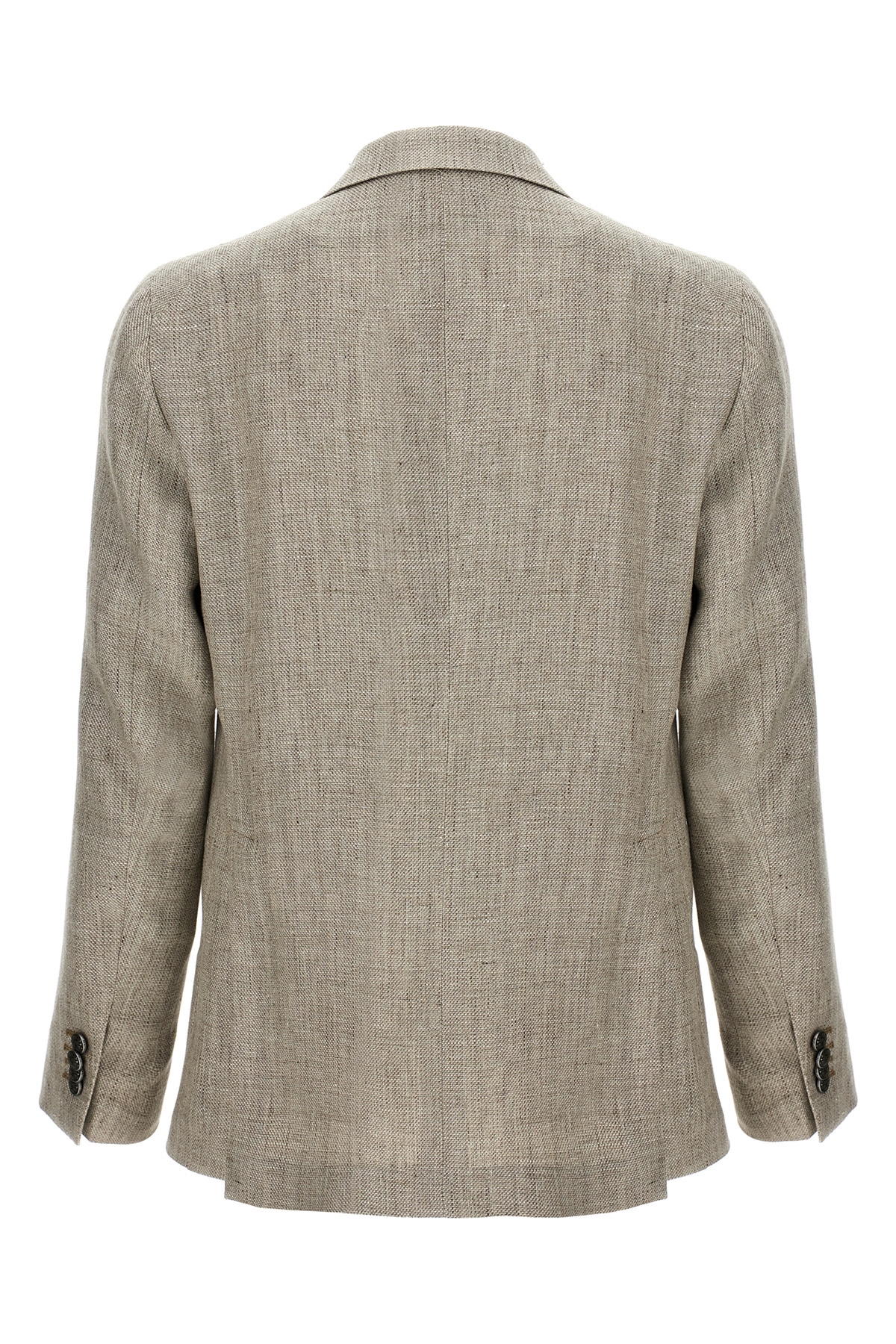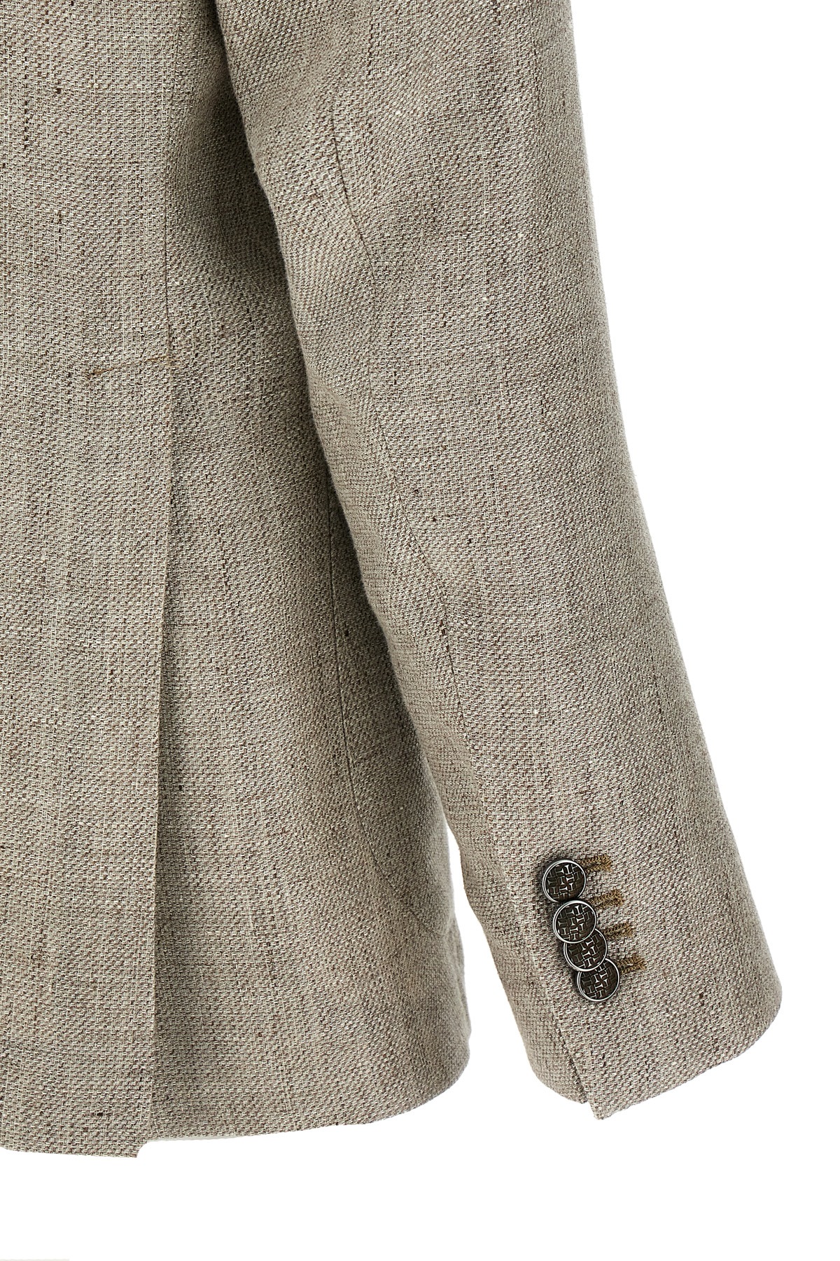 'Montecarlo' single-breasted blazer in linen and virgin wool with button closure, pockets, unlined, peak lapels, removable pin, long sleeves, back vents.