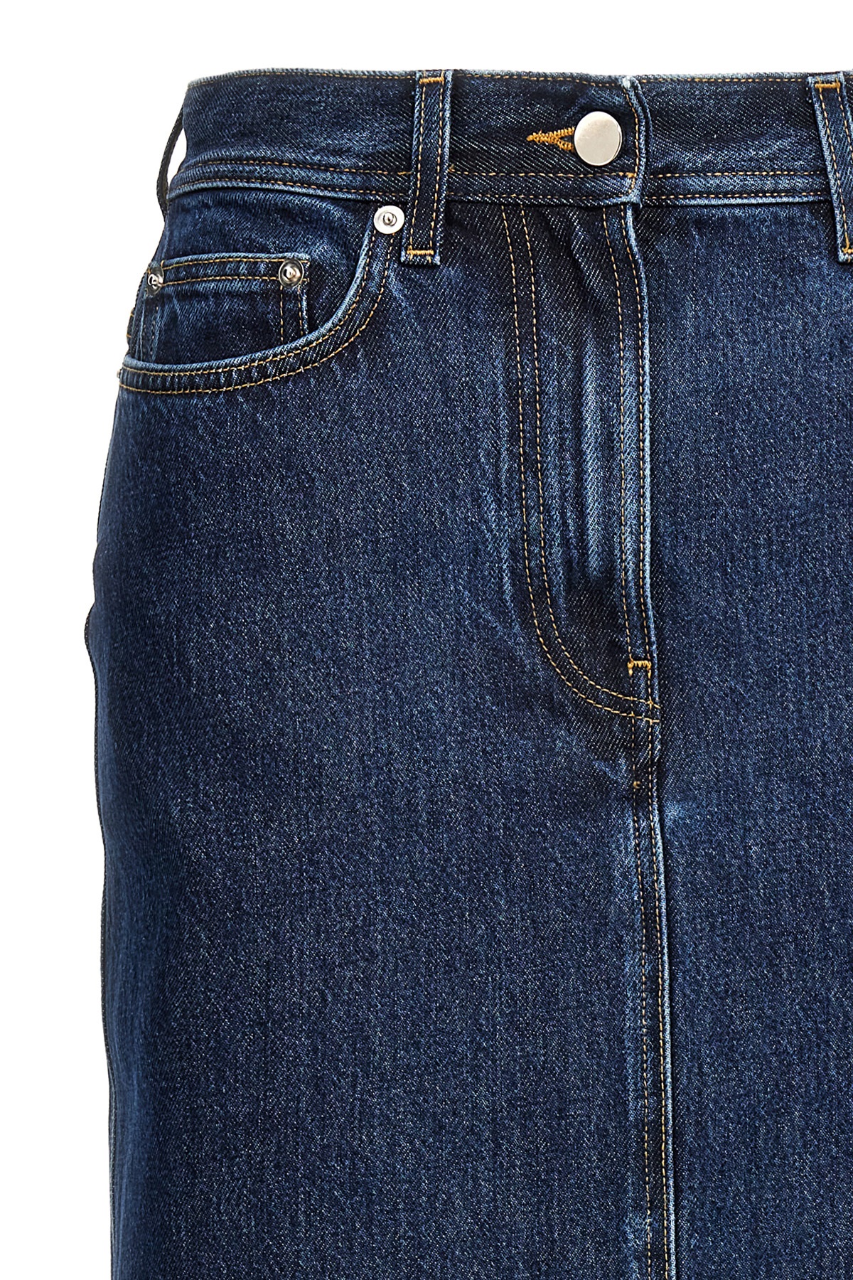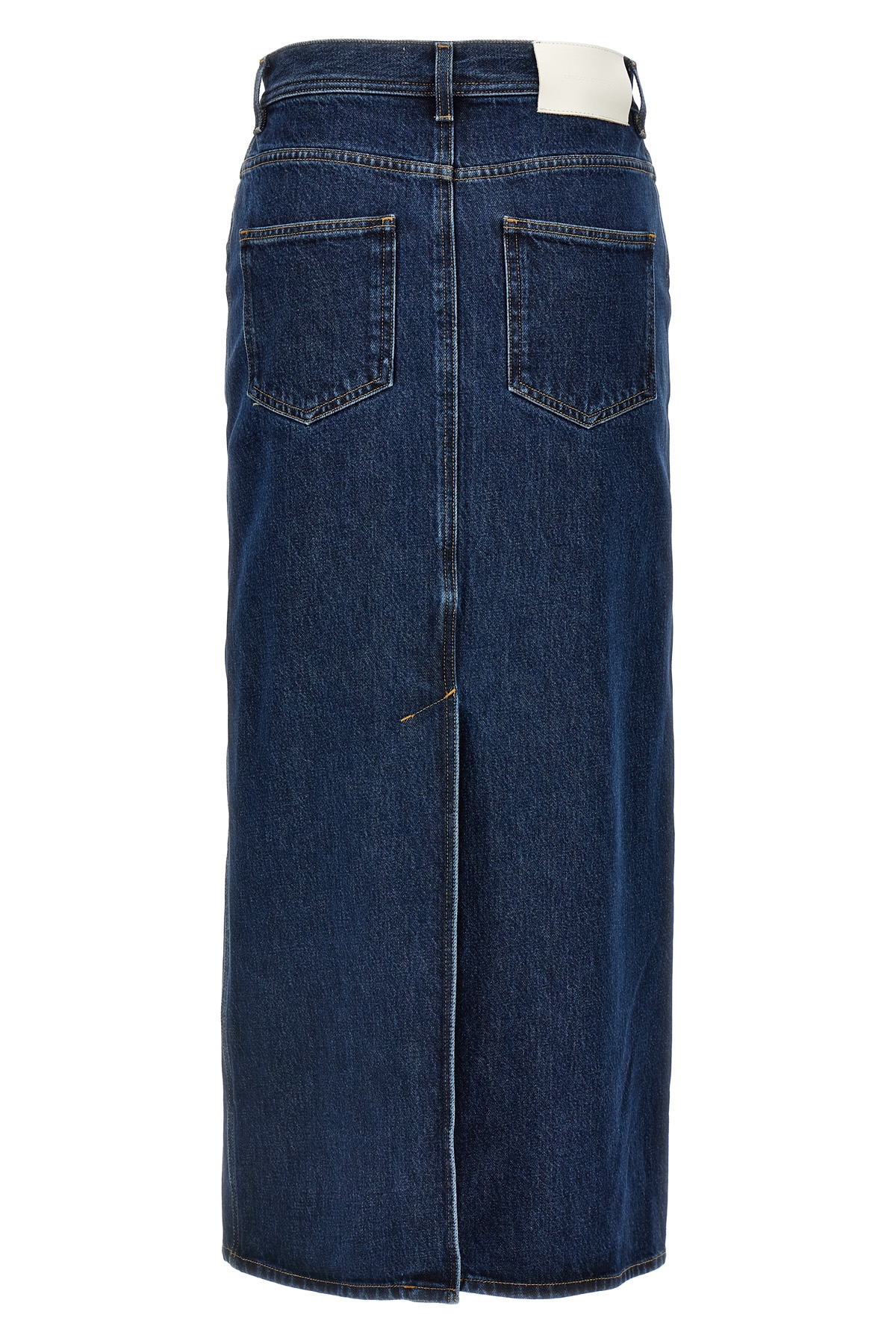 'Rona' cotton denim longuette skirt with front and back split, five pockets, zip and button closure, back leather logo tag. SUSTAINABLE: This product is made of organic cotton.